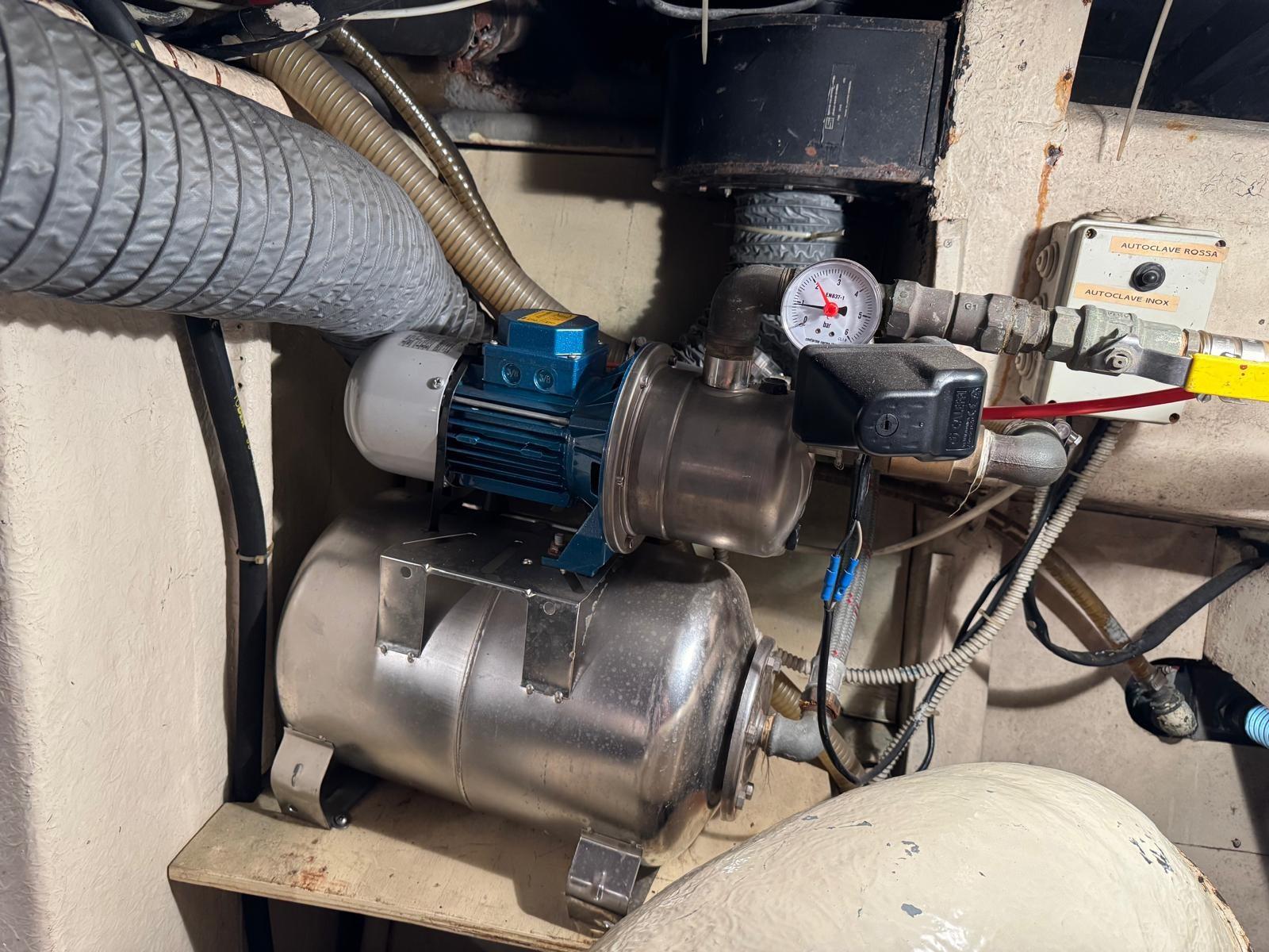 Alarme moteur, 2 Eau sous pression, 8 Batteries (4 nuove 2024 - 4 nuove 2025), Passavant en teck, Filères, Douche de cockpit, Phare de poursuite, Flaps hydrauliques, Indicateurs de flaps, Éclairage de courtoisie, Passerelle, Plateforme arrière (maggiorata in teak), Pompe de cale automatique, Porte latérale, 2 Porte latérale, Cockpit en teck, Prise de quai, Connexion eau sous pression à quai, Rollbar, Guindeau électrique, Echelle de bain, Selles pour Annexe, table de cockpit, Corne, Winch électrique arrière.