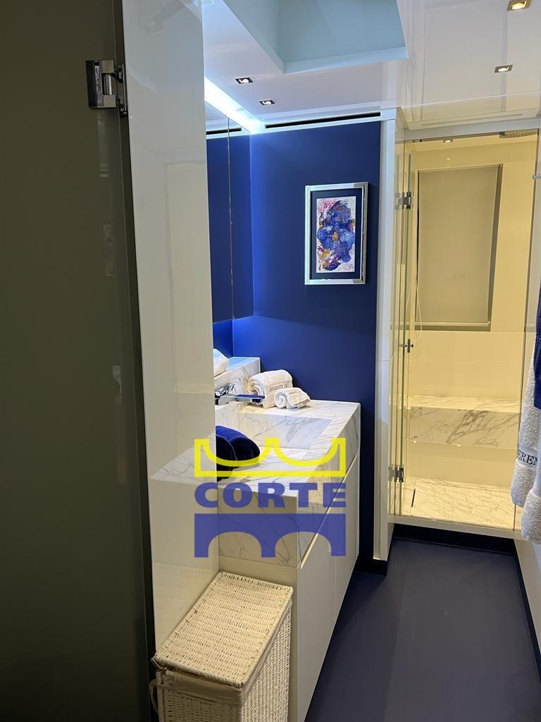 5 cabines, 4 salles de bain + WC jour. 3 cabines d’équipage, 3 salles de bain