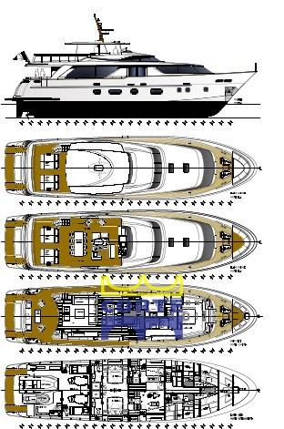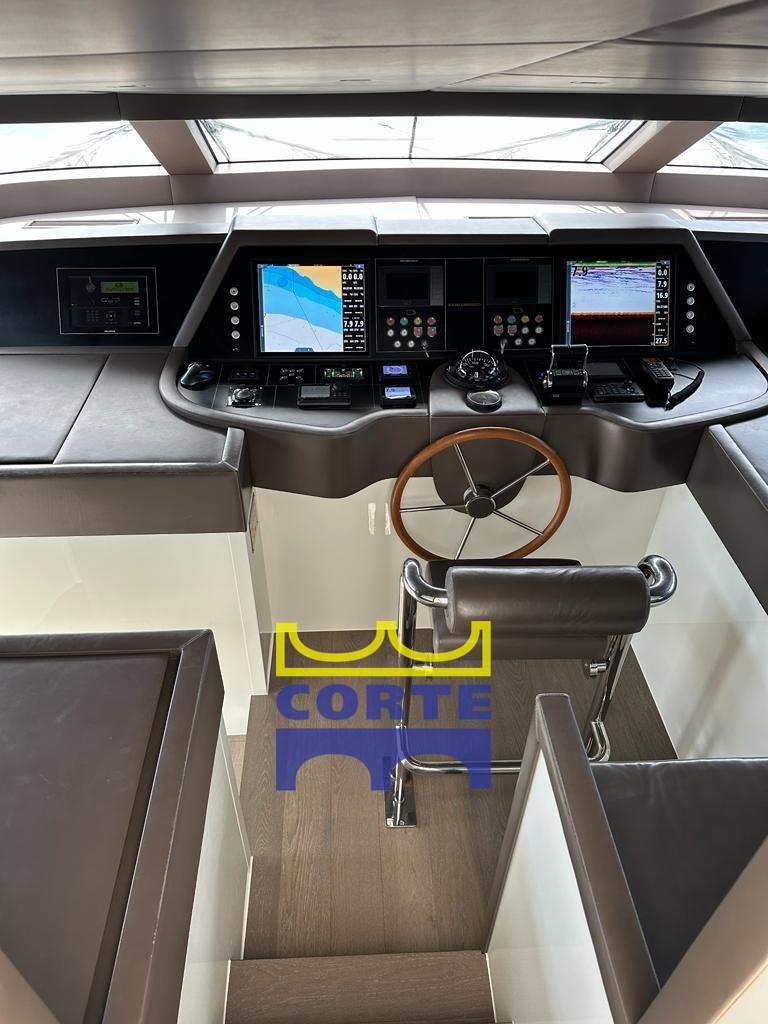 Alarme gaz, Alarme moteur, Alarme de pompe de cale, 4 Chargeur de batterie, Douche de cockpit, Phare de poursuite, Garage à annexe, Hard top, Extincteur(s) fixe(s), Éclairage de courtoisie, Jet-ski (Yamaha Sport jet), Passerelle (elettroidraulica a scomparsa), Plateforme arrière (poppa in teak), Porte latérale, 2 Porte latérale, Cockpit en teck, Prise de quai, Connexion eau sous pression à quai, 2 Guindeau électrique, Echelle de bain, Stabilisateurs (Pinne Cmc zero speed), table de cockpit, Annexe (Williams 435), 2 Winch électrique arrière, 2 Winch électrique avant.