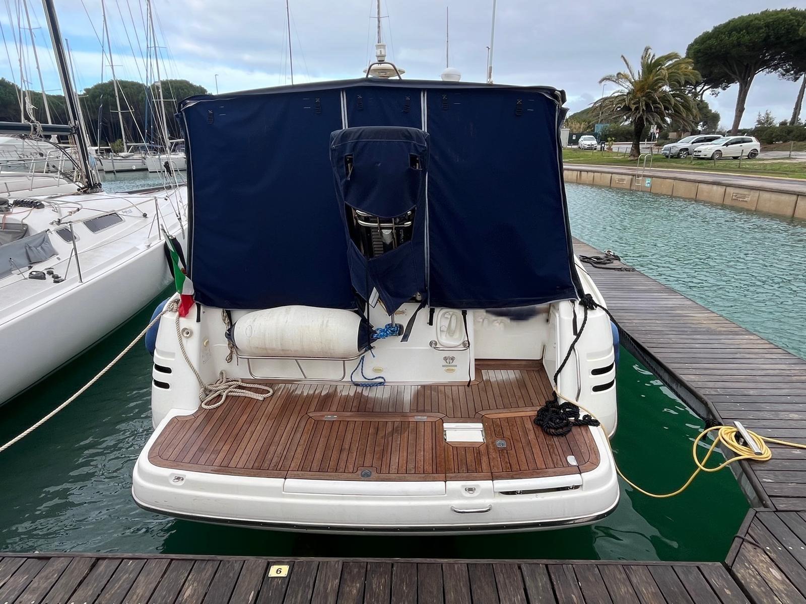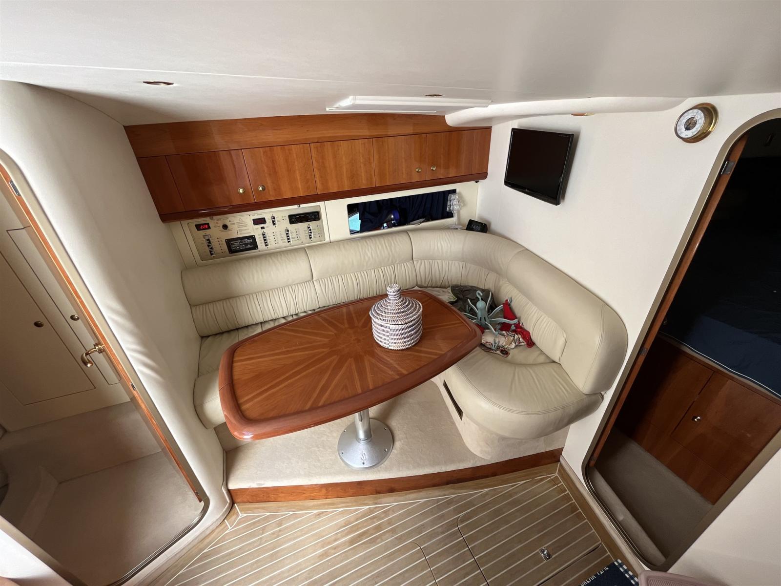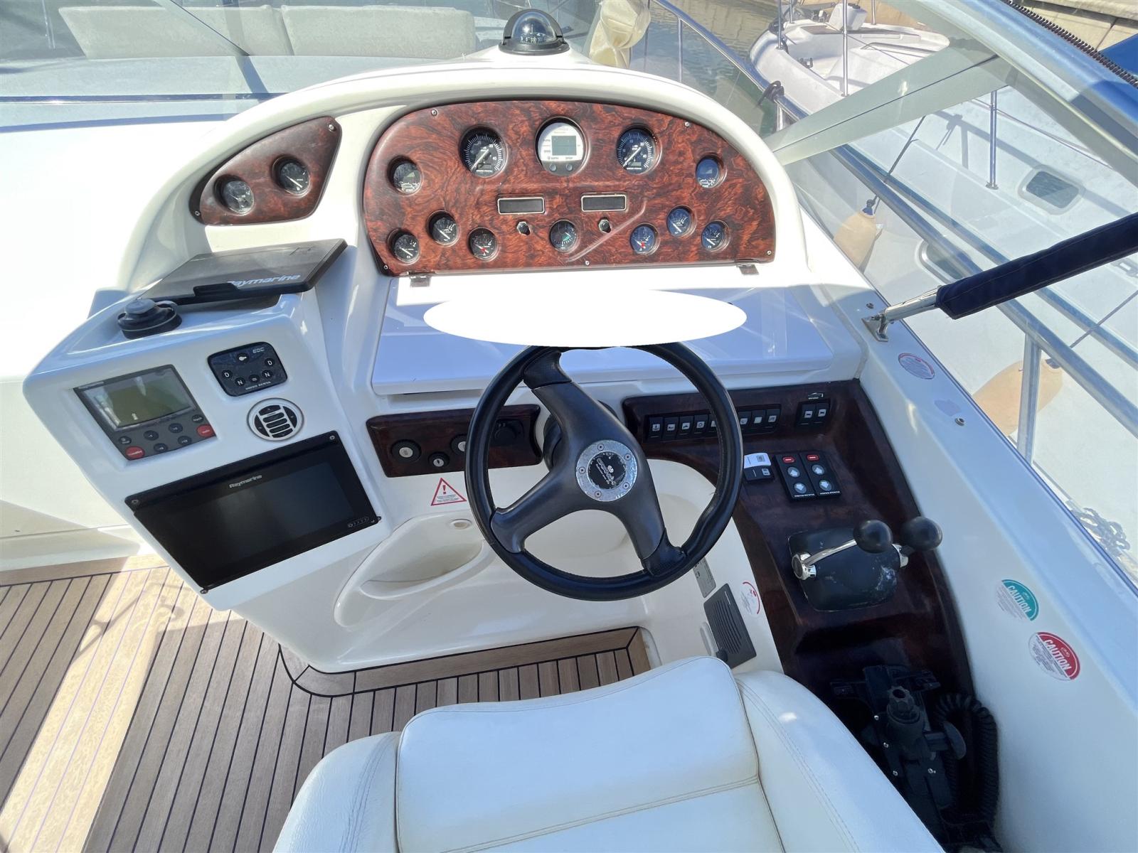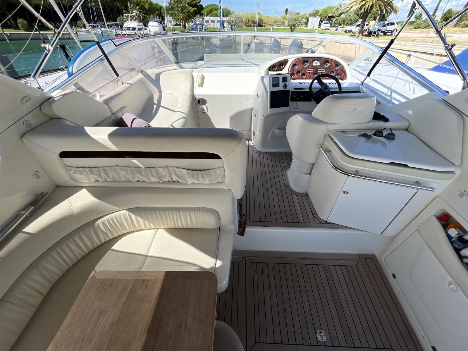 Phare de poursuite, Flaps hydrauliques, Éclairage de courtoisie, Passerelle, Cockpit en teck, Guindeau électrique, table de cockpit (allungabile), Winch électrique avant.