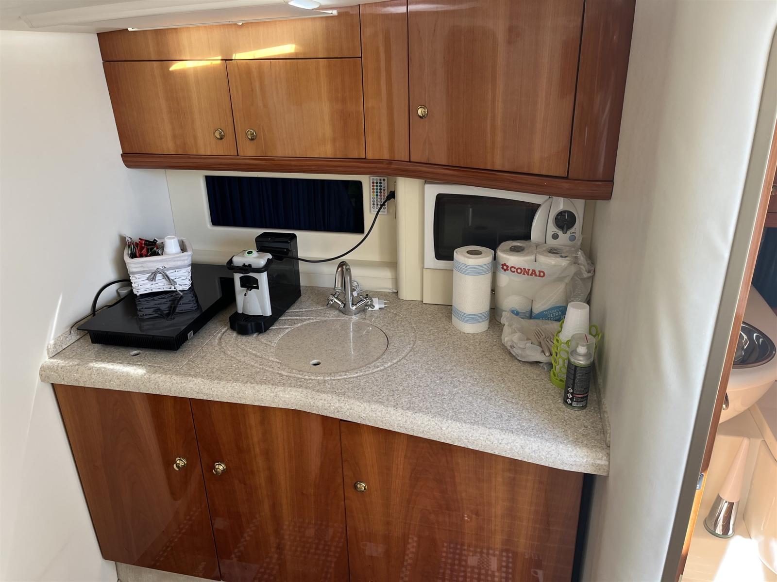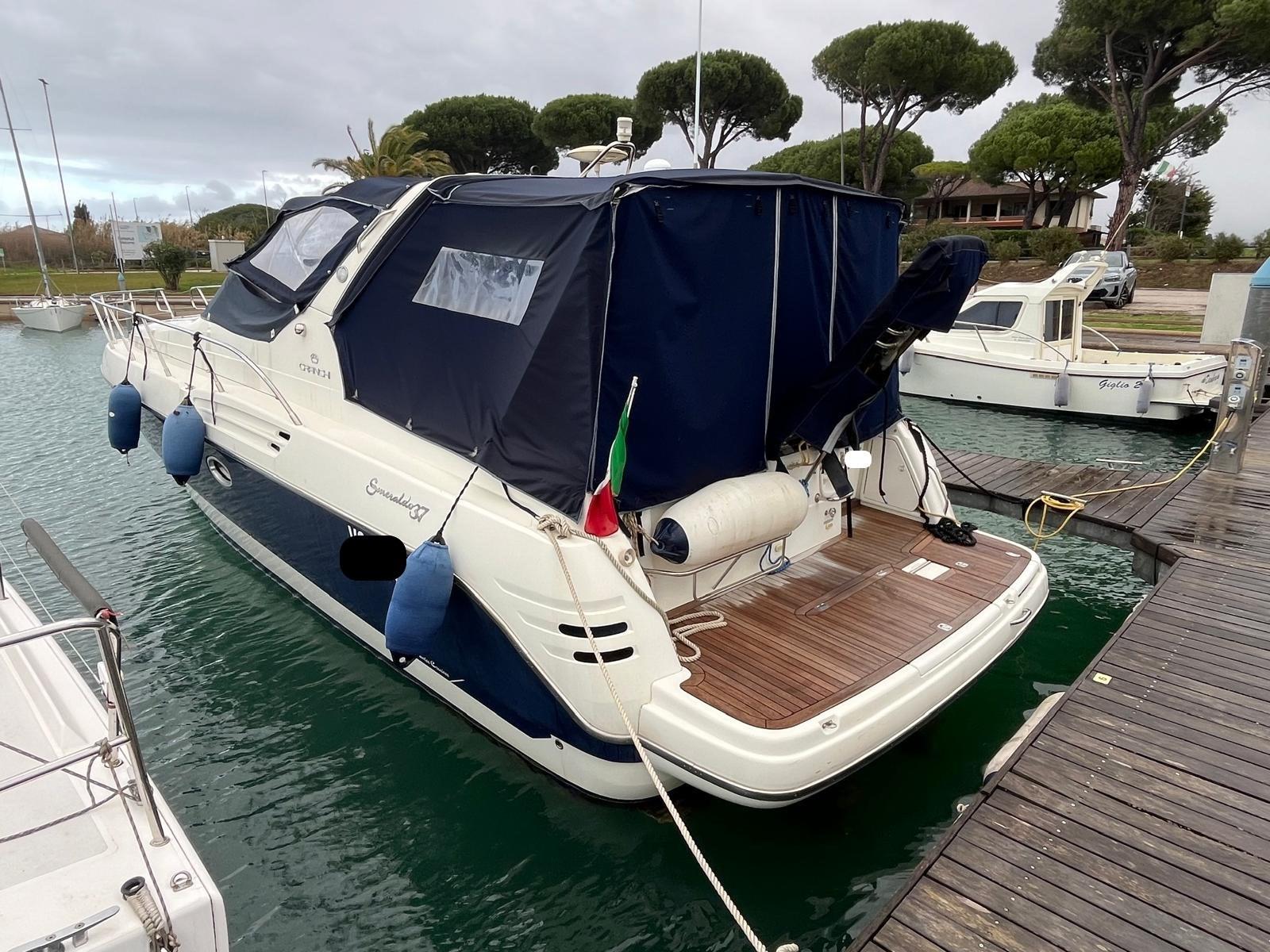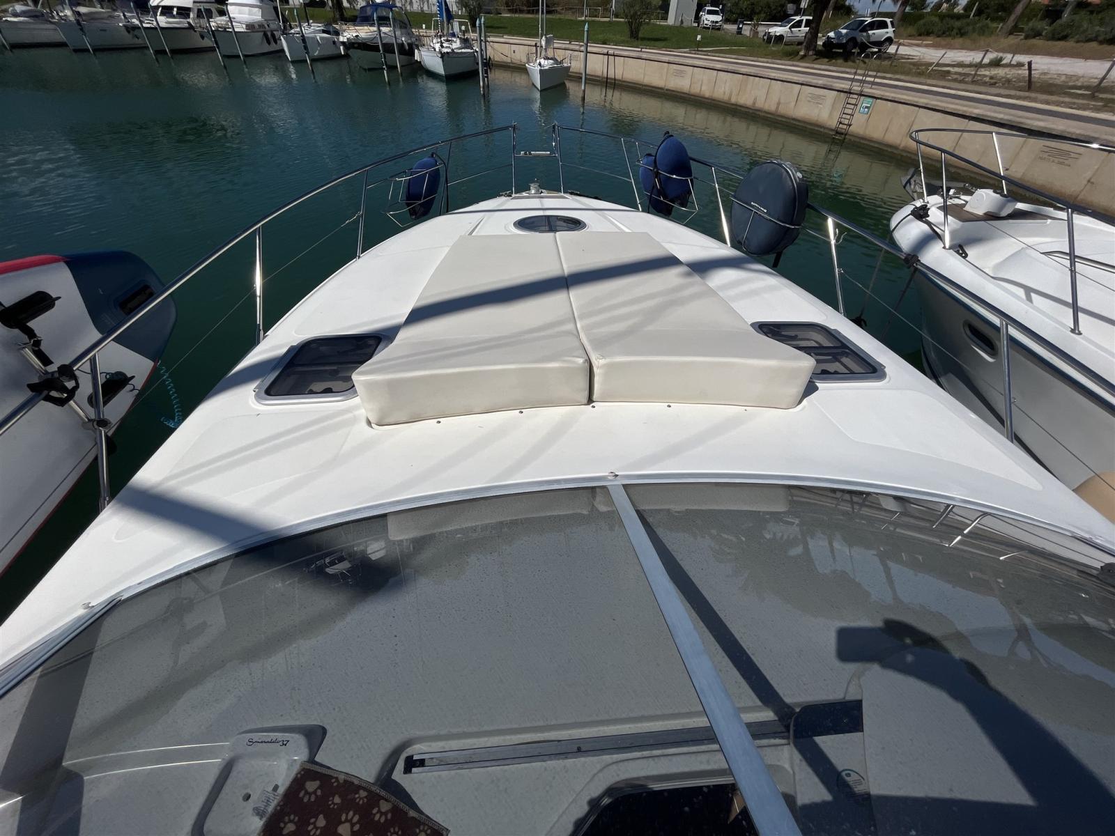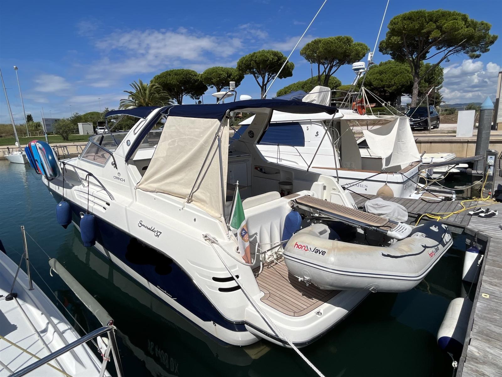 Phare de poursuite, Flaps hydrauliques, Éclairage de courtoisie, Passerelle, Cockpit en teck, Guindeau électrique, table de cockpit (allungabile), Winch électrique avant.