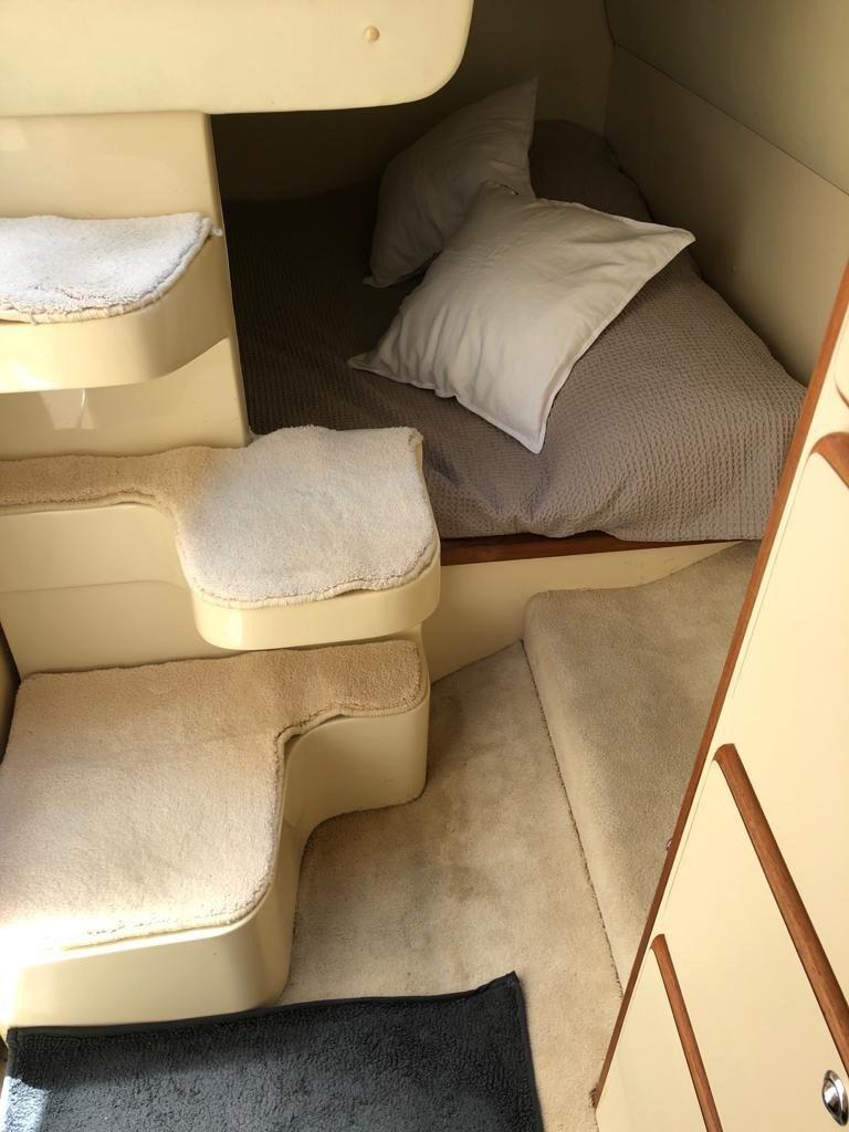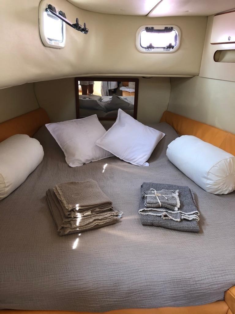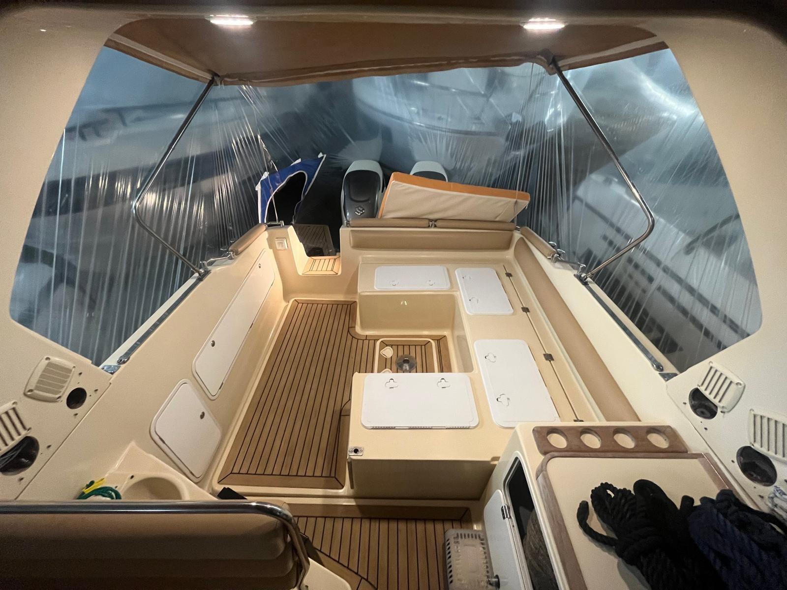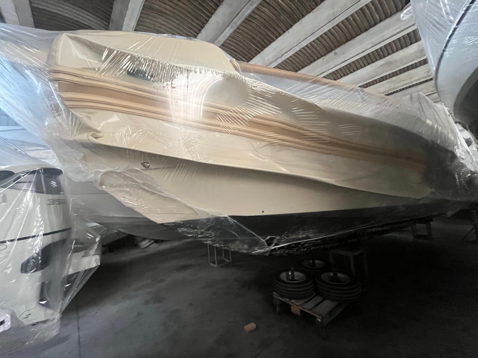Bimini (tenda notte e giorno), Taud de cockpit (fino a consolle per soste giornaliere), Sellerie complète (nuova dal 2021 al 2025), Coussins arrieres, Taud de console (per la notte antiumido), Taud de soleil.