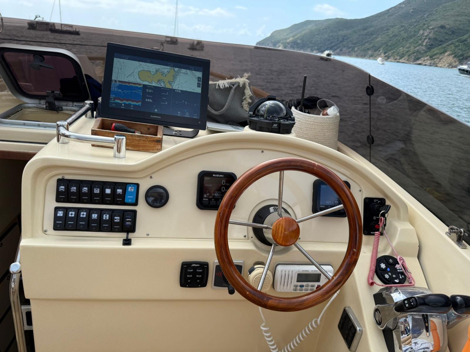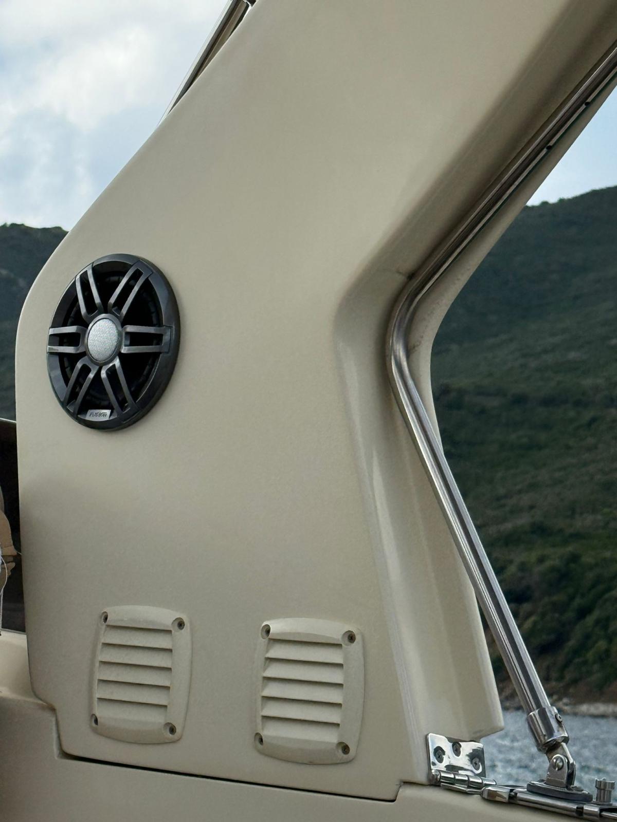 Direction hydraulique Ultraflex 2025, 2 freins ; menottes électroniques ; des hélices à double hélice ; des prises USB internes et externes ; Inverter 2000 ; toutes les lumières LED ; moquette intérieure amovible et lavable ; toujours remis à l’intérieur, dans l’eau du 15 juin au 15 septembre ; compresseur pour gonfler les tubes, couverture complète pour la nuit. 2021 NOUVEAU : poteaux arrière coulissants, couvercle arrière en bimini crème, nouvelle plateforme en flexitec, échelle, système hydraulique avec positionnement de la boîte à eau à la poupe de 200 litres, rembourrage en cuir des rampes, brûleurs de cuisine. Intérieurs : système audio de nouvelle génération avec système Glauk avec deux zones internes et extérieures, système invisible avec excitateurs, tubes moteur ondulés, coffres arrière étanches ; 2024 a été installé 2 Suzuki 350, une de 2019 et une de 2023 ; NOUVEAU 2024 : propulseur à proue, GPS et traceur Garmin, système électrique ; 2025 NOUVEAU : Climatisation frigomar, toilettes, direction hydraulique Ultraflex.