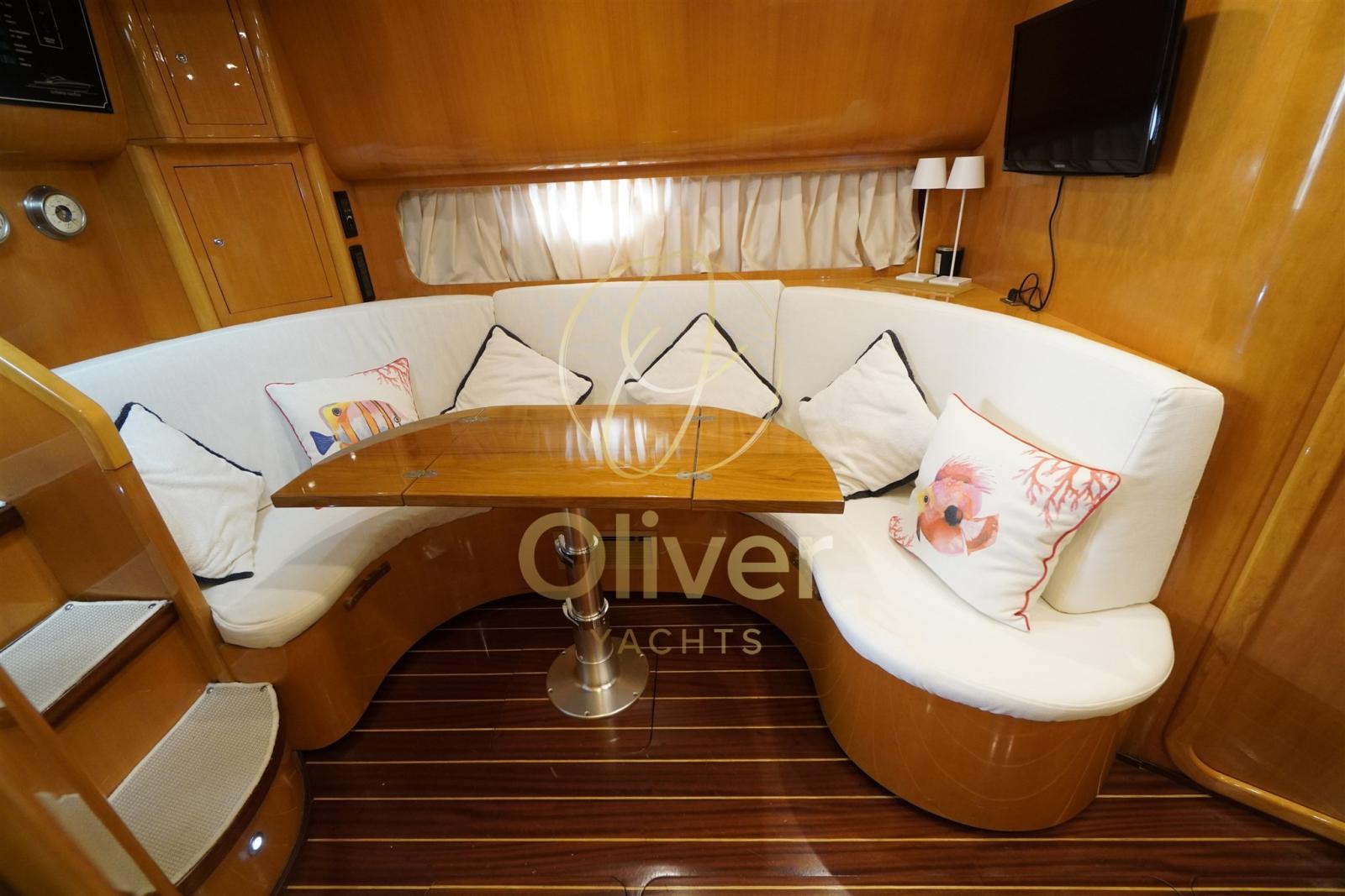 Alarme gaz, Alarme moteur, Alarme de pompe de cale, Alternateur, Aspiration des Eaux Usées depuis le Pont, Eau sous pression, Taquets pliants, Câble d’alimentation à quai, Filères, Douche de cockpit, Phare de poursuite, Fixation de l’ancre, Flaps électriques, Extincteur(s) fixe(s), Indicateurs de flaps, Lavage de chaine, Lavabo dans le cockpit, Éclairage de courtoisie, Spots sous-marins, Moniteur de batterie, Défenses, Passerelle, Plateforme arrière, Pompe de Vidange du Réservoir d’Eaux Usées, Pompe de cale automatique, Pompe de cale manuelle, Pompe de Lavage du Pont, Pompe à Eau de Mer, Pont en teck, Porte latérale, Cockpit en teck, Prise de quai, Connexion eau sous pression à quai, Rollbar, Guindeau électrique, Echelle de bain, Système de filtration des eaux usées, table de cockpit, Corne, Winch électrique avant.