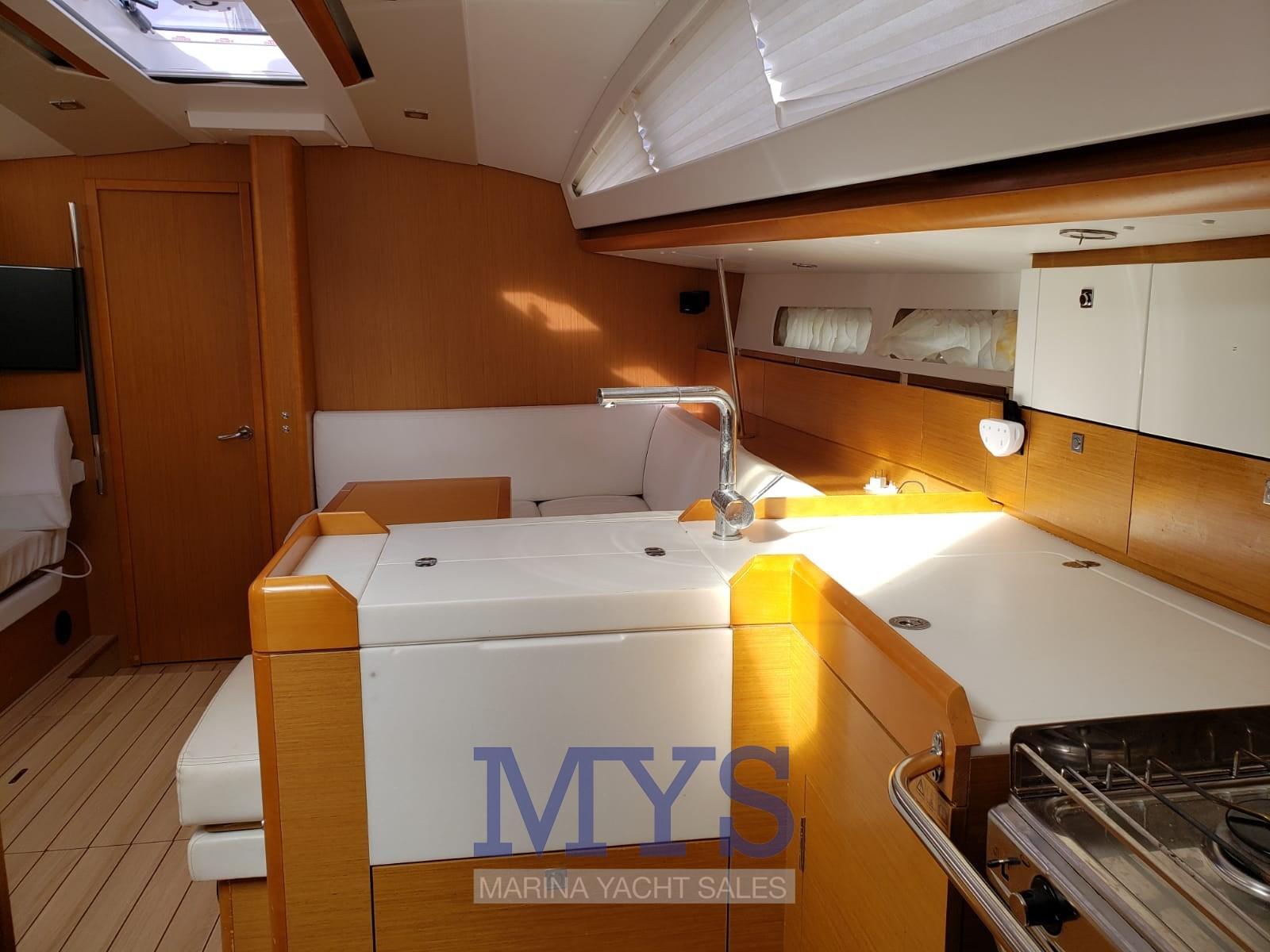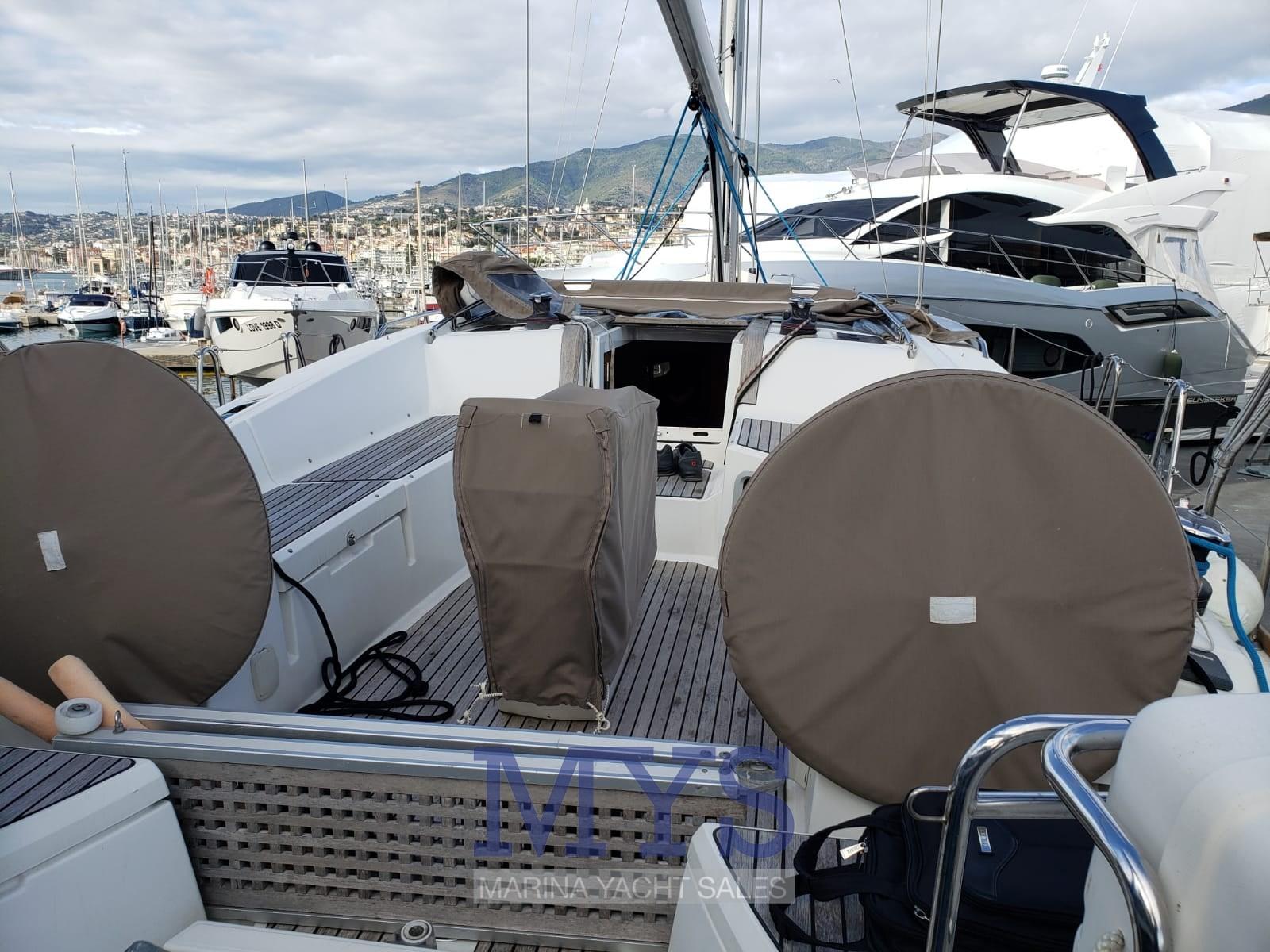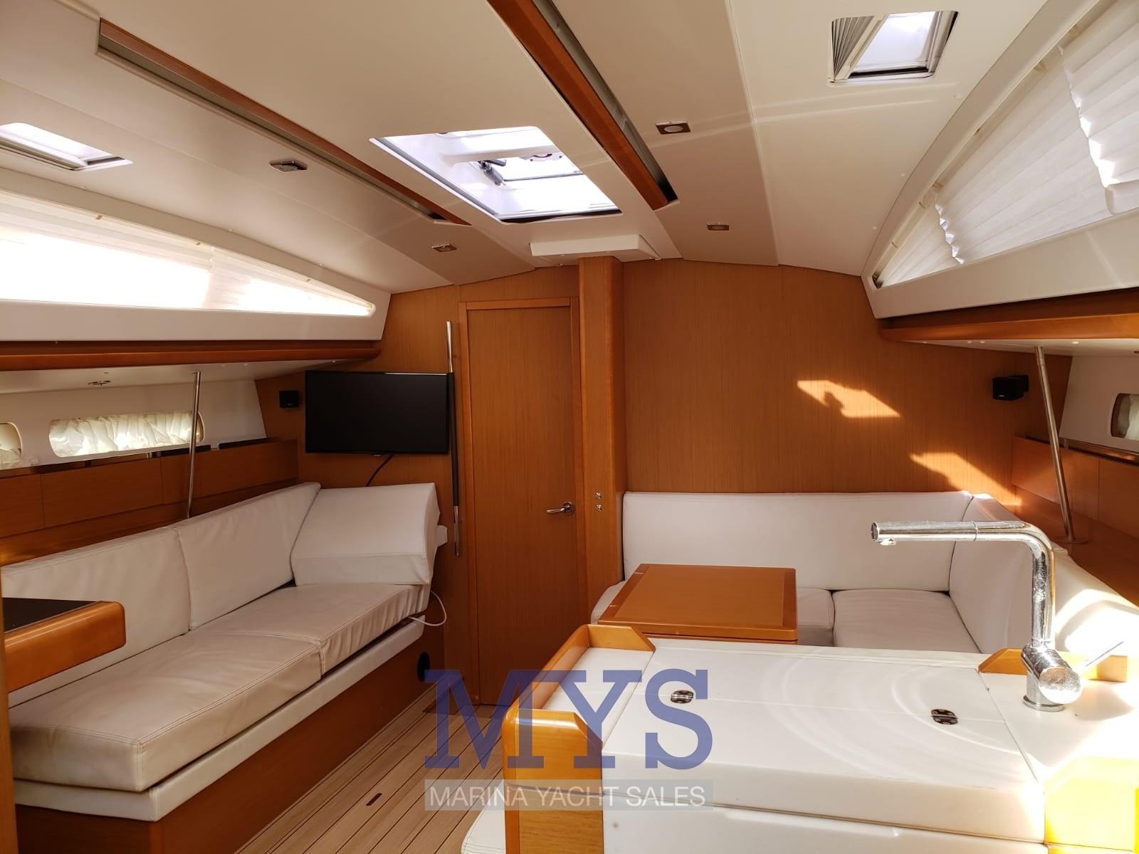 Le cockpit est fonctionnel et bien organisé, conçu pour une gestion facile même avec un petit équipage. Les intérieurs, lumineux grâce à la configuration Deck Saloon, offrent une ambiance chaleureuse et accueillante, idéale pour de longs séjours à bord.