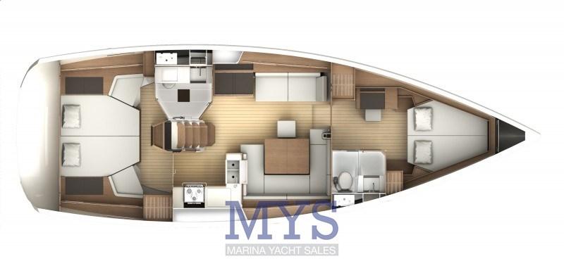 Cette version à deux cabines et deux salles de bain offre une disposition particulièrement populaire pour le propriétaire, avec un espace généreux et un confort supérieur à la version à trois cabines.