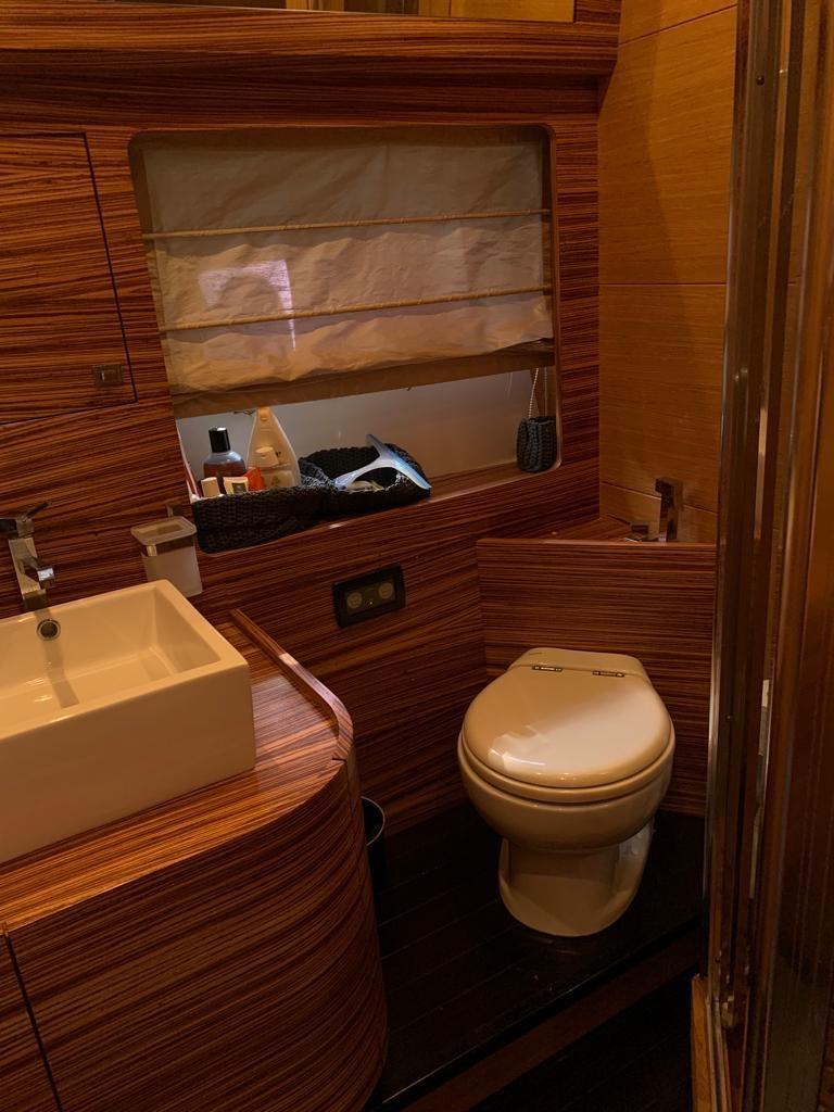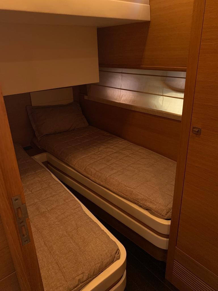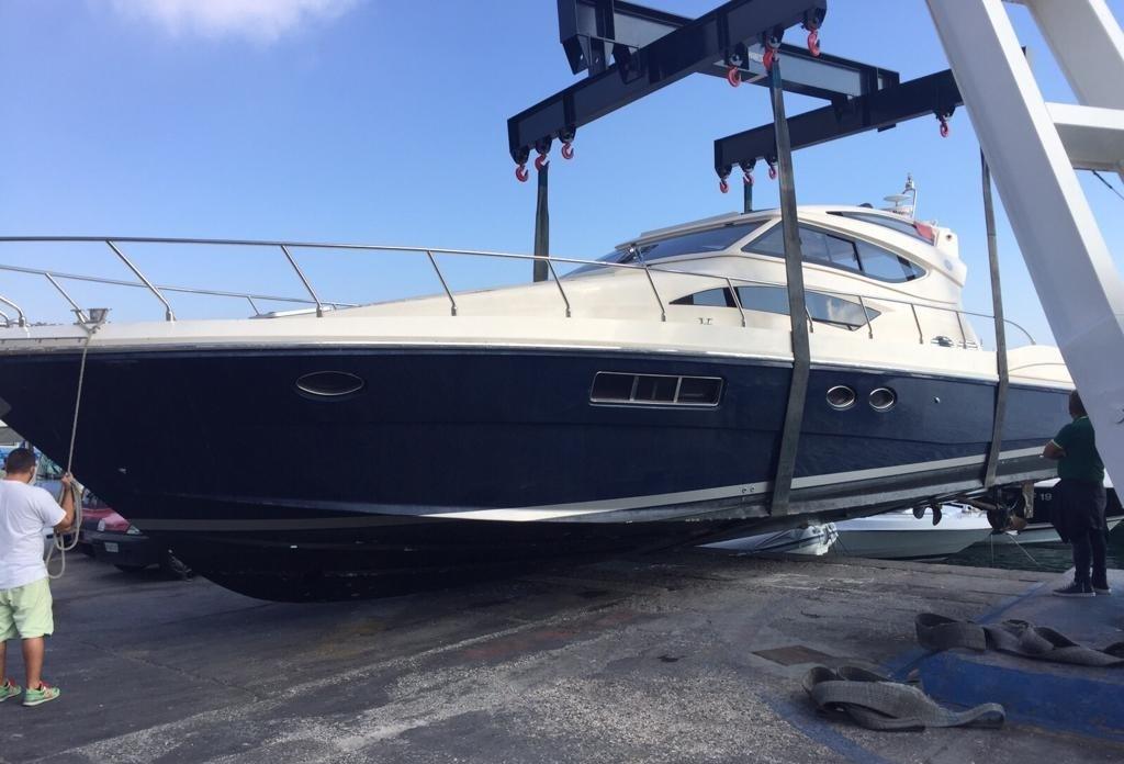 Alarme moteur, Alarme de pompe de cale, Eau sous pression, Couleur spéciale (scafo BLU), Douche de cockpit, Flaps électriques, Garage à annexe, Hard top, Extincteur(s) fixe(s), Lavabo dans le cockpit, Éclairage de courtoisie, Passerelle, Plateforme arrière, Pompe de cale automatique, Pompe de cale manuelle, Cockpit en teck, Prise de quai, Guindeau électrique, Echelle de bain, table de cockpit, Corne.