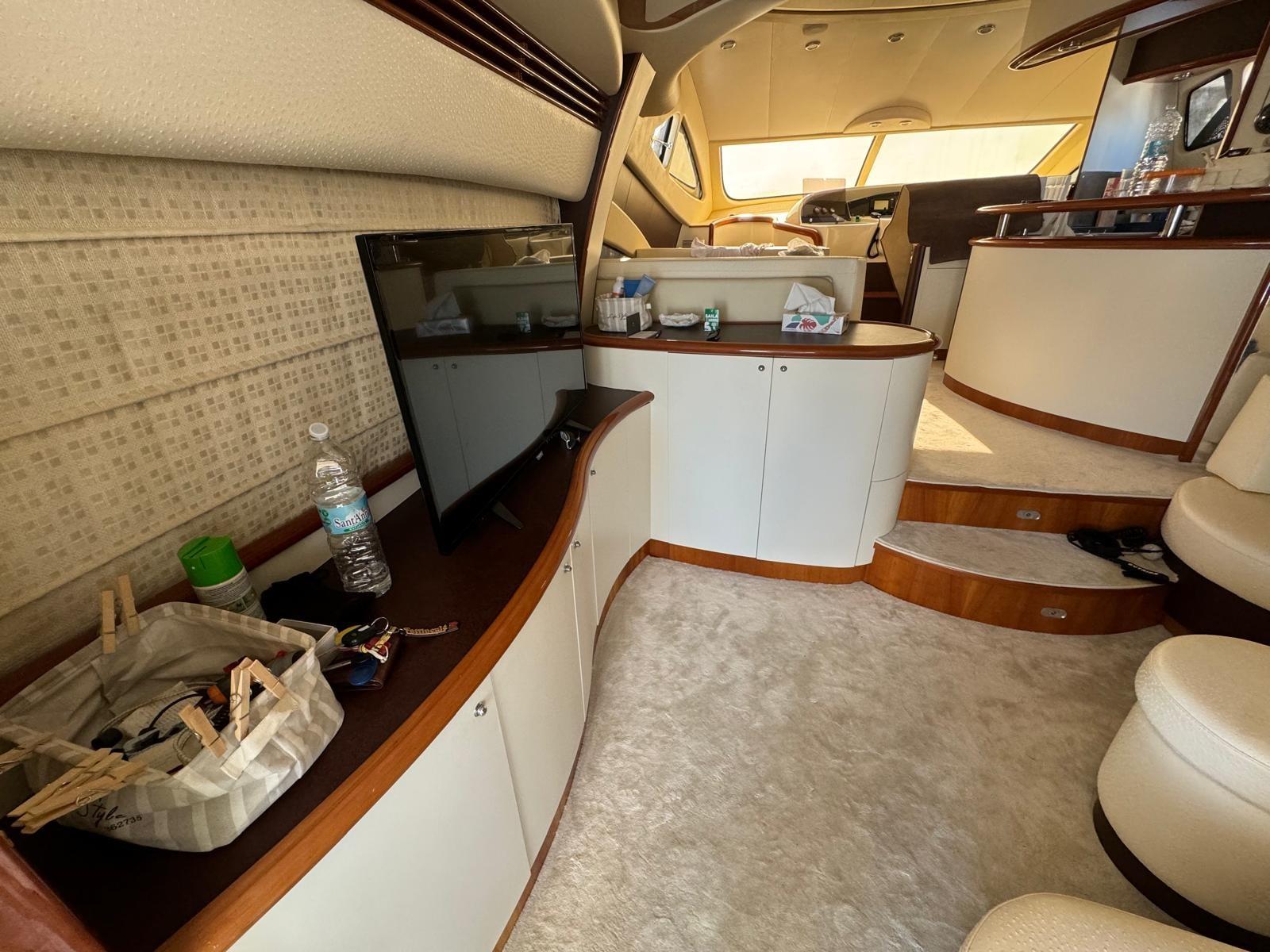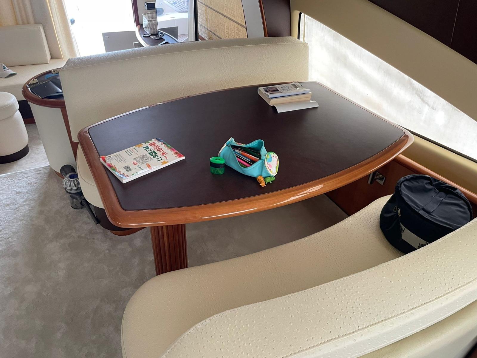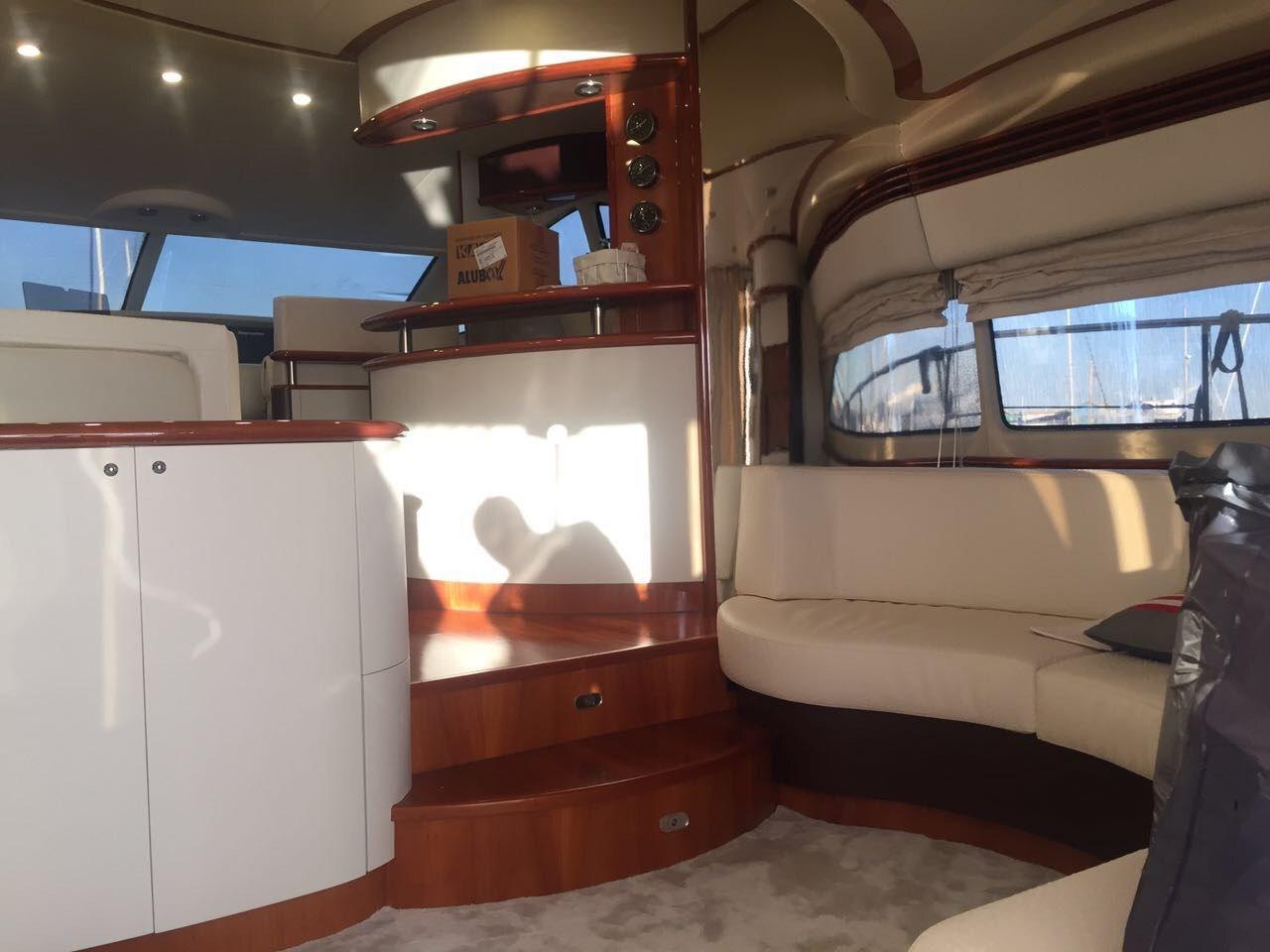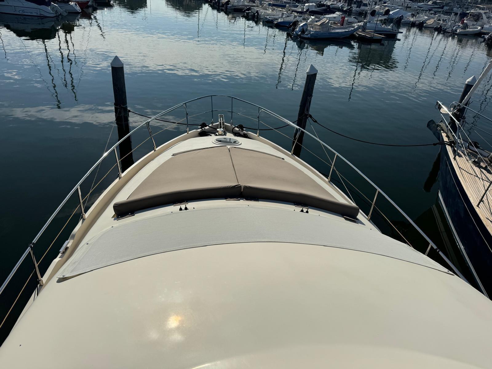 Alarme moteur, Eau sous pression, Douche de cockpit, Double barre à roue, Phare de poursuite, Flaps électriques, Extincteur(s) fixe(s), Lavabo dans le cockpit, Éclairage de courtoisie, Passerelle, Plateforme arrière, Pompe de cale automatique, Pompe de cale manuelle, Porte latérale, Cockpit en teck, Prise de quai, Répétiteur électronique, Rollbar, Guindeau électrique, Echelle de bain, table de cockpit, Filières avec sortie latèrale, Corne, Winch électrique arrière.