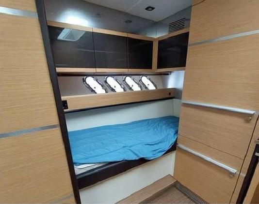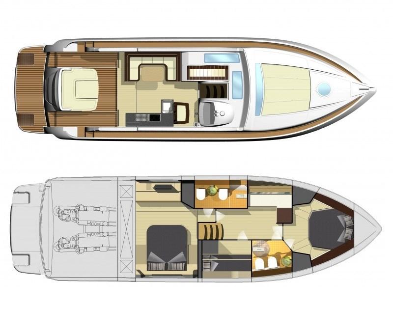 Alarme moteur, Alarme de pompe de cale, Alternateur, Ouverture du compartiment moteur électrique, Eau sous pression, Couleur spéciale (CARTA ZUCCHERO CANGIANTE), Douche de cockpit, Phare de poursuite, Flaps électriques, Hard top, Extincteur(s) fixe(s), Éclairage de courtoisie, Passerelle, Plateforme arrière, Pompe de cale automatique, Pompe de cale manuelle, Porte latérale, Cockpit en teck, Prise de quai, Guindeau électrique, Echelle de bain, table de cockpit (ELETTRICO A SCOMPARSA), Filières avec sortie latèrale, Corne, Winch électrique arrière.
