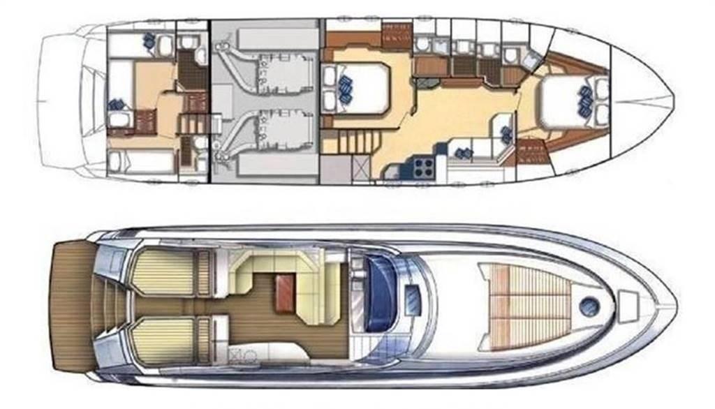 Alarme moteur, Alarme de pompe de cale, Ancre (CATENA IN ACCIAIO INOX), Eau sous pression, Douche de cockpit, Flaps hydrauliques, Hard top (ELETTRICO), Extincteur(s) fixe(s), Indicateurs de flaps, Éclairage de courtoisie, Spots sous-marins, Passerelle (IDRAULICA), Plateforme arrière, Pompe de cale automatique, Pompe de cale manuelle, Cockpit en teck, Prise de quai, Guindeau électrique, Echelle de bain, Selles pour Annexe, table de cockpit, Corne, Winch électrique arrière, Winch électrique avant.