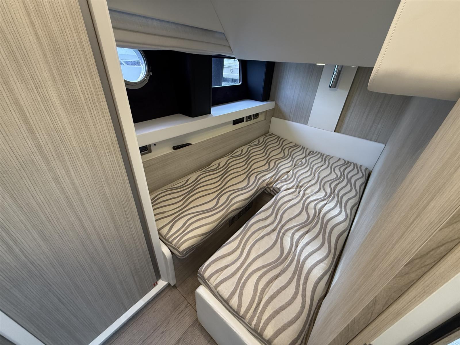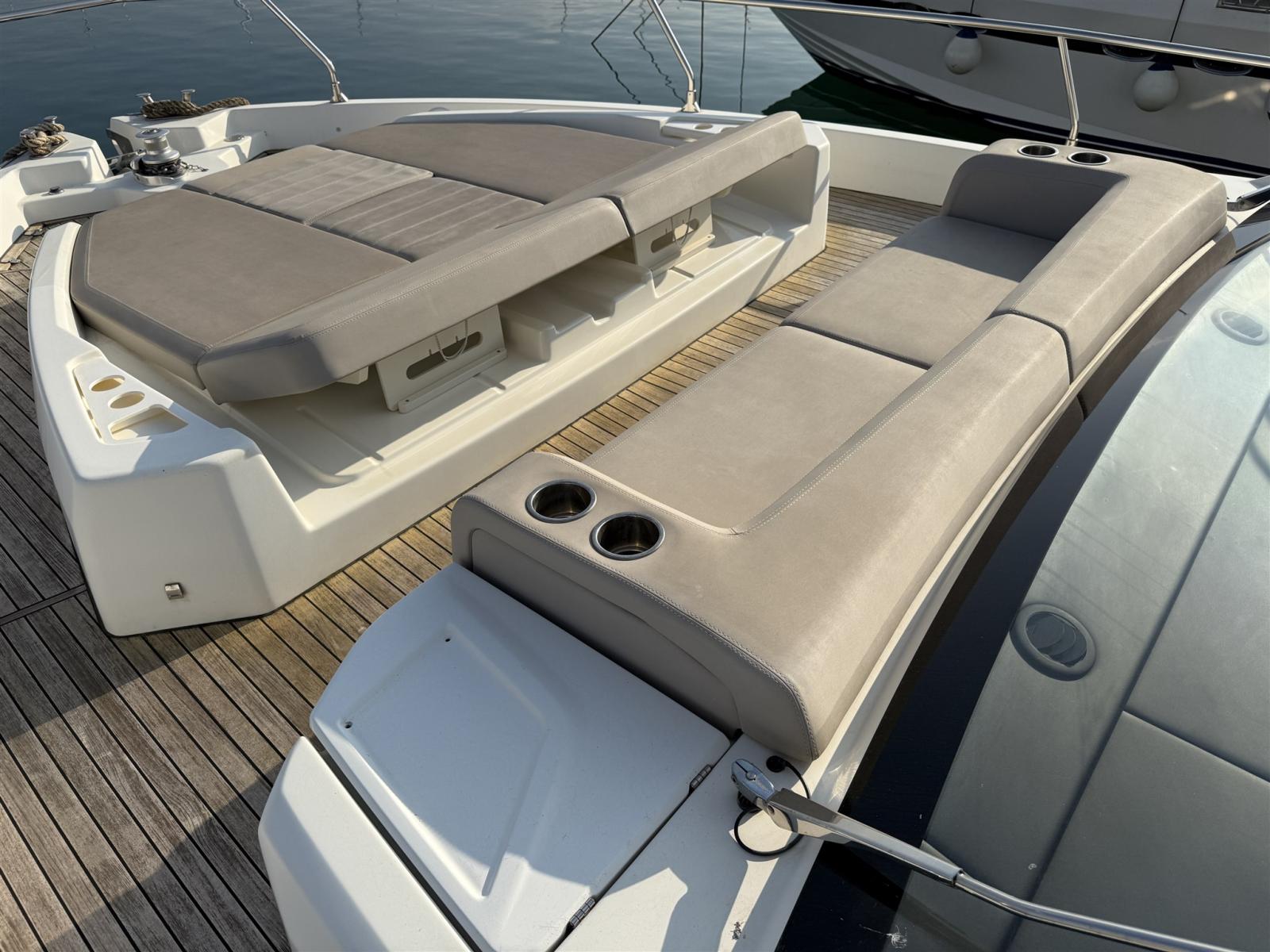 Sellerie complète, Coussins arrieres, Coussin avant, Sellerie de fly, sellerie de cockpit, Matelas, Supplément bain de soleil (A POPPA), Taud de console, Taud électrique, Taud de soleil.