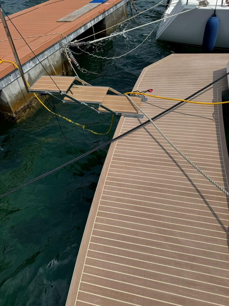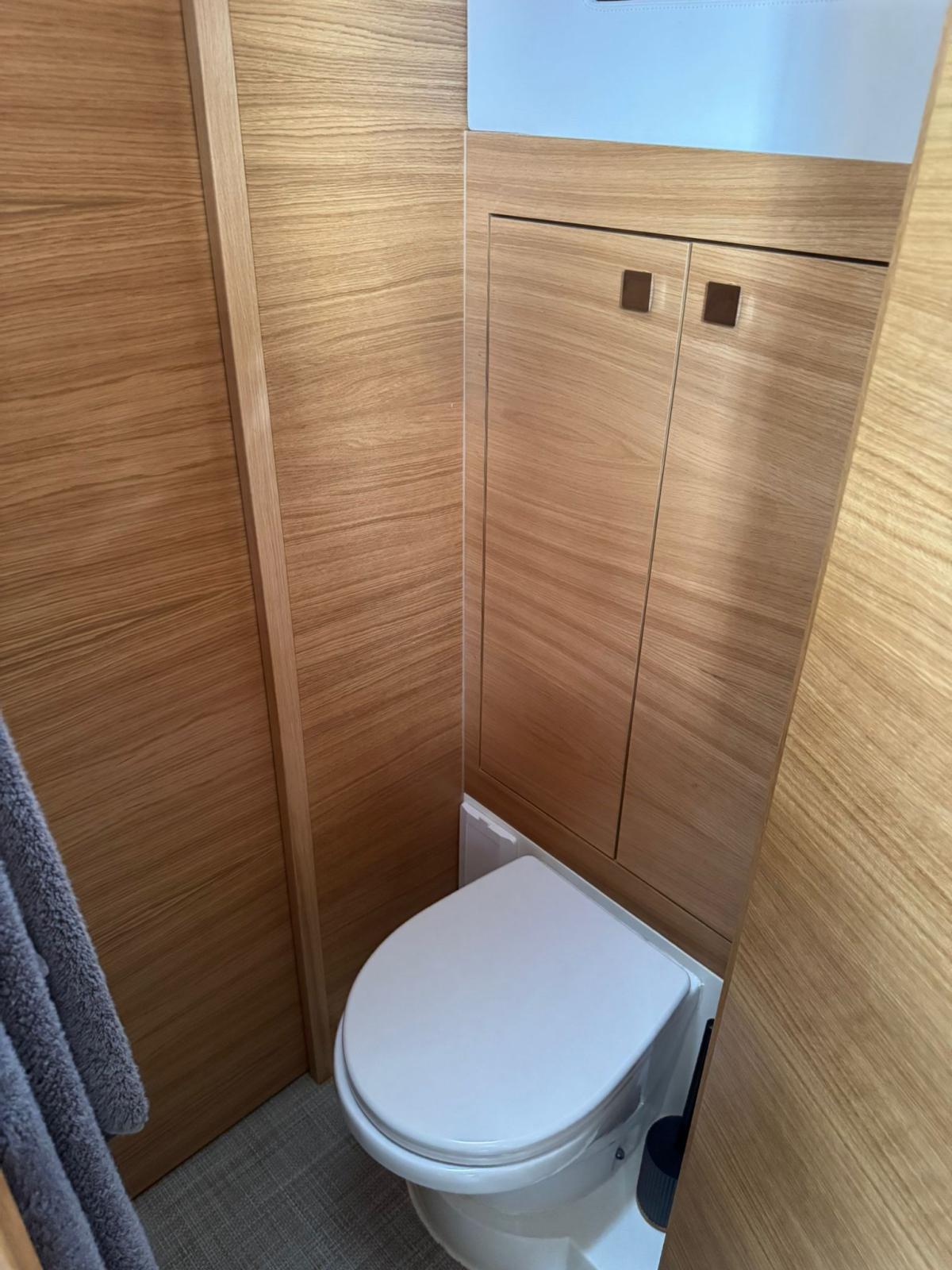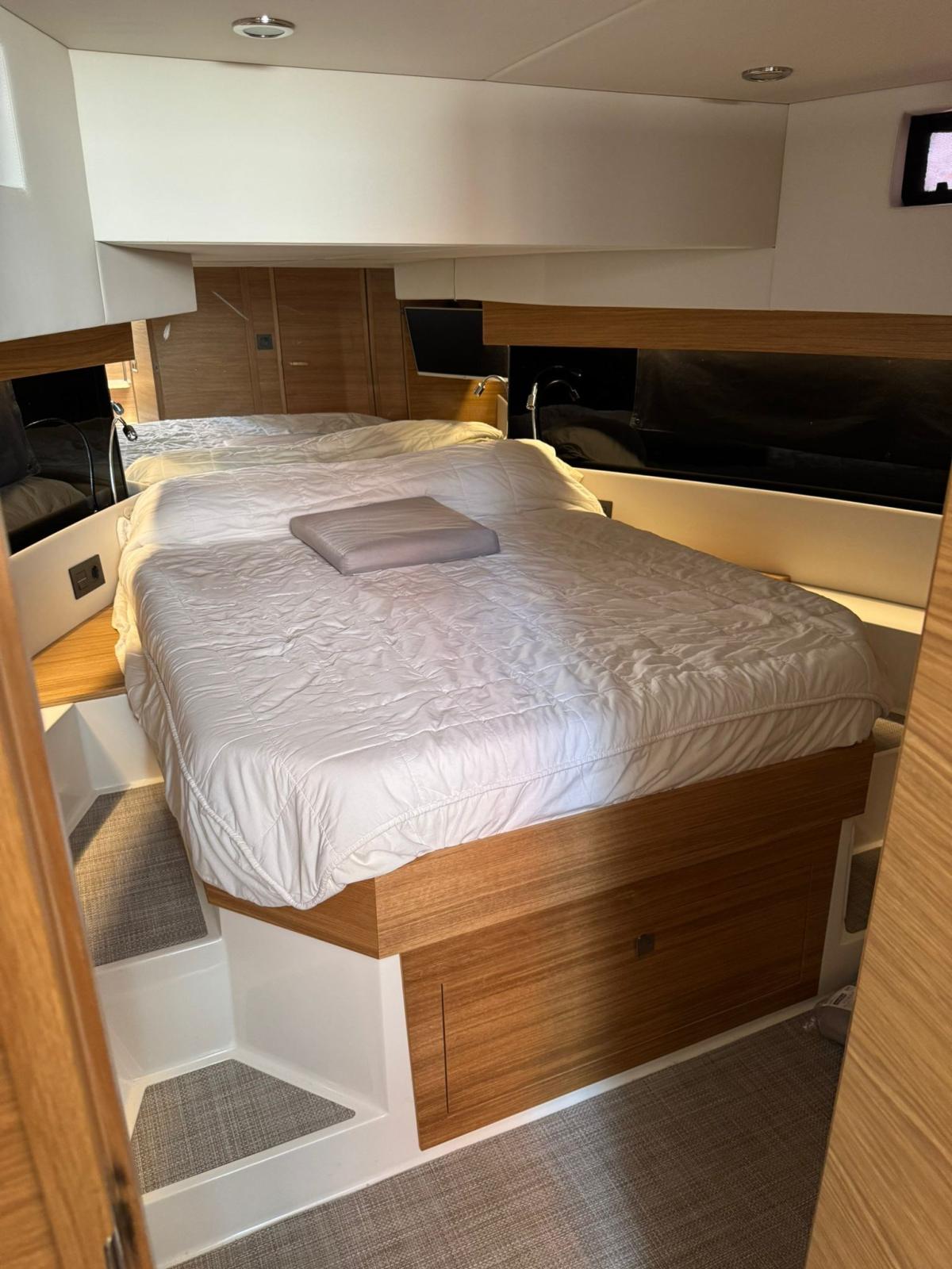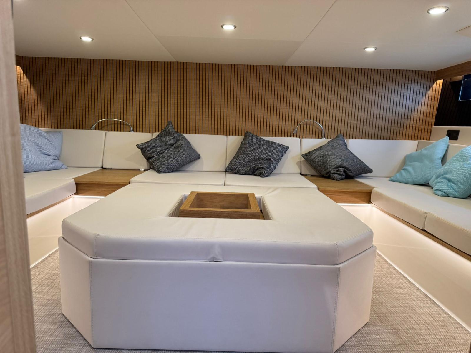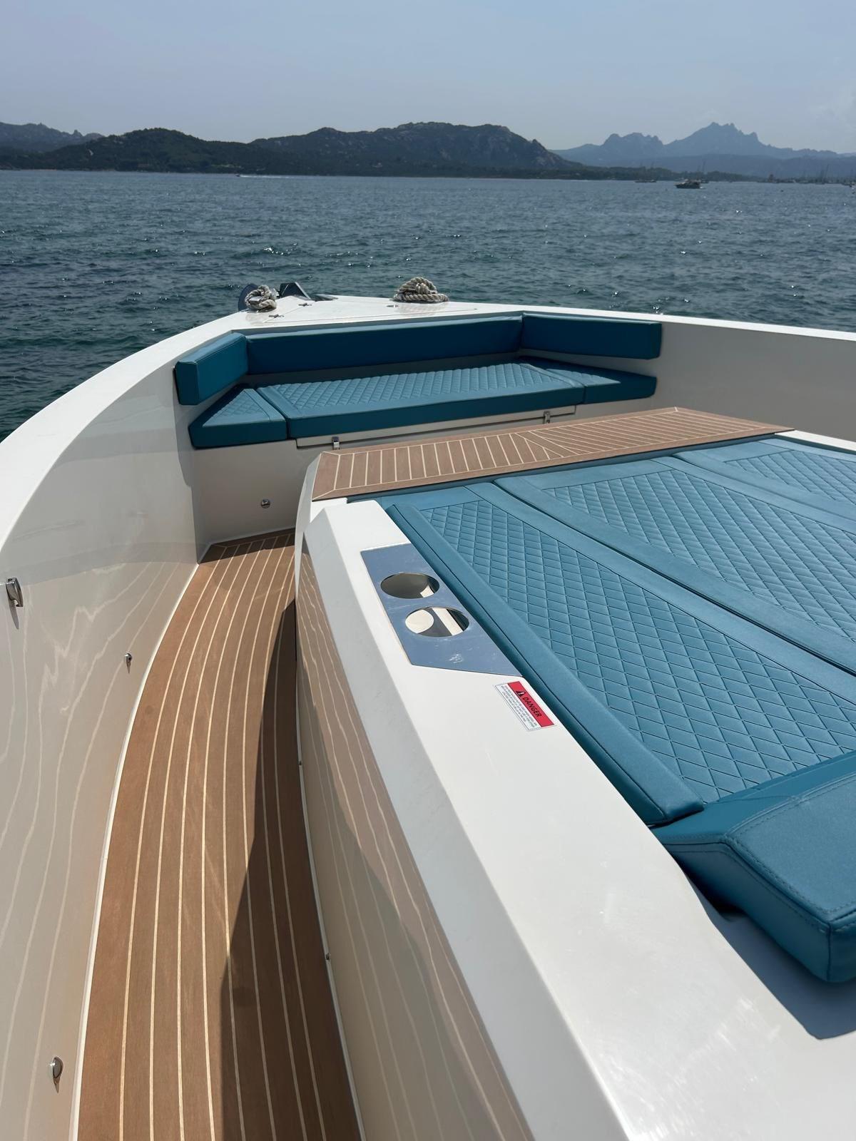 Alarme moteur, Alarme de pompe de cale, Alternateur, Eau sous pression, Passavant en teck, Câble d’alimentation à quai, Douche de cockpit, Flaps électriques, Hard top, Indicateurs de flaps, Lavabo dans le cockpit, Éclairage de courtoisie, Spots sous-marins, Passerelle, Plateforme arrière, Pompe de cale automatique, Pompe de cale manuelle, Cockpit en teck, Prise de quai, Guindeau électrique, Echelle de bain, table de cockpit, Corne.