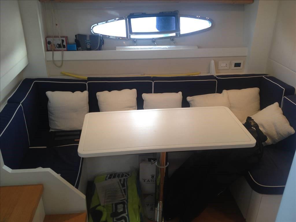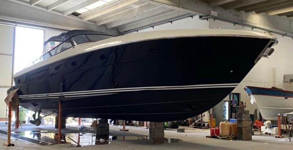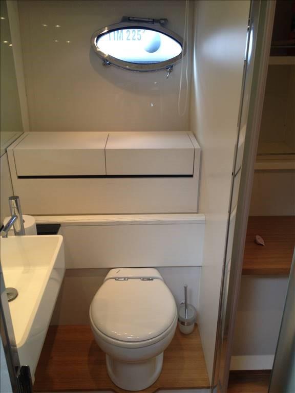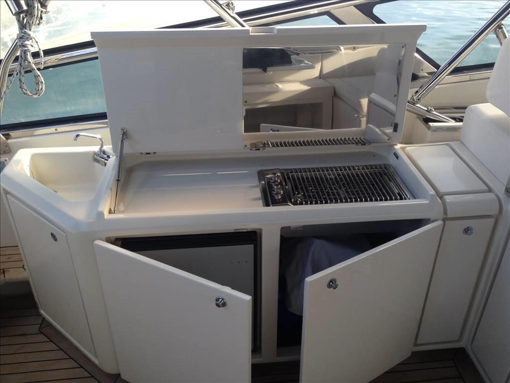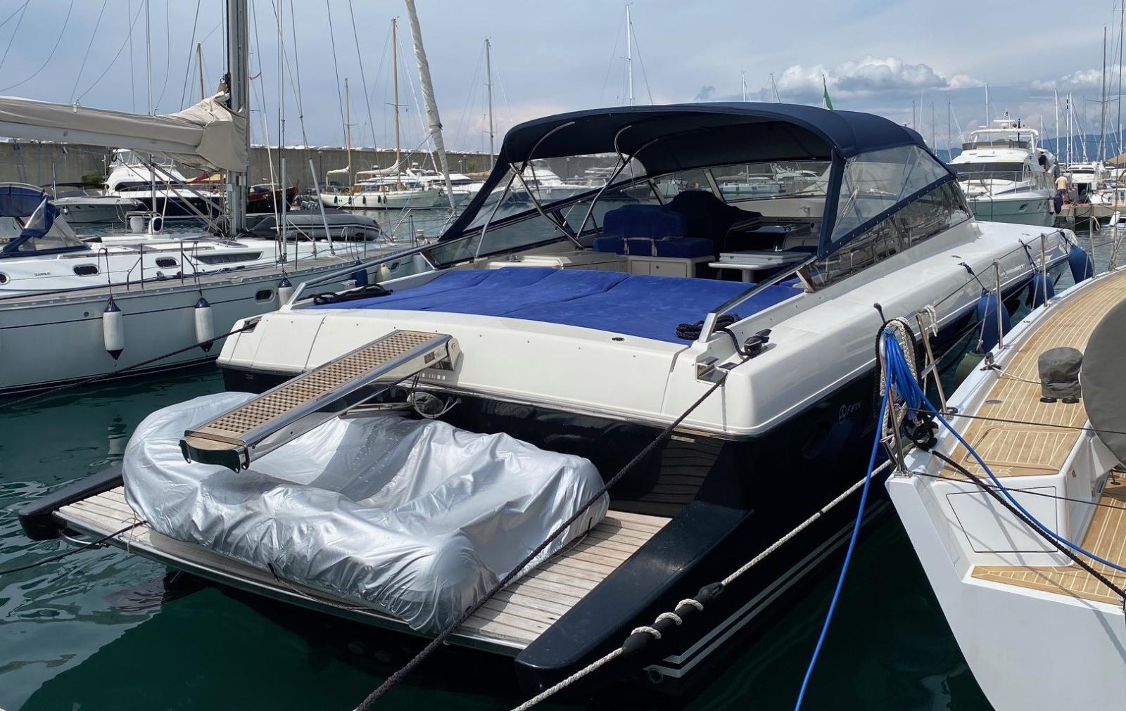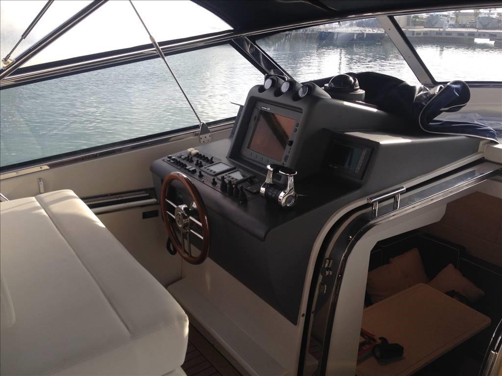 Alarme moteur, Alarme de pompe de cale, Eau sous pression, Couleur spéciale (SCAFO BLU), Douche de cockpit, Flaps hydrauliques, Extincteur(s) fixe(s), Indicateurs de flaps, Éclairage de courtoisie (A LED), Spots sous-marins, Passerelle (IDRAULICA), Plateforme arrière, Pompe de cale automatique, Pompe de cale manuelle, Cockpit en teck, Prise de quai, Guindeau électrique, Echelle de bain, table de cockpit, Corne, Winch électrique arrière.