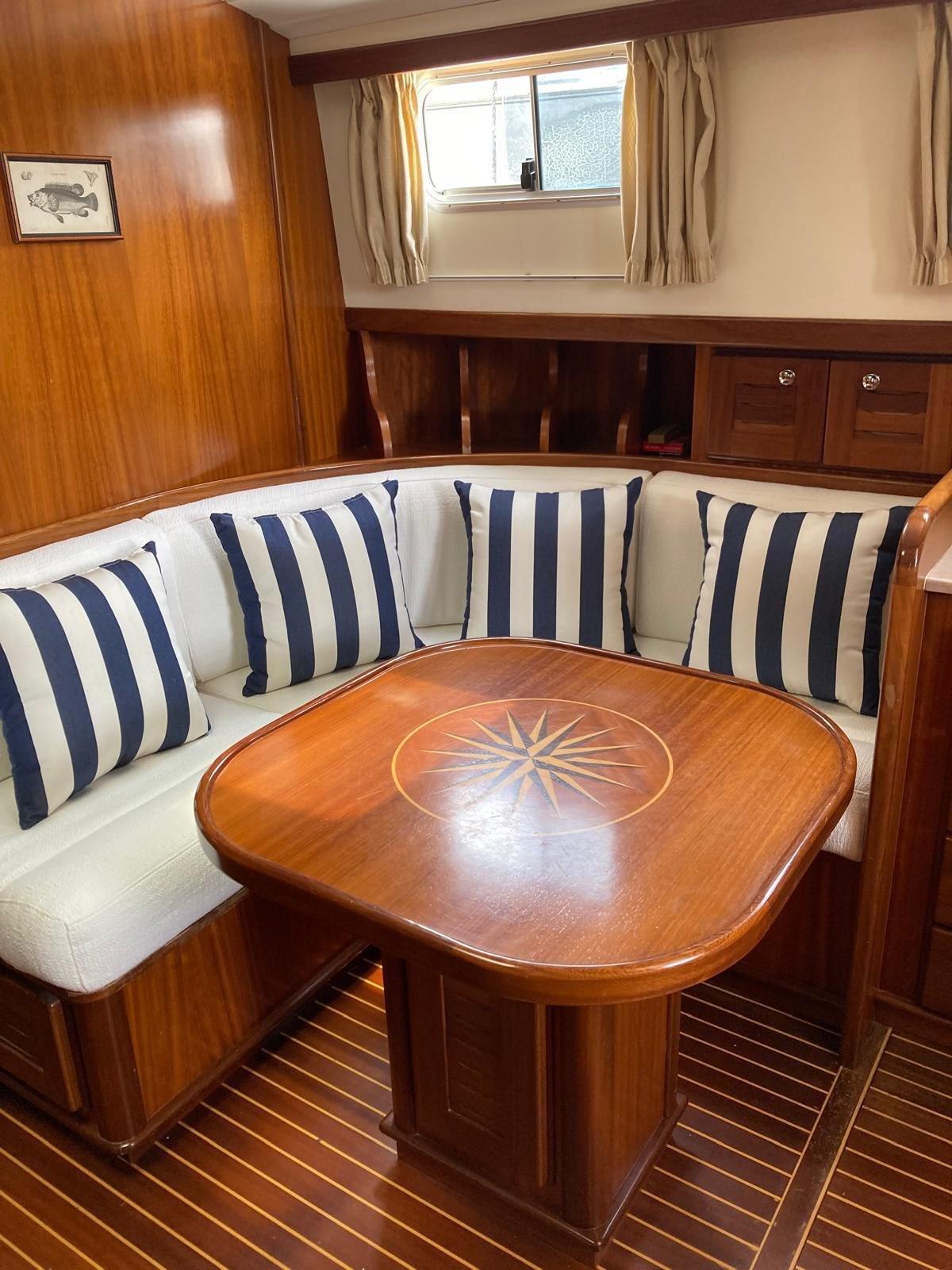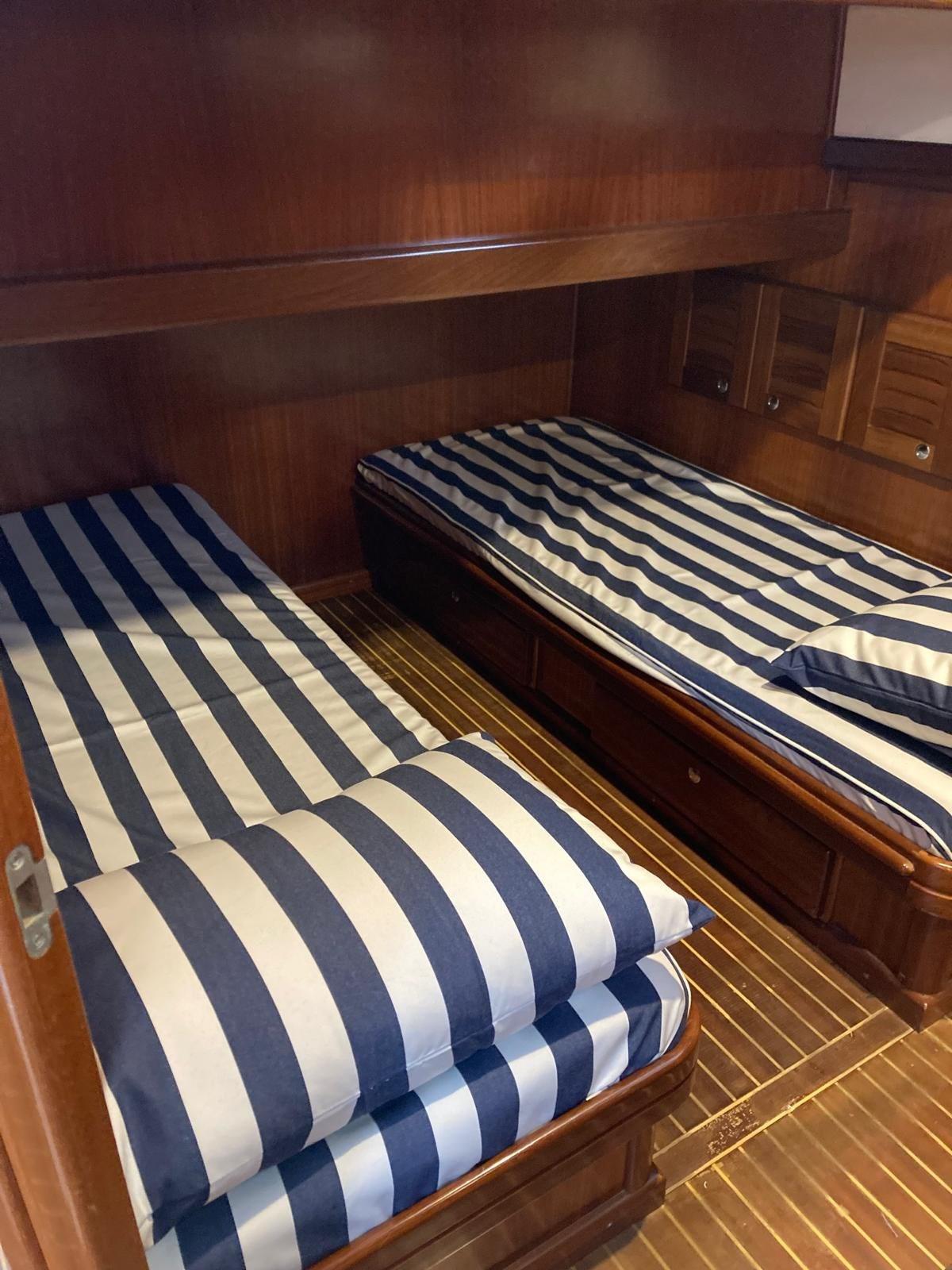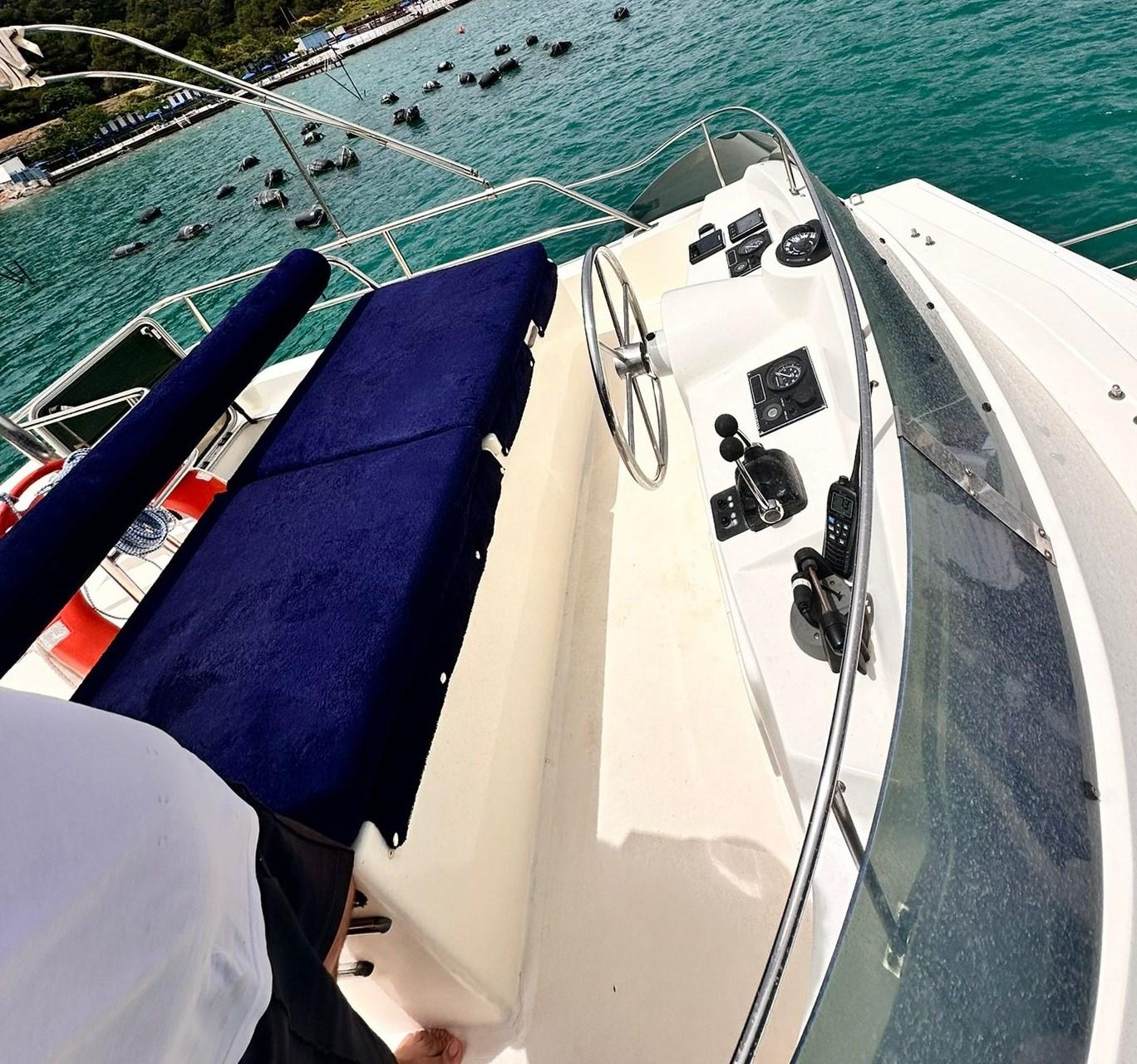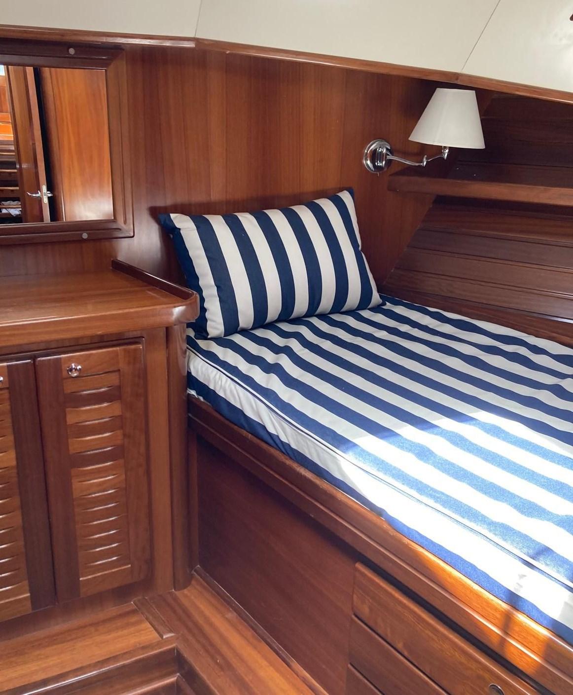 Alarme moteur, Alarme de pompe de cale, Eau sous pression, Douche de cockpit, Double barre à roue, Flaps hydrauliques, Extincteur(s) fixe(s), Lavage de chaine, Éclairage de courtoisie, Passerelle, Plateforme arrière, Pompe de cale automatique, Pompe de cale manuelle, Porte latérale, Cockpit en teck, Prise de quai, Répétiteur électronique, Guindeau électrique, Echelle de bain, table de cockpit, Filières avec sortie latèrale, Corne.
