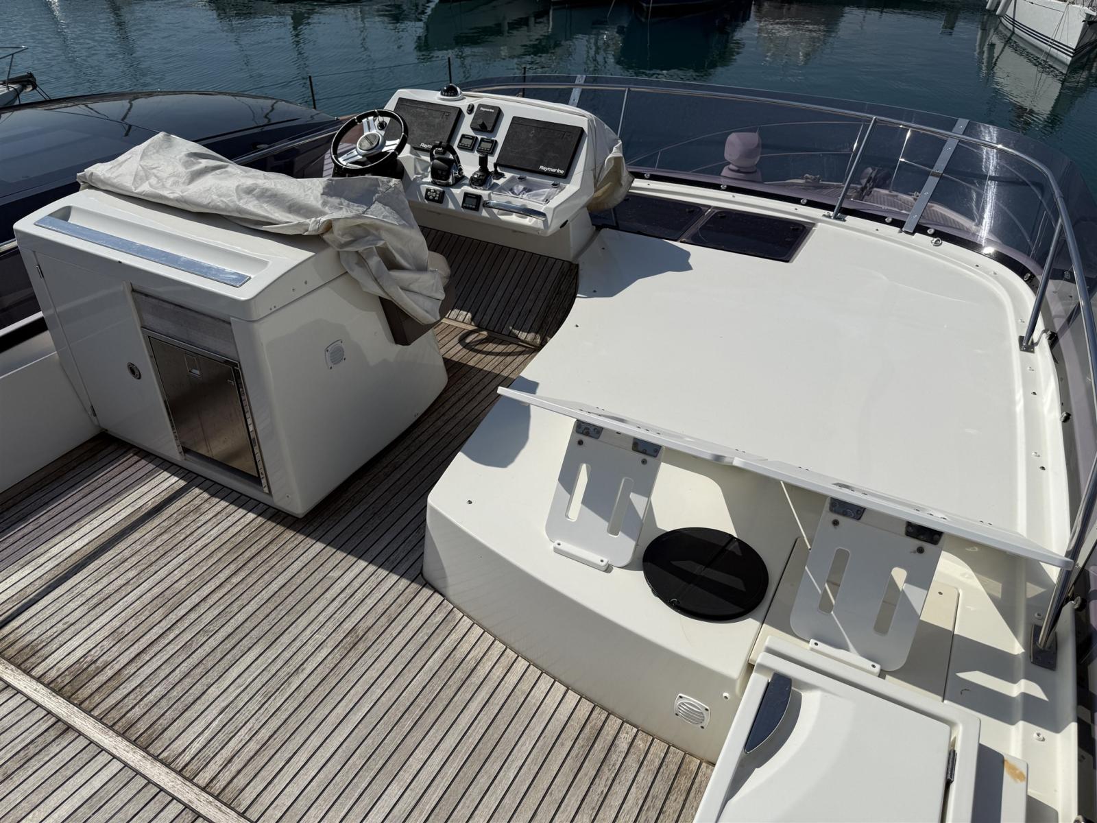Alarme moteur, Alarme de pompe de cale, Alternateur, Eau sous pression, Passavant en teck, Douche de cockpit, Double barre à roue, Phare de poursuite, Flaps électriques, Extincteur(s) fixe(s), Indicateurs de flaps, Éclairage de courtoisie, Passerelle, Plateforme arrière, Pompe de cale automatique, Pompe de cale manuelle, Pont en teck, Porte latérale, Cockpit en teck, Prise de quai, Rollbar, Guindeau électrique, Echelle de bain, Stabilisateurs (SEAKEEPER 6), table de cockpit, Filières avec sortie latèrale, Corne, Winch électrique arrière.