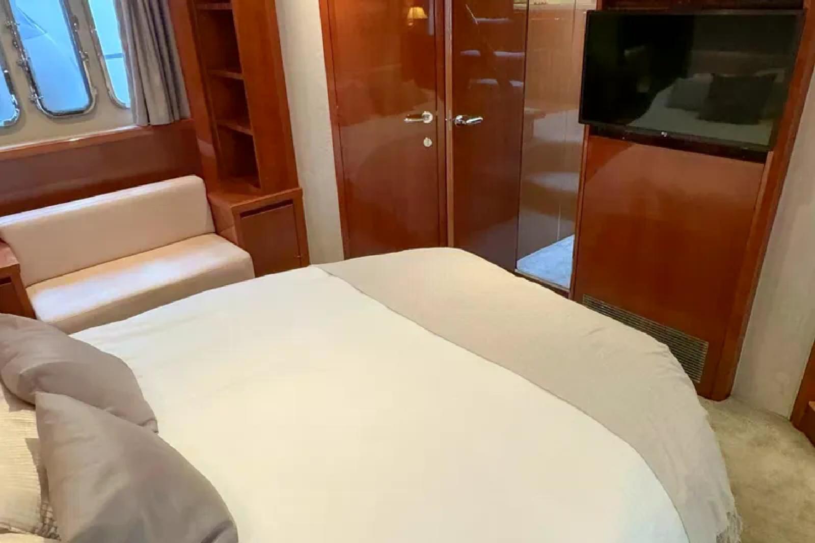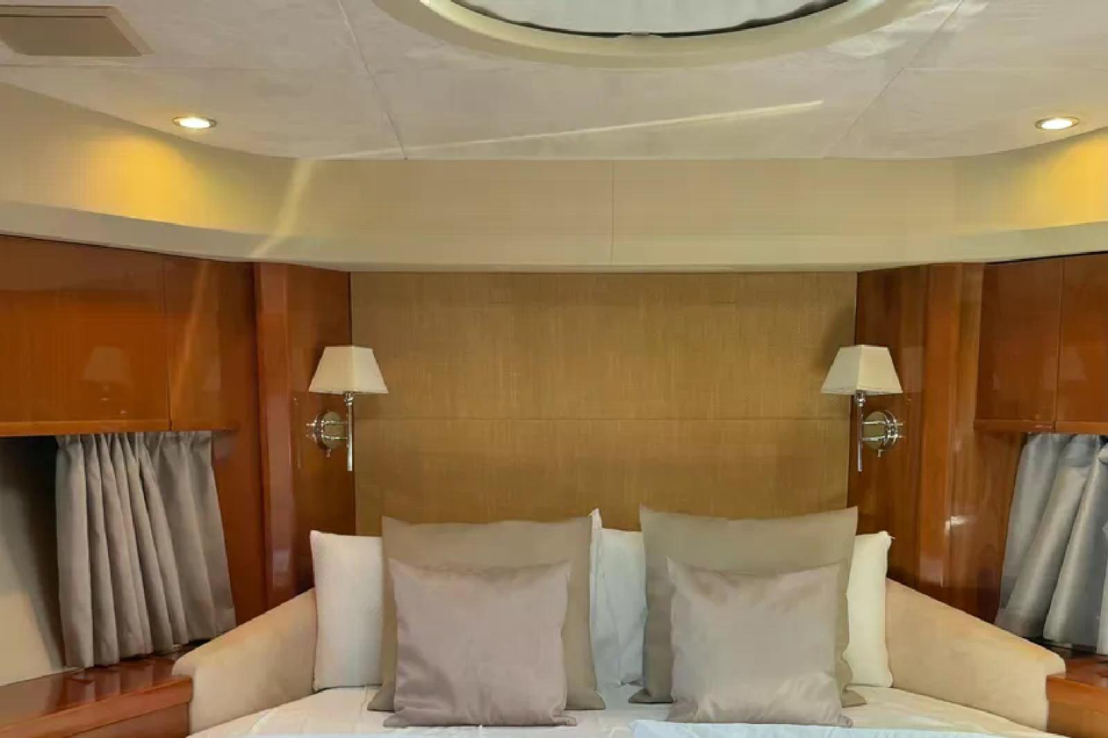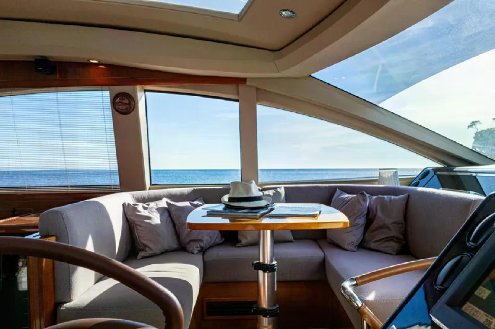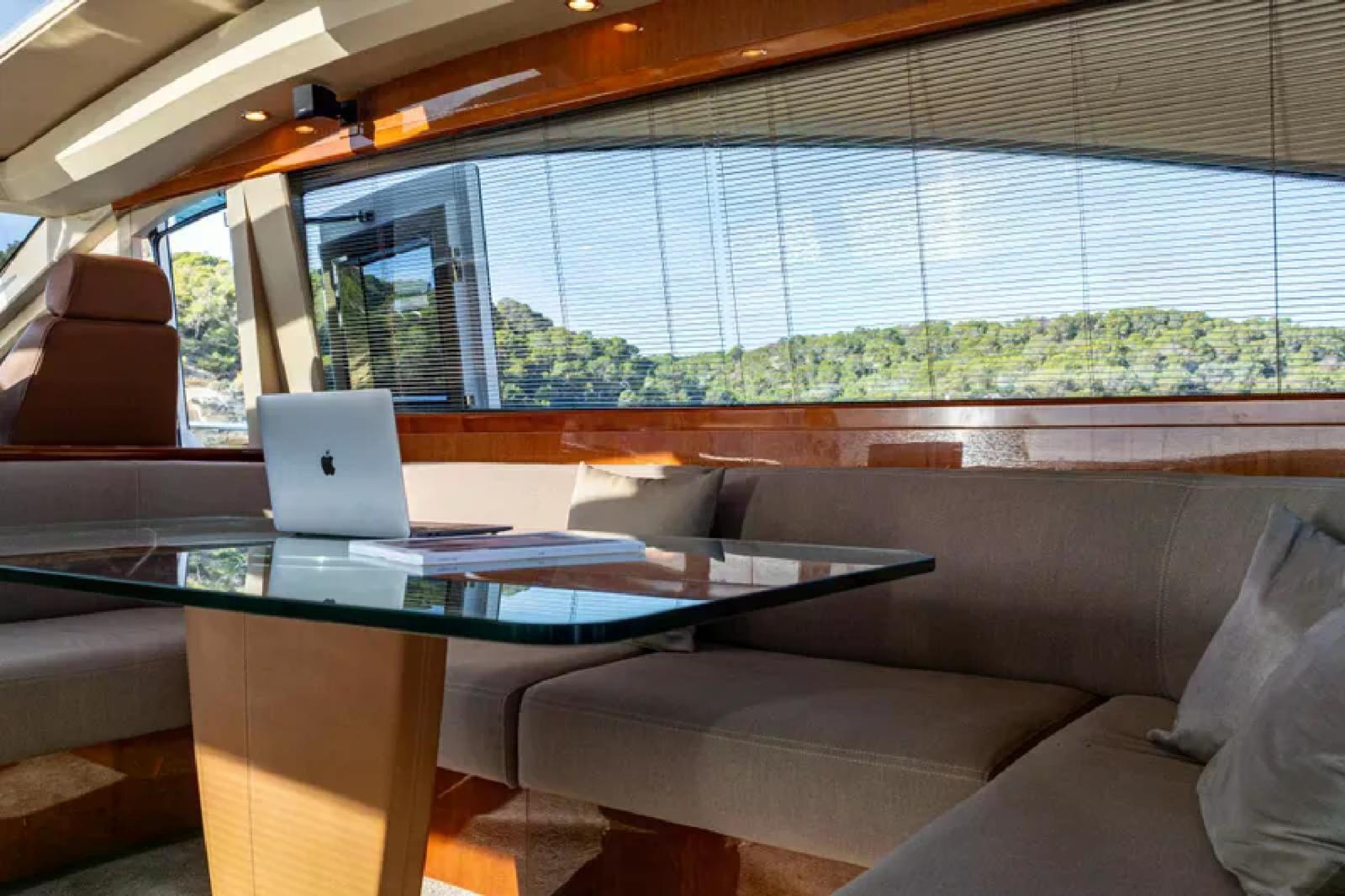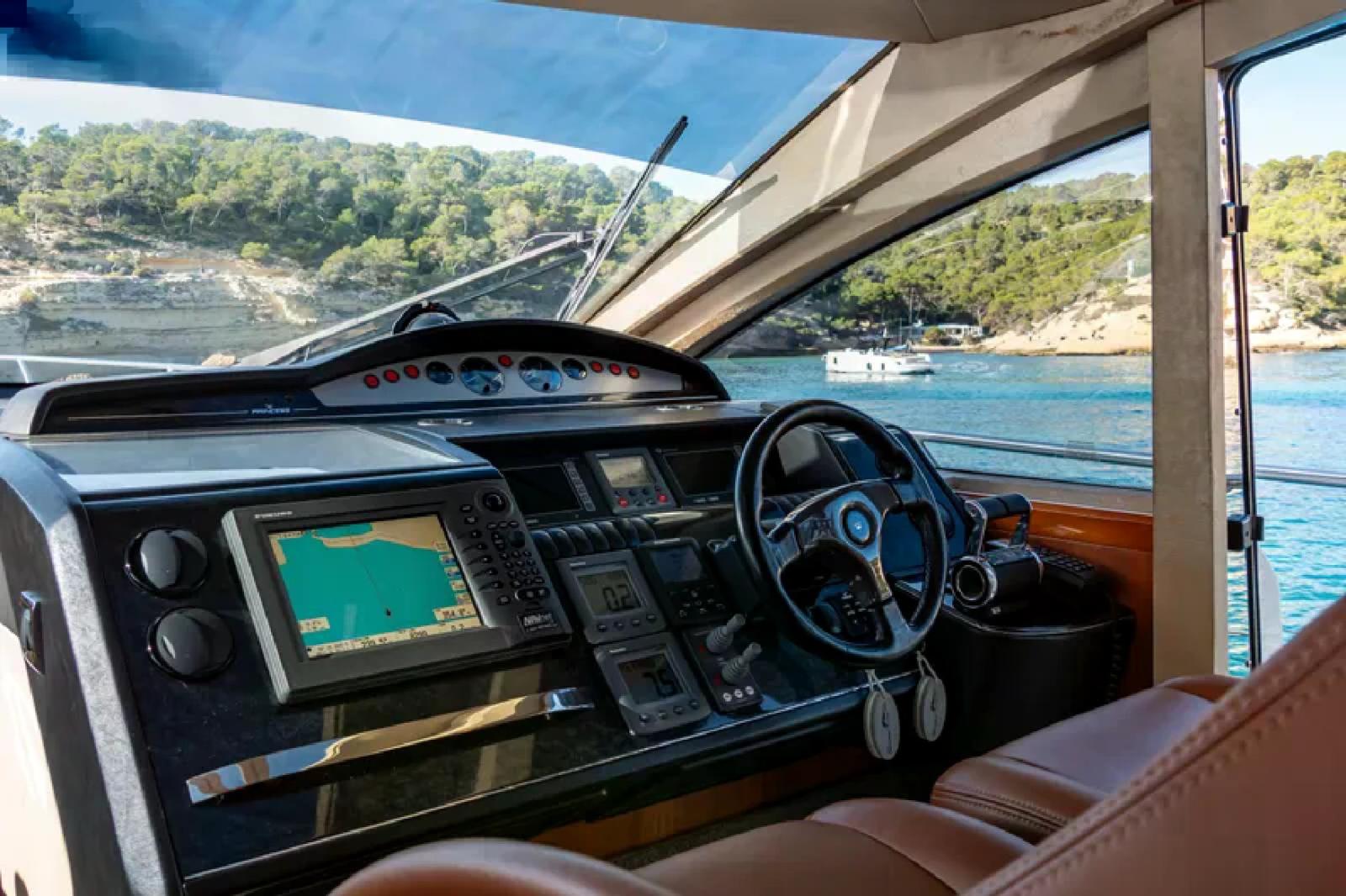 Alarme moteur, Alarme de pompe de cale, Alternateur, Eau sous pression, Passavant en teck, Douche de cockpit, Phare de poursuite, Flaps électriques, Garage à annexe, Hard top, Extincteur(s) fixe(s), Indicateurs de flaps, Lavabo dans le cockpit, Éclairage de courtoisie, Passerelle, Plateforme arrière (ELETTROIDRAULICA), Pompe de cale automatique, Pont en teck, Porte latérale, Porte latérale, Cockpit en teck, Prise de quai, Connexion eau sous pression à quai, Guindeau électrique, Echelle de bain, table de cockpit, Filières avec sortie latèrale, Corne, Winch électrique arrière.
