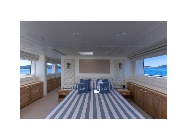 SANLORENZO SD112 accueille confortablement dans un style italien contemporain jusqu’à 11 invités dans 5 cabines avec la suite principale sur le pont principal.