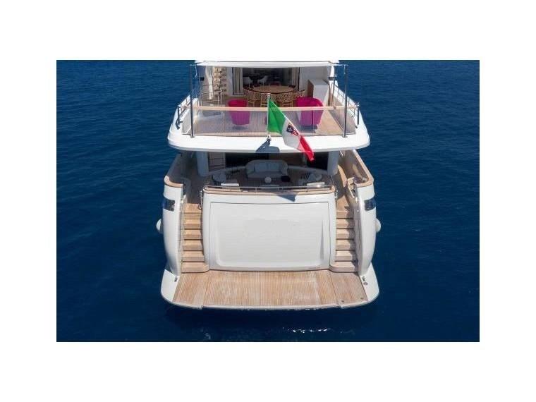 Alarme gaz, Alarme moteur, Alarme de pompe de cale, Eau sous pression, Passavant en teck, Couleur spéciale, Douche de cockpit, Double barre à roue, Phare de poursuite, Garage à annexe, Bossoirs pour annexe, Extincteur(s) fixe(s), Éclairage de courtoisie, Passerelle, Plateforme arrière, Pompe de cale automatique, Pompe de cale manuelle, Porte latérale, Porte latérale, Cockpit en teck, Prise de quai, Connexion eau sous pression à quai, Onduleur, Répétiteur électronique, Guindeau Hydraulique, Echelle de bain, Stabilisateurs (CMC), table de cockpit, Annexe, Filières avec sortie latèrale, Corne, Winch hydraulique, Winch électrique arrière.
