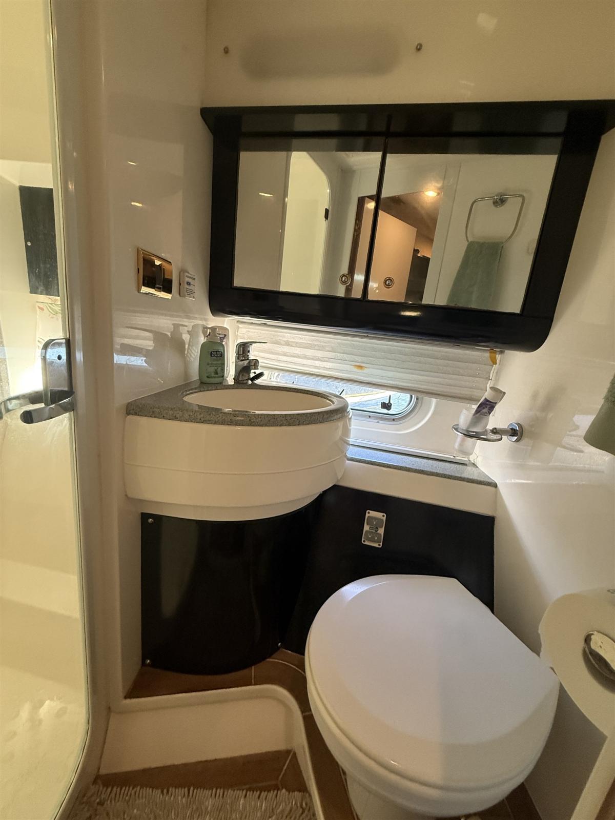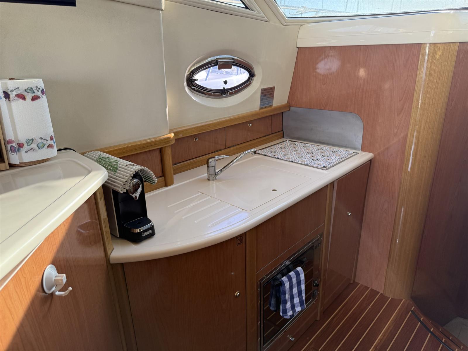 Alarme moteur, Alarme de pompe de cale, Alternateur, Eau sous pression, Câble d’alimentation à quai, Filères, Douche de cockpit, Double barre à roue, Phare de poursuite, Flaps électriques, Extincteur(s) fixe(s), Indicateurs de flaps, Lavabo dans le cockpit, Éclairage de courtoisie, Spots sous-marins, Défenses, Passerelle, Plateforme arrière, Pompe de cale automatique, Pompe de cale manuelle, Porte latérale, Cockpit en teck, Prise de quai, Répétiteur électronique, Rollbar, Guindeau électrique, Echelle de bain, table de cockpit, Filières avec sortie latèrale, Corne.