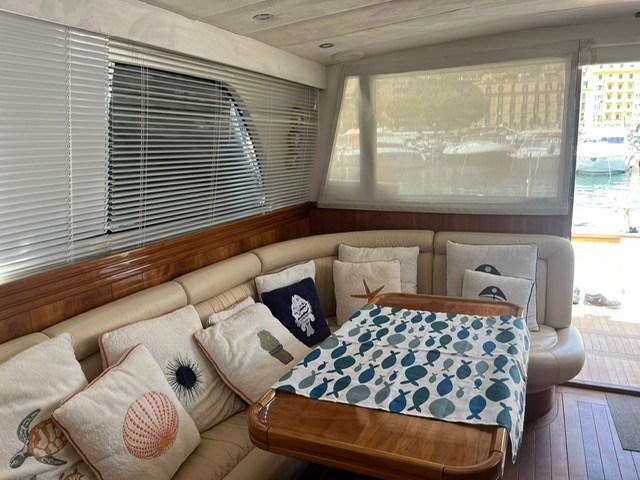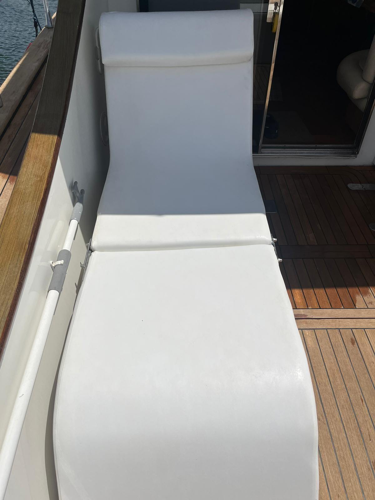 Alarme moteur, Alarme de pompe de cale, Eau sous pression, Passavant en teck, Couleur spéciale, Douche de cockpit, Flaps hydrauliques, Hard top, Extincteur(s) fixe(s), Éclairage de courtoisie, Passerelle, Plateforme arrière, Pompe de cale automatique, Pompe de cale manuelle, Porte latérale, Cockpit en teck, Prise de quai, Guindeau électrique, Echelle de bain, table de cockpit, Filières avec sortie latèrale, Corne.