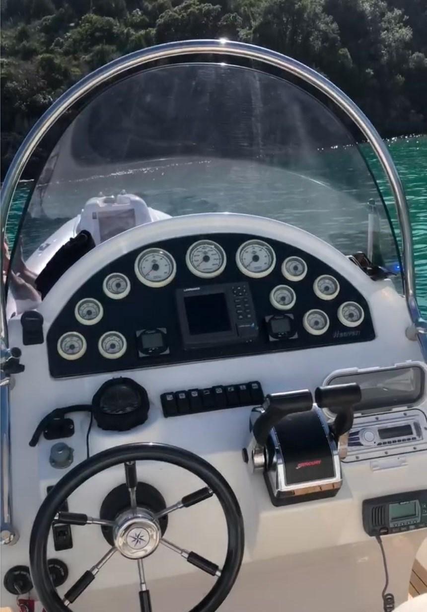 Alarme moteur, Alarme de pompe de cale, Ancre (INOX), Ouverture du compartiment moteur électrique, Eau sous pression, Douche de cockpit, Éclairage de courtoisie, Plateforme arrière (TEAK), Pompe de cale automatique, Pompe de cale manuelle, Cockpit en teck, Prise de quai, Guindeau électrique, Echelle de bain, Corne.