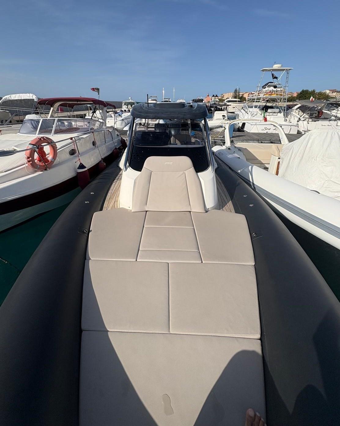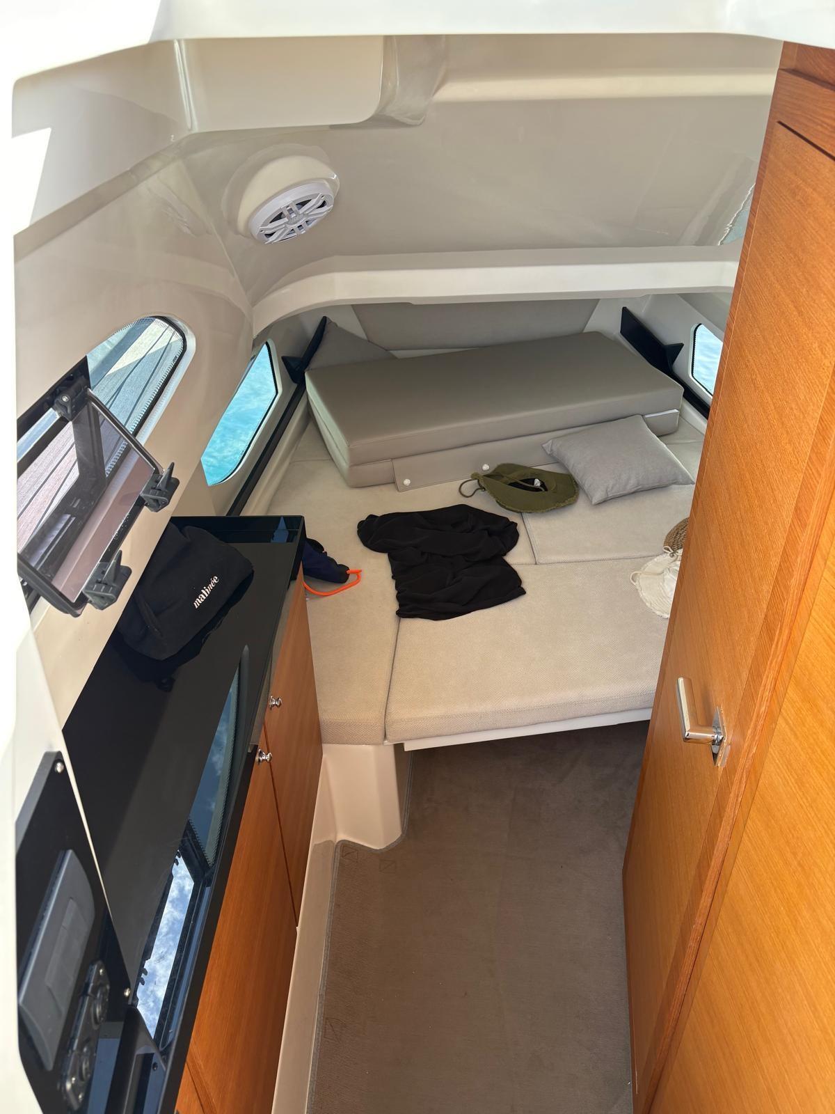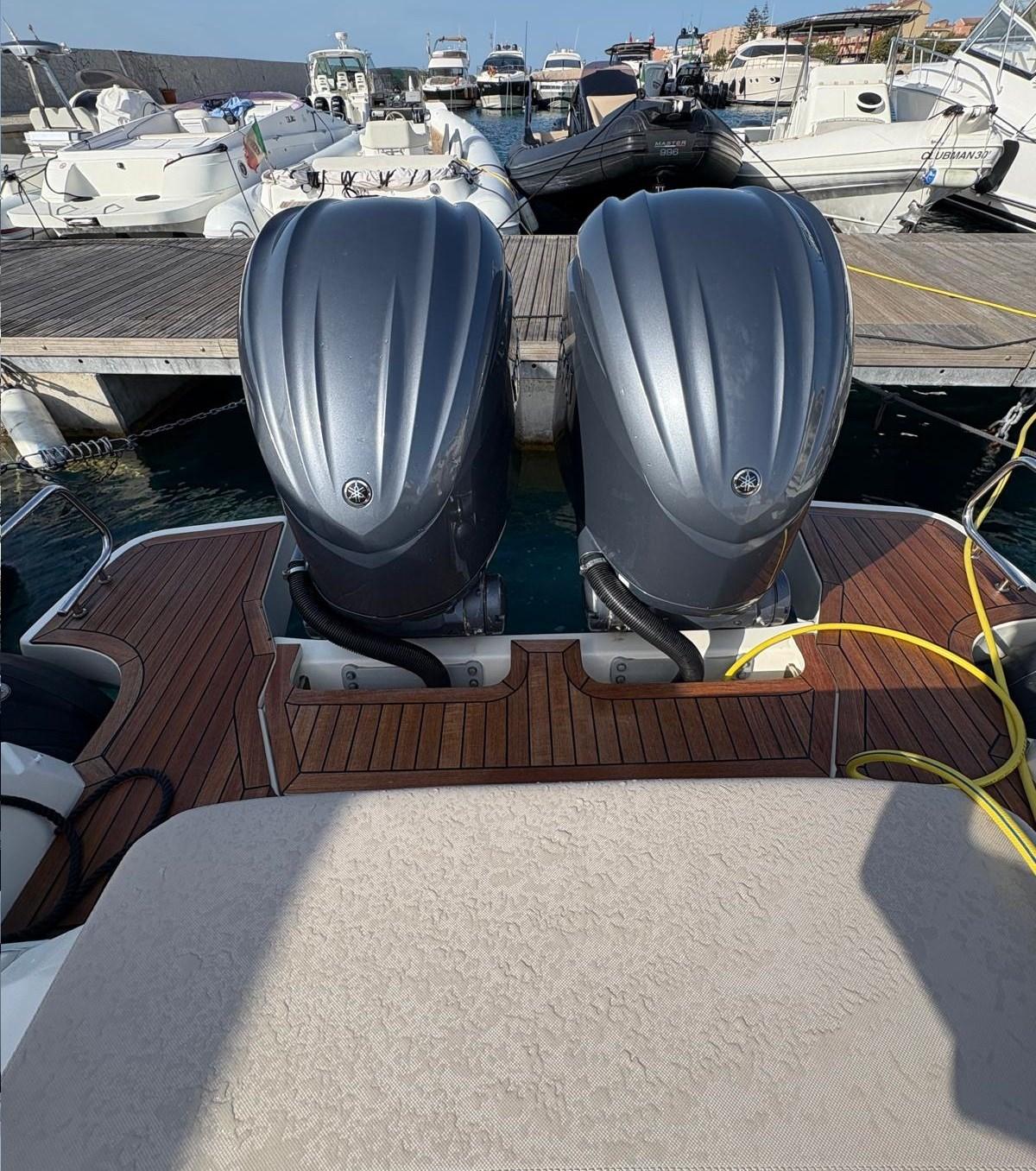 Alarme moteur, Alarme de pompe de cale, Alternateur, Eau sous pression, Passavant en teck, Câble d’alimentation à quai, Douche de cockpit, Lavabo dans le cockpit, Éclairage de courtoisie, Plateforme arrière, Pompe de cale automatique, Pompe de cale manuelle, Cockpit en teck, Prise de quai, Guindeau électrique, Echelle de bain, table de cockpit, Corne, T-Top.