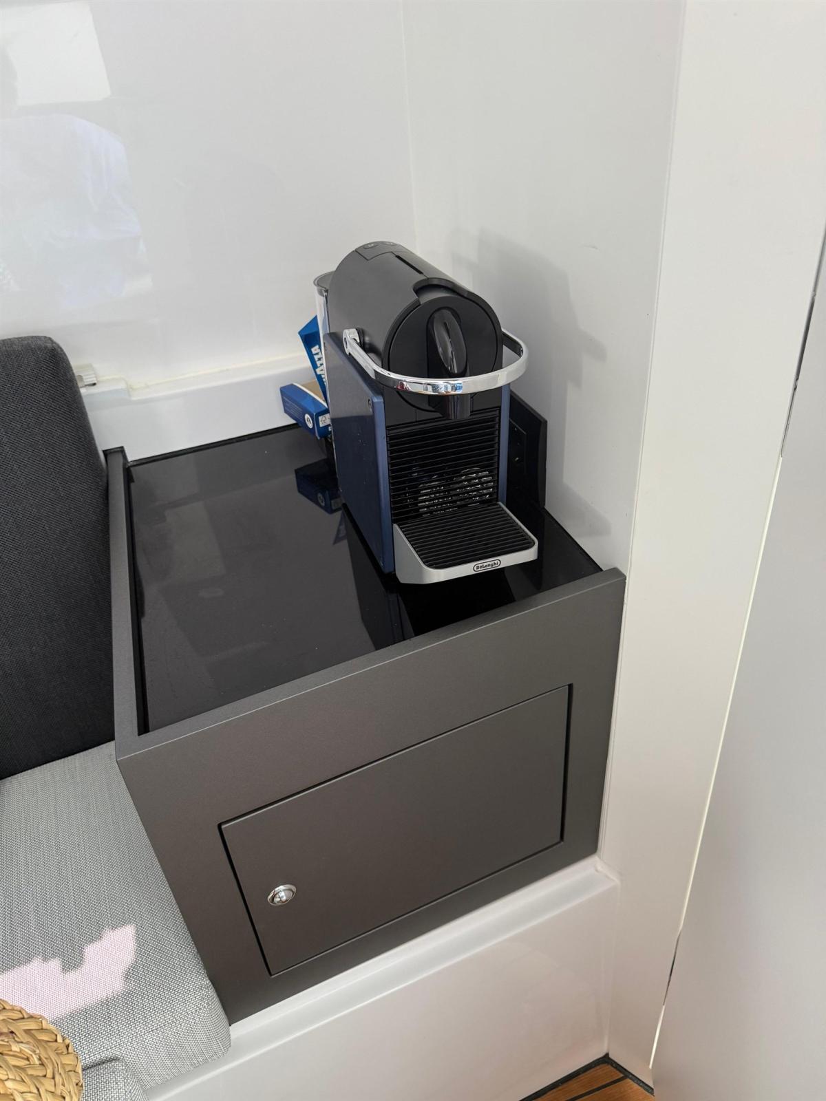 Réfrigérateur extérieur (+ secondo frigo e freezer), Machine a café.