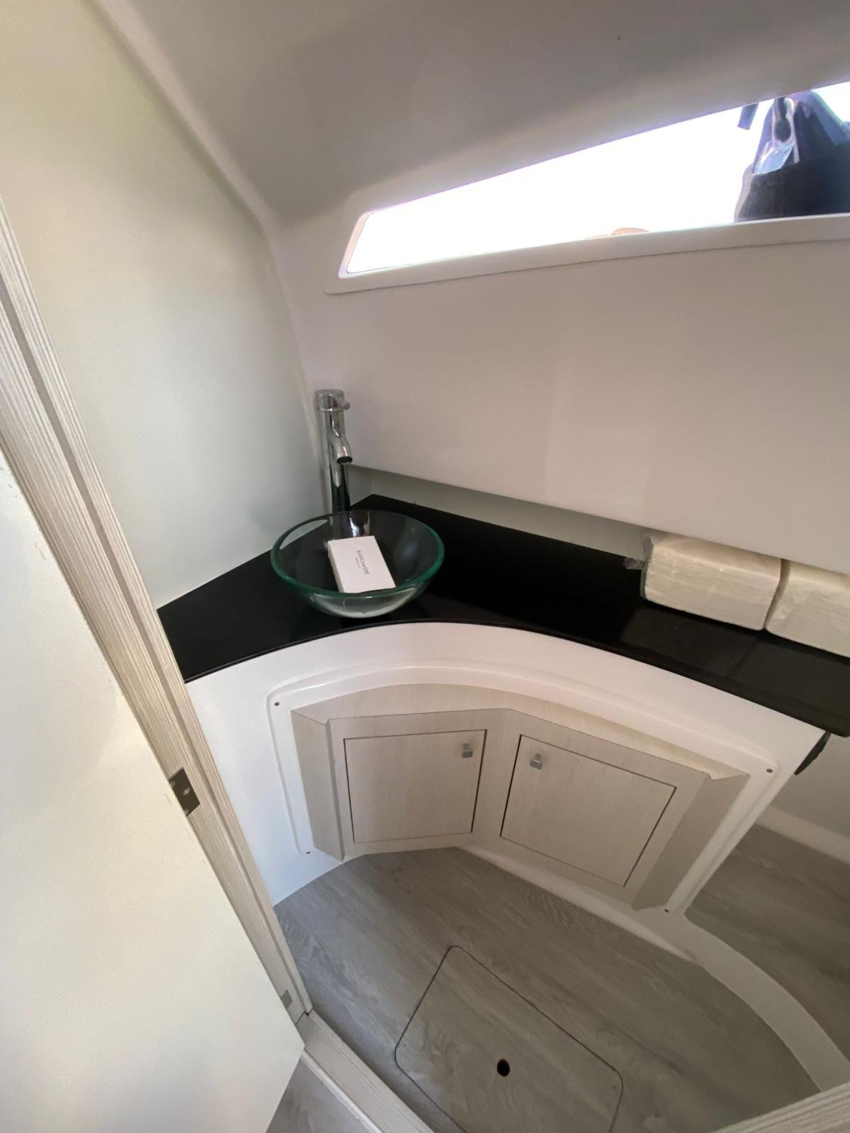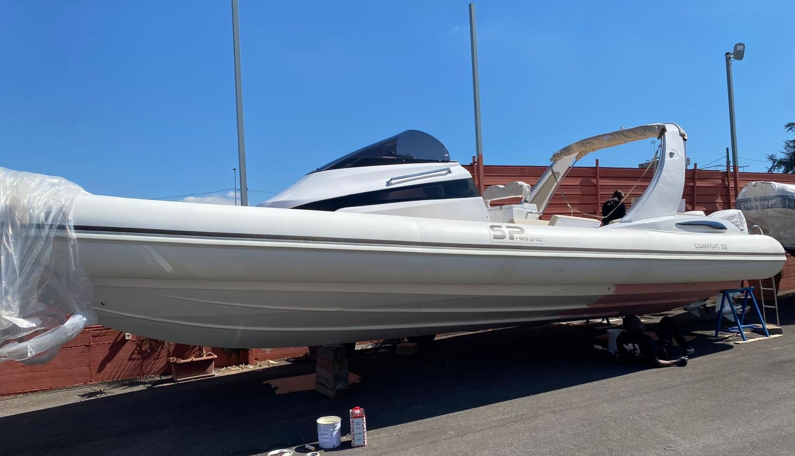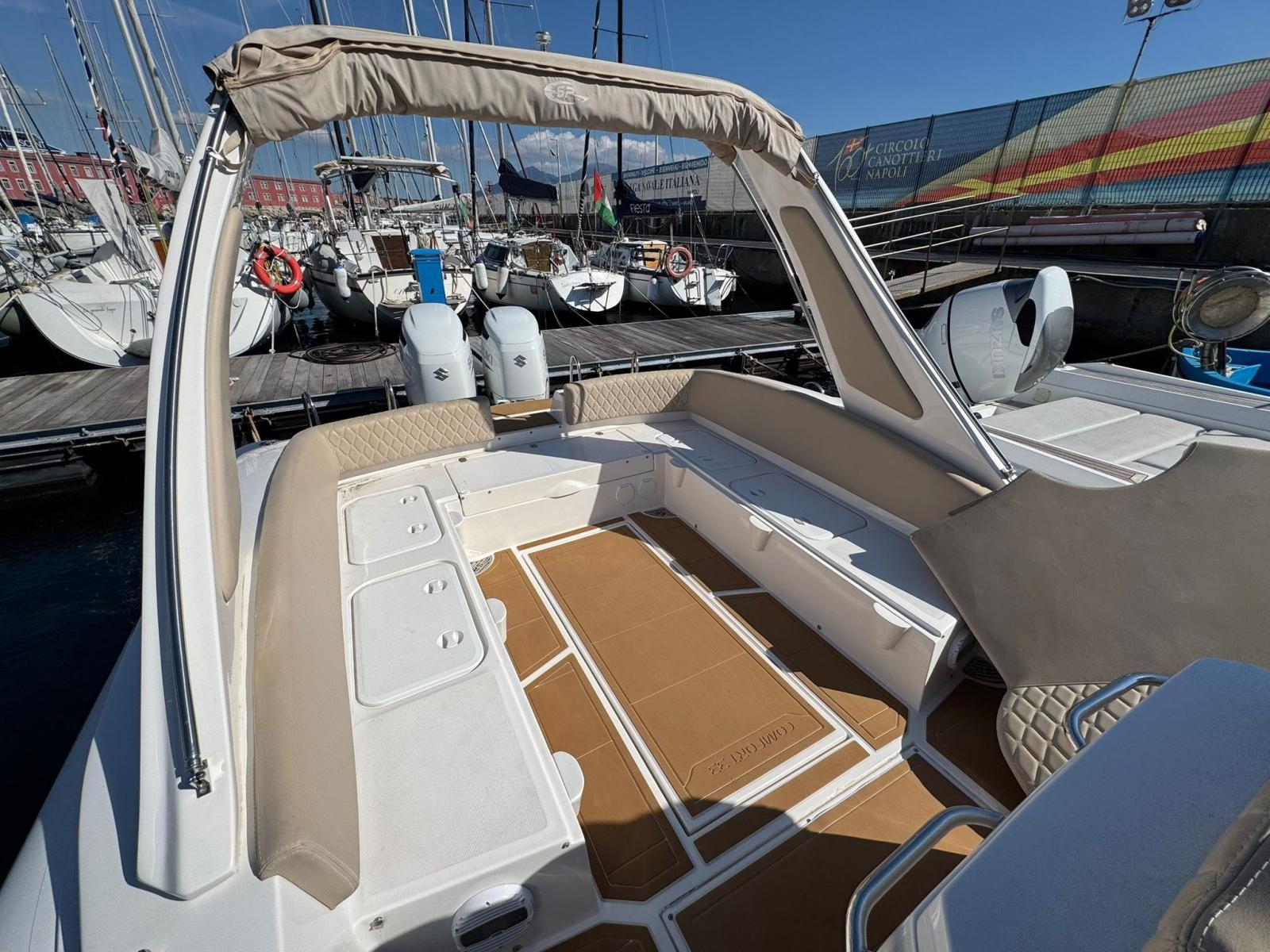 Alarme moteur, Alarme de pompe de cale, Eau sous pression, 2 Douche de cockpit (A POPPA E PRUA), Éclairage de courtoisie (LED), Pompe de cale automatique, Pompe de cale manuelle, Prise de quai, Rollbar (CON LUCI), Guindeau électrique, Echelle de bain (DOPPIA), Table.