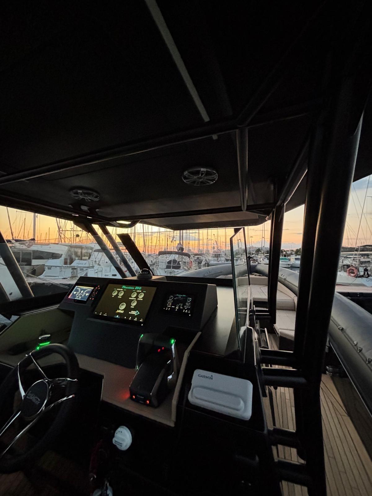 Indicateur d'angle de barre, Ordinateur fixe de bord, Moniteur, Joystick (CON ANCORA VIRTUALE), Plotter GPS (GARMIN 12"), Siège copilote.