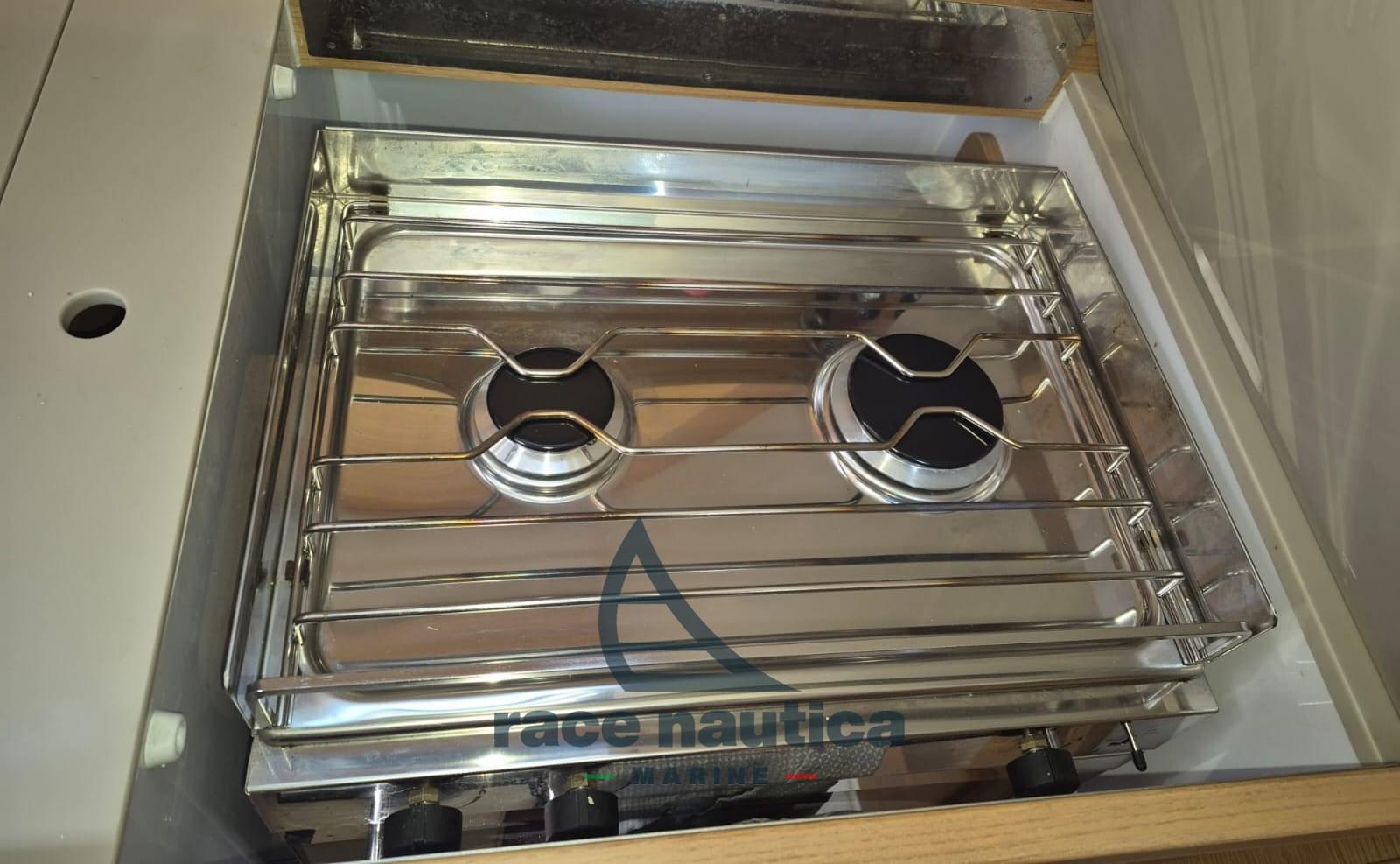 Dufour Yachts 360 de 2021, en excellent état, disponible pour des visites en Ligurie. Version : 2 cabines + 1 salle de bain, intérieurs en chêne. Teck dans le cockpit, Bimini, Auvent, coussins de cockpit, supplément moteur 29 ch Voile-moteur, station de navigation Raymarine i70s côté bâbord, pilote automatique Raymarine Evolution avec moteur rotatif Lewmar et instrument de commande P70S, GPS Raymarine 7" sur la table centrale externe, VHF DSC Ray50, treuil AR T40 pour la grand-écoute, Genoa, Gennaker (y compris la grand-escoûte allemande), Barbecue arrière, équipement Jennaker avec bapré fixe à la proue, hublot supplémentaire à grande ouverture dans la cabine arrière (cockpit bâbord), maisons de timonerie en acier (cuir), enfoncement dans le cockpit, protection de proue en acier inoxydable, bimini couleur chiné, ancre Danforth avec diamètre de chaîne 10 + corde, 6 pare-boues, 3 amarres, hélice motrice à pales fixes, pompe à eau de mer standard, Un poêle à deux feux comme neuf. Compte-tours à remplacer.