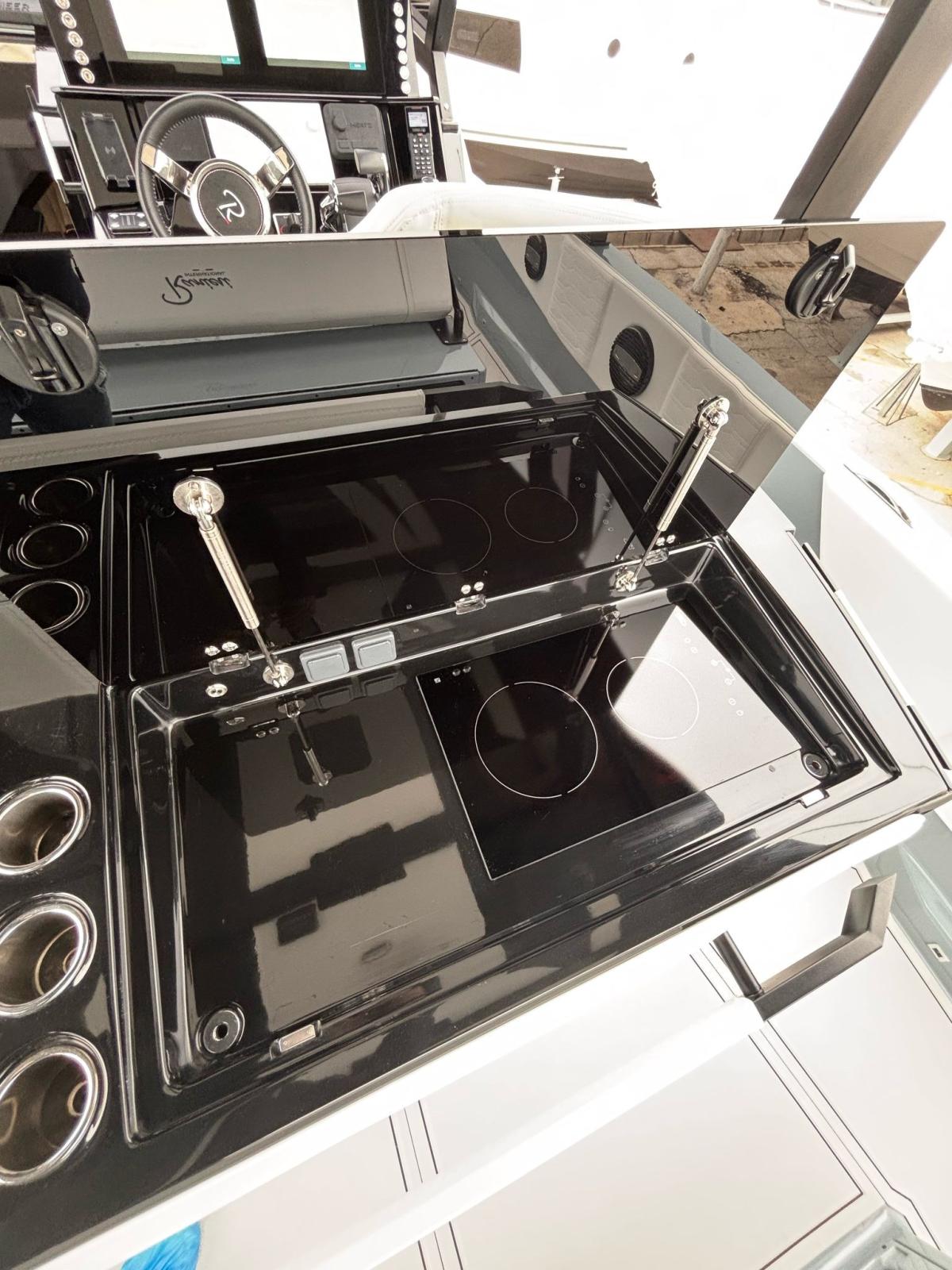 Ouverture du compartiment moteur électrique, Douche de cockpit, Éclairage de courtoisie, Spots sous-marins, Prise de quai, Guindeau électrique, Echelle de bain, Table, table de cockpit, Corne.