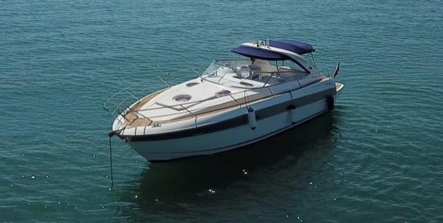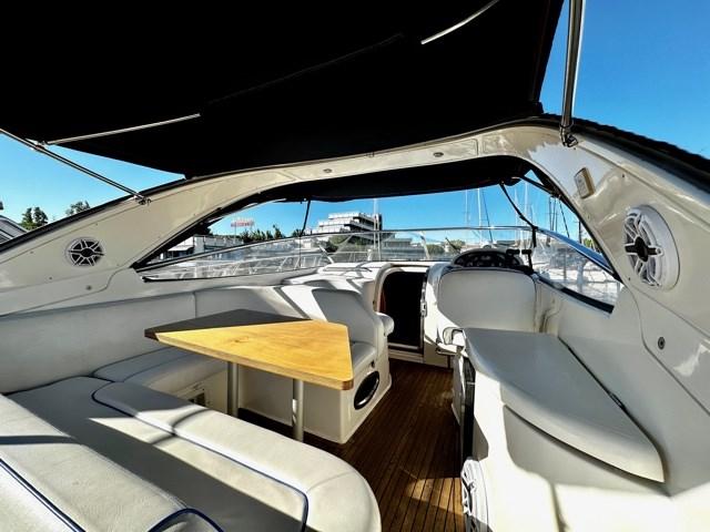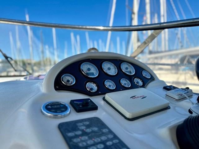 Alarme moteur, 4 Batteries (2 motori + 2 servizi), Passavant en teck, 2 Douche de cockpit (1 a poppa 1 a prua), Flaps hydrauliques, Indicateurs de flaps, Lavabo dans le cockpit, Éclairage de courtoisie, Passerelle, Plateforme arrière (teak), Pompe de cale manuelle, Porte latérale, Cockpit en teck, Prise de quai, Connexion eau sous pression à quai, Rollbar, Guindeau électrique, Echelle de bain, table de cockpit, Annexe (+ fuoribordo Honda 1,7 Kw).