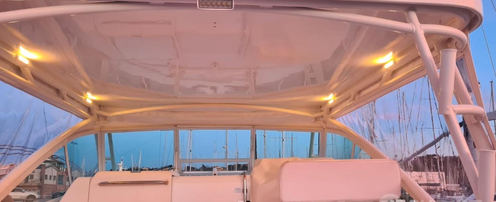Alarme moteur, 4 Batteries (Nuove da140 ah), Chargeur de batterie (nuovo 2022), Douche de cockpit, Flaps hydrauliques, Indicateurs de flaps, Lavabo dans le cockpit, Éclairage de courtoisie, Plateforme arrière, Porte latérale, Prise de quai, Connexion eau sous pression à quai, Rollbar, Guindeau électrique, Echelle de bain, Corne.