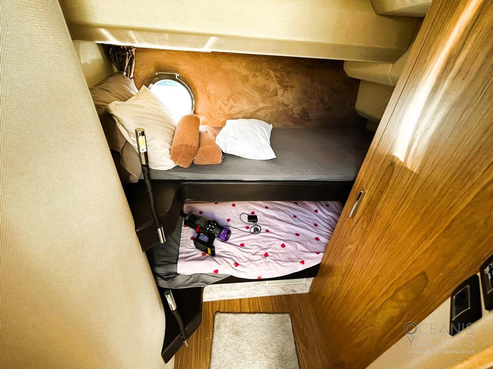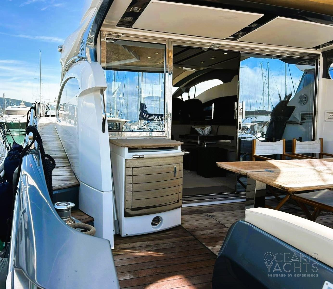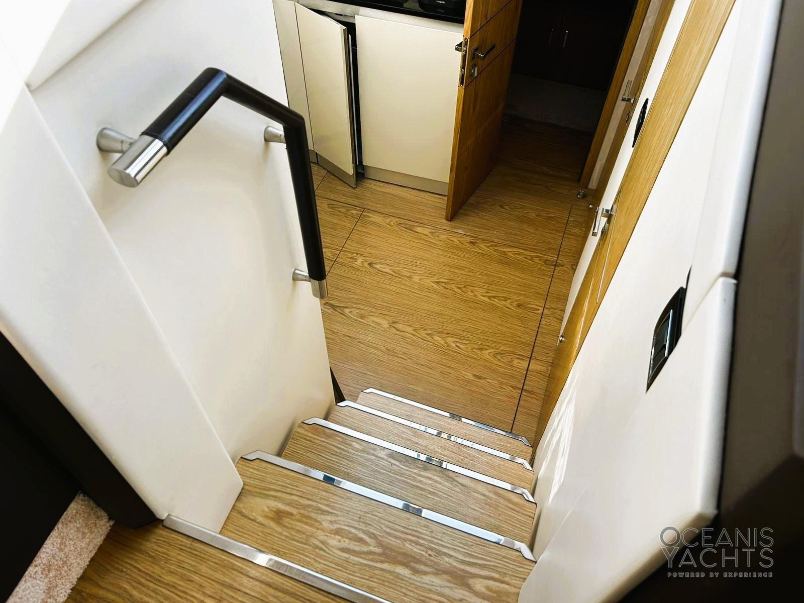Alarme moteur, Alarme de pompe de cale, Alternateur, Eau sous pression, Trim hydraulique, Phare de poursuite, Flaps électriques, Hard top, Éclairage de courtoisie, Défenses, Passerelle (idraulica), Plateforme arrière (affontabile), Pompe de cale automatique, Pompe de cale manuelle, Pont en teck, Porte latérale, Cockpit en teck, Prise de quai, Guindeau électrique, Echelle de bain, table de cockpit, Corne, 2 Winch électrique arrière.