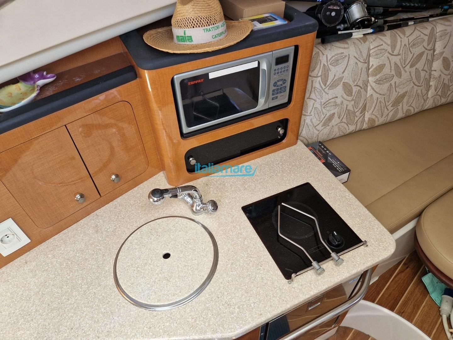 Accessoires principaux : 2 GPS avec sonde Raymarine ST 70 - Sondeur de profondeur - Douche extérieure - Toit rigide - Plateforme - Haut-parleurs - Chaîne stéréo - Aquarium vivant - Aquarium - Porte-canne - Auvent