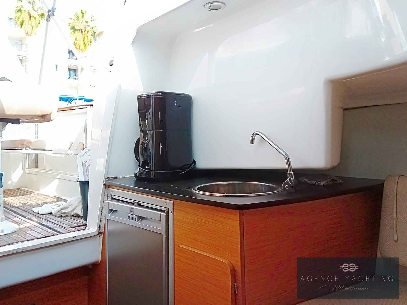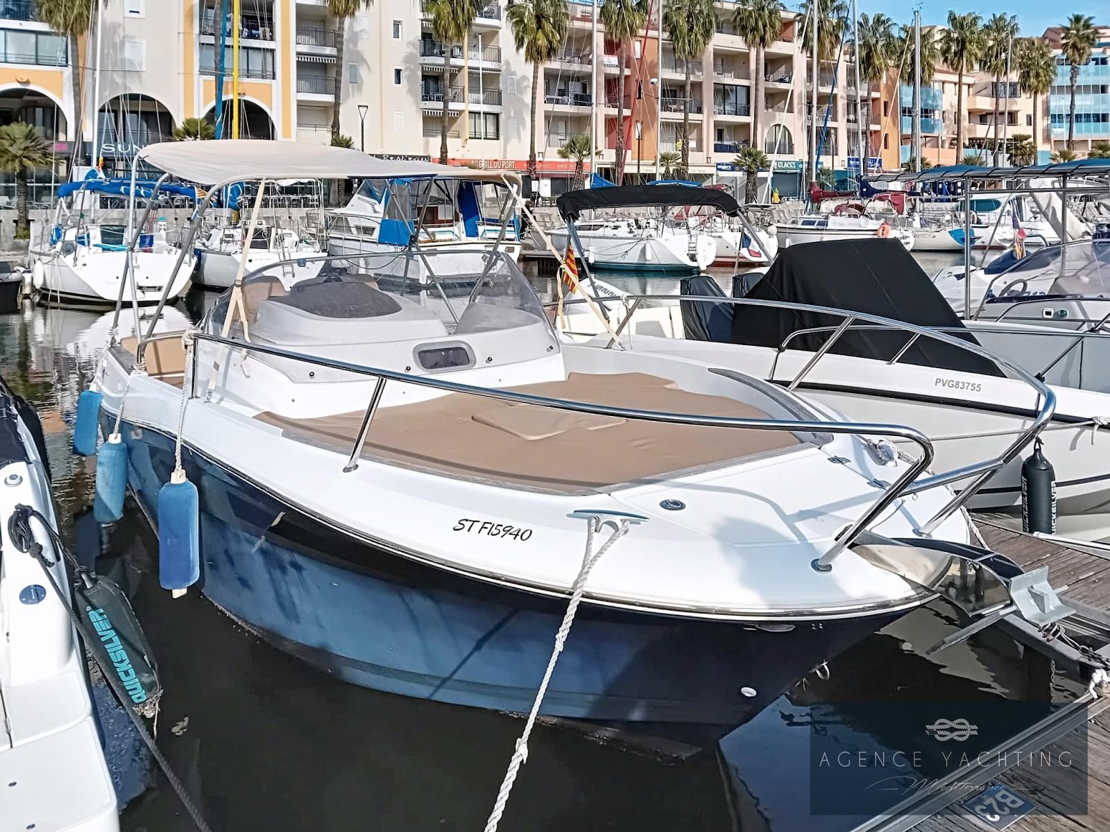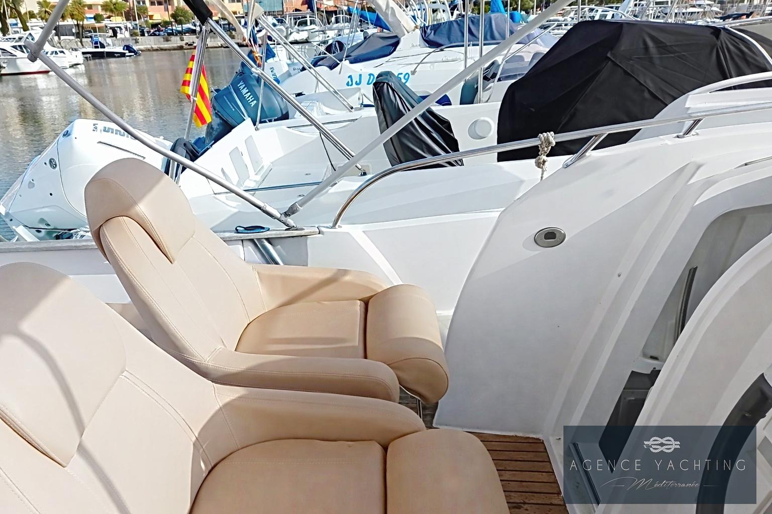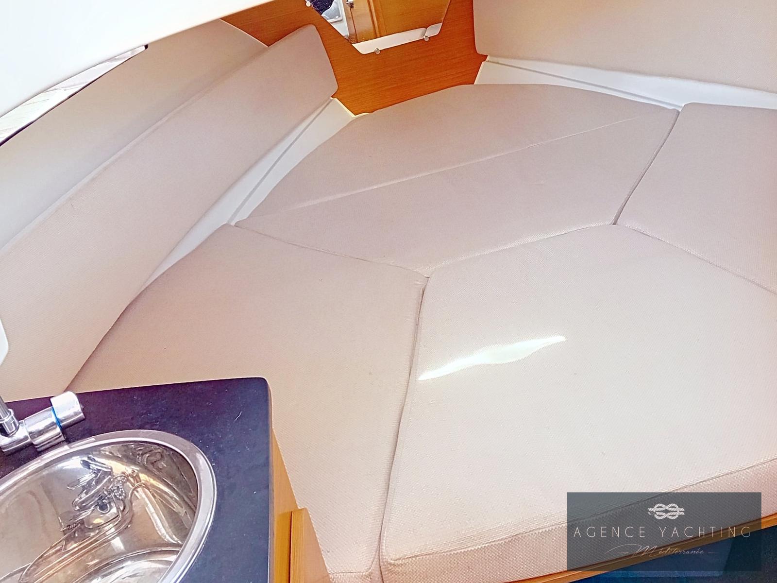 Pensé pour le plaisir et la convivialité, ce Cap Camarat propose de magnifiques espaces extérieurs avec deux larges plages arrière, une plateforme de bain confortable, une échelle de bain et une douchette, idéales pour profiter pleinement des baignades. Le pont en full teck, en excellent état, apporte une touche résolument haut de gamme, tandis que la sellerie complète, soigneusement entretenue, témoigne du soin apporté au bateau. Le bain de soleil avant invite à la détente et le mât de ski Inox ravira les amateurs de loisirs nautiques.