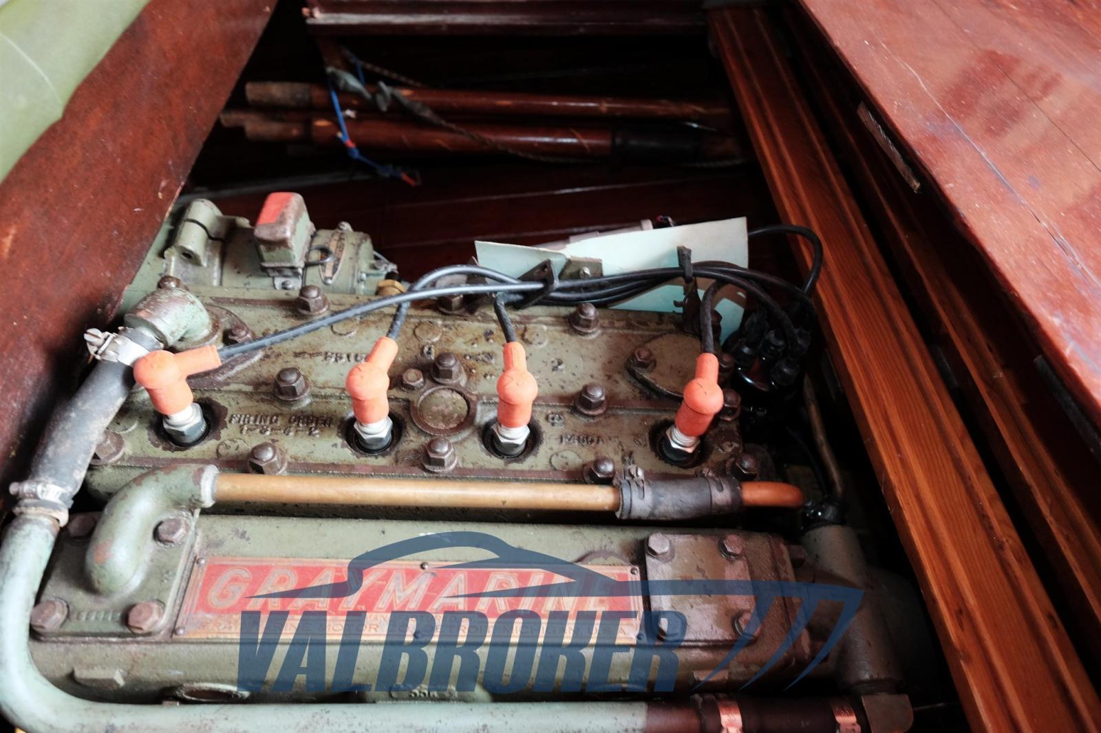 Bateau à moteur vintage en acajou. Excellent état de conservation, récemment refait en contreplaqué marin. Moteur GRAY MARINE 620, 60 CV, inboard. Révisé en 2023.