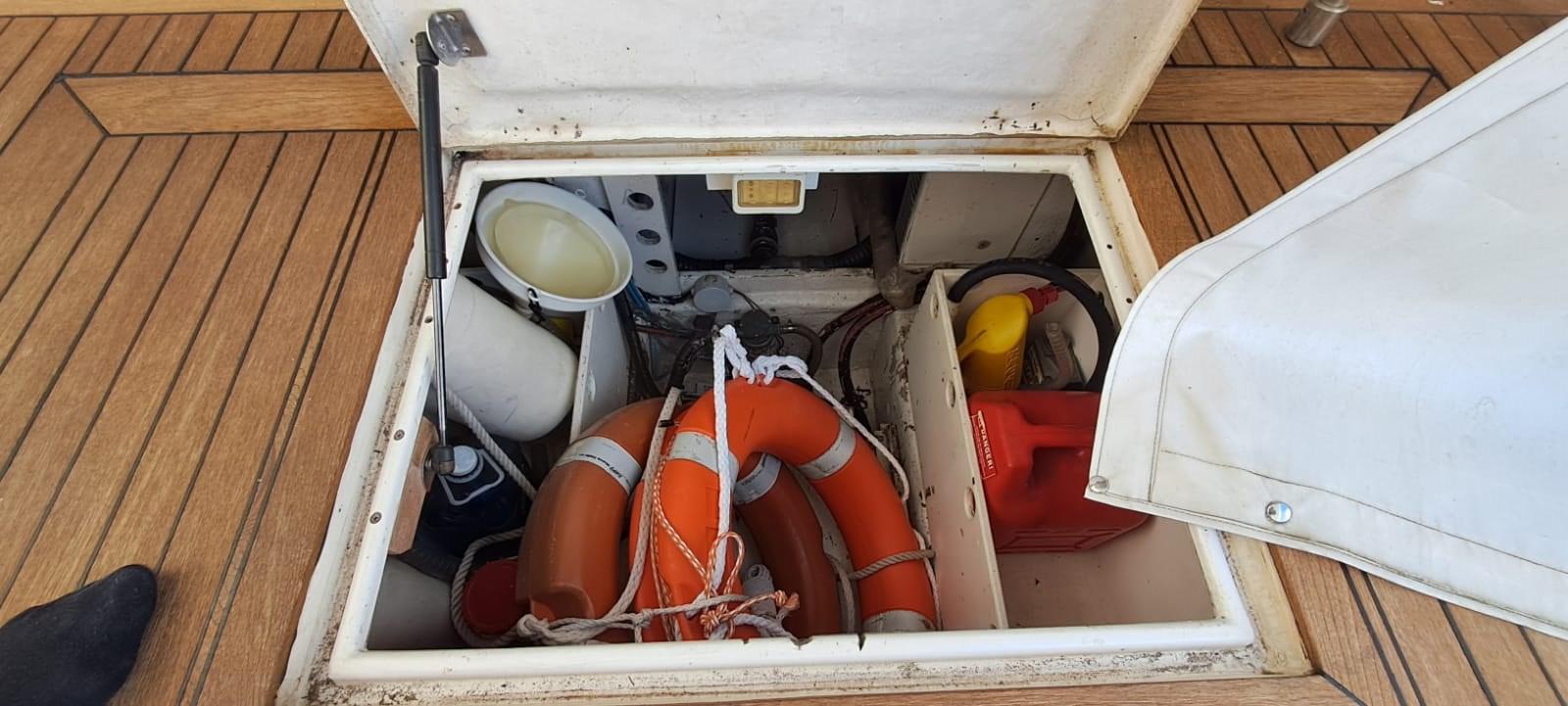Alarme moteur, Alarme de pompe de cale, Ancre (70m di catena 2015), Ligne d'arbre de rechange, Eau sous pression, 5 Batteries (nuove 2022), Chargeur de batterie (60 ah nuovo 2015), Douche de cockpit (con miscelatore caldo/freddo), Double barre à roue, 2 Hélice de rechange, 2 Flaps hydrauliques (maggiorati), Indicateurs de flaps, Éclairage de courtoisie (Full led), Passerelle (elettrica), Plateforme arrière, 4 Pompe de cale automatique, Porte latérale, Cockpit en teck, Prise de quai, Rollbar, Guindeau électrique (nuovo 2015), Echelle de bain, Corne.