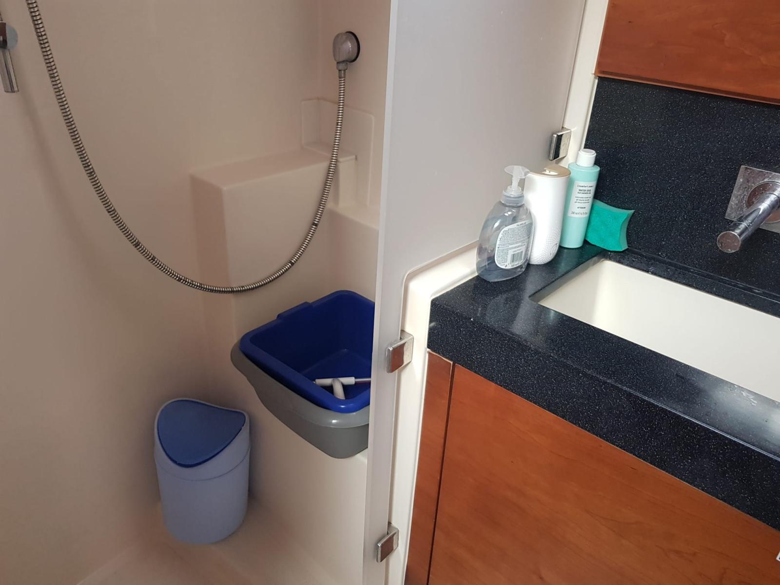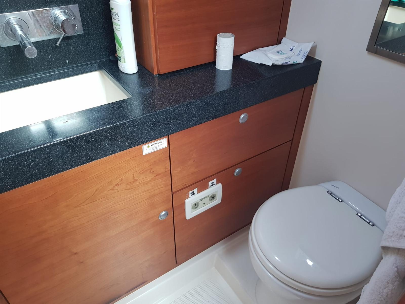 Air conditionné (caldo/freddo 2 macchine 1 sotto al letto di prua, l'altra nel gavone in pozzetto), Ballon d'eau chaude, Plancher intérieur en bois, Prises interieures 12v, Prises interieures 220v, Réservoir d'eau noire, Toilettes électriques, Toilettes manuelles.