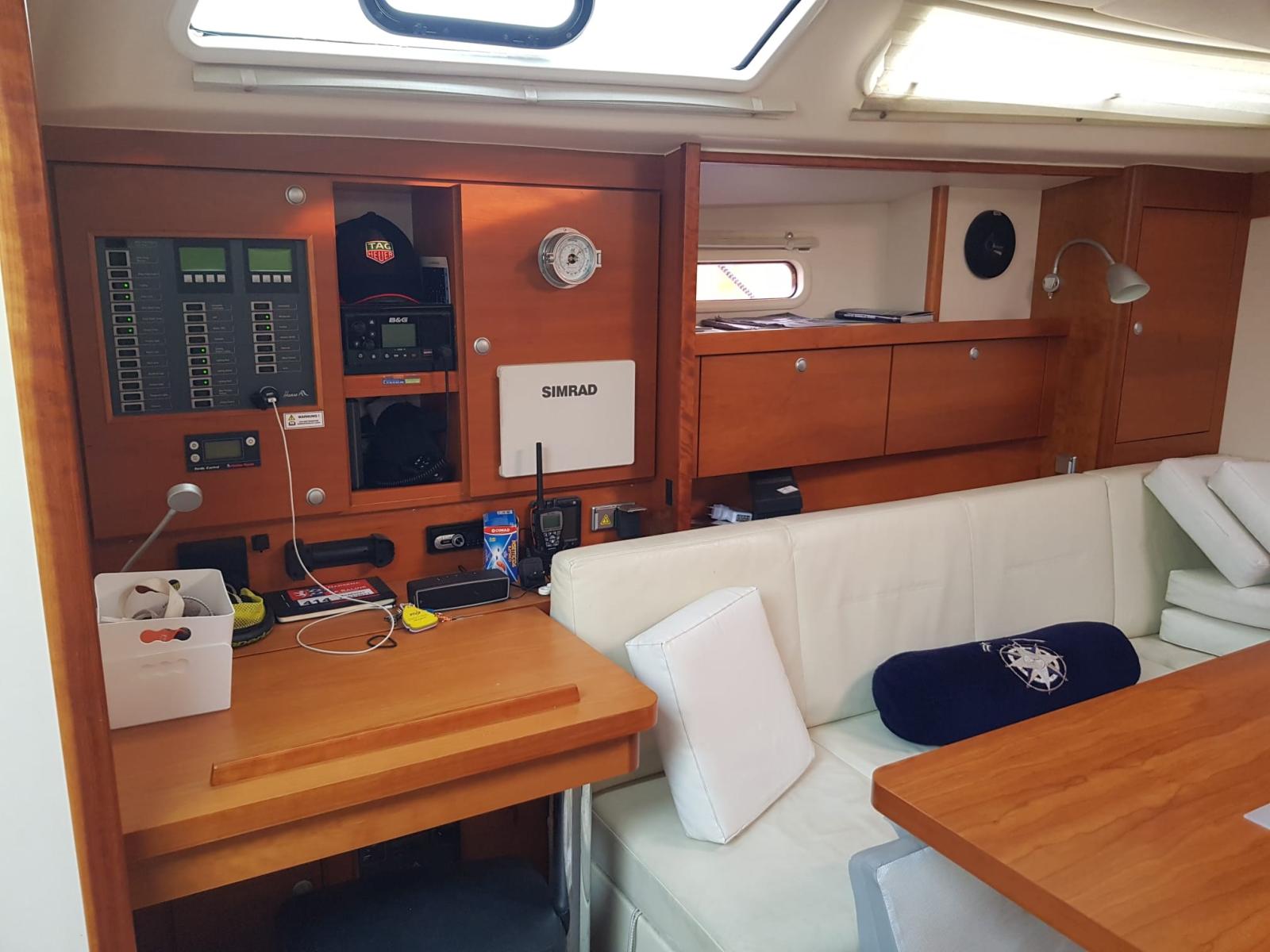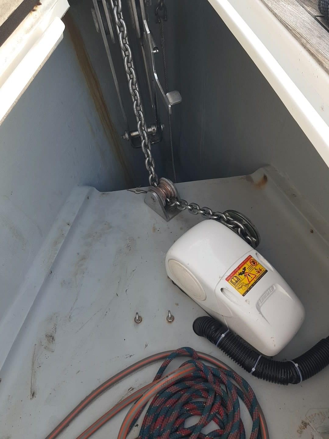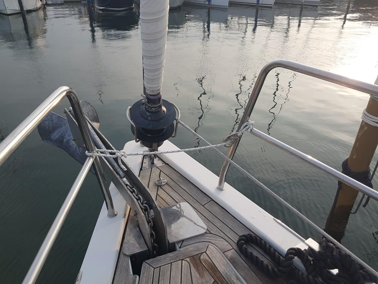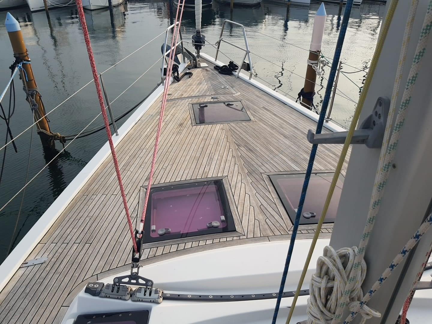 Alarme moteur, Alarme de pompe de cale, Ancre (con 50 m di catena in inox), Batteries (nuove 2022), Passavant en teck, Douche de cockpit, Double barre à roue, Éclairage de courtoisie, Passerelle (carbonio), Pompe de cale manuelle, Cockpit en teck, Prise de quai, Connexion eau sous pression à quai, Guindeau électrique, Gréement monotoron, Echelle de bain, table de cockpit (in plexiglas + telo copertura nuovo 2023), Winch, 2 Winch électrique.