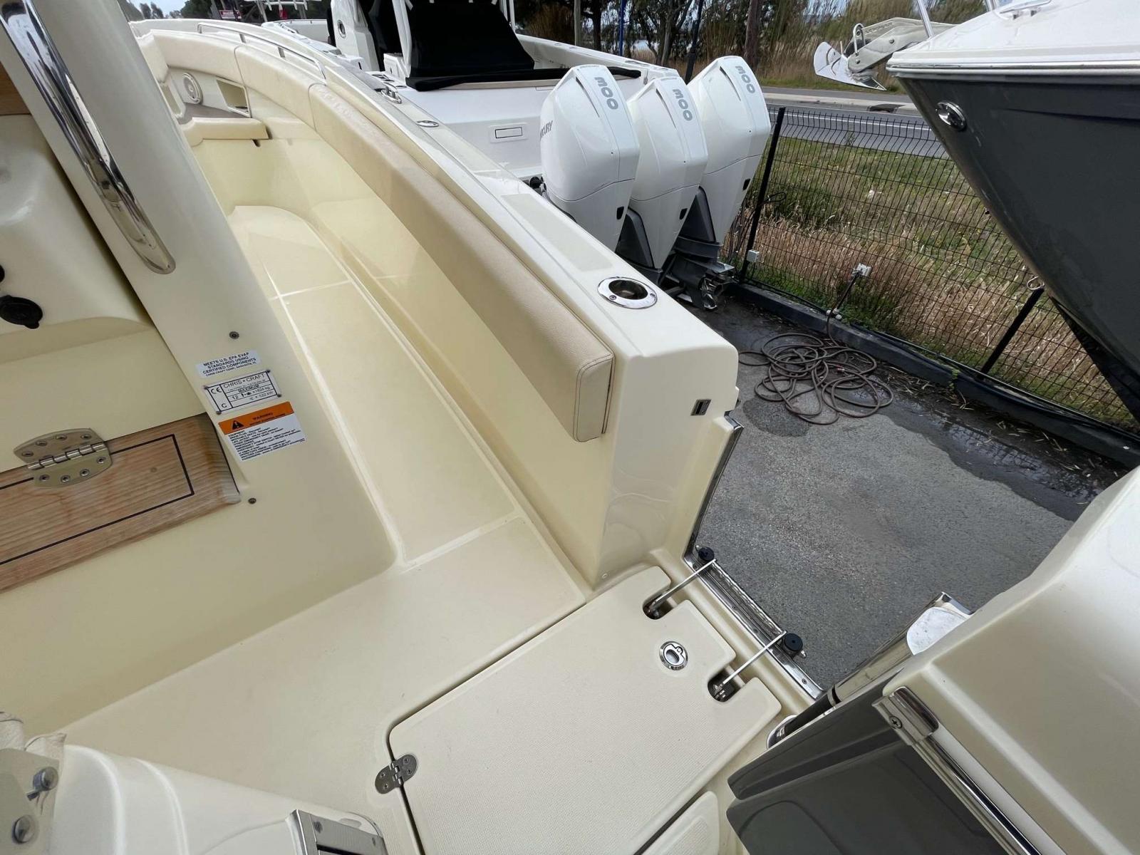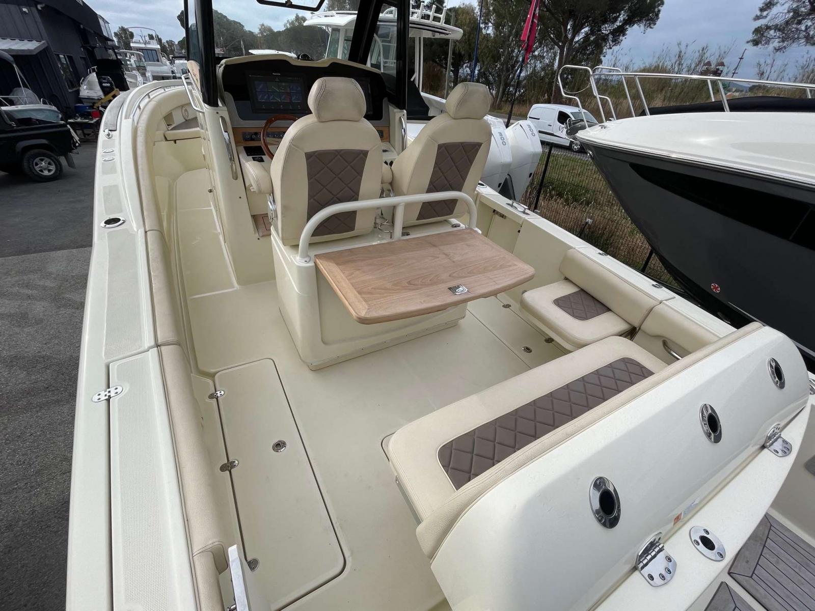 Equipements et options : Electronique GARMIN neuve 2023 ( deux ecrans 16'' avec sande pèche, VHF et radar ), stéréo premium, guindeau électrique, pack tauds de protection, taud de soleil électrique rétractable, réfrigérateur de cockpit, WC marins avec réservoir et vanne d'évacuation ( macérateur ), mat de ski amovible,