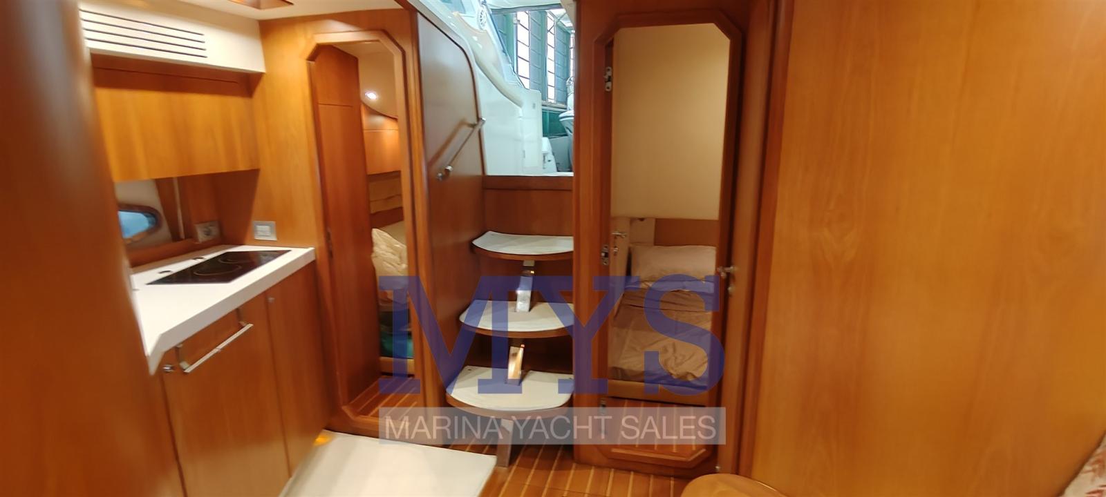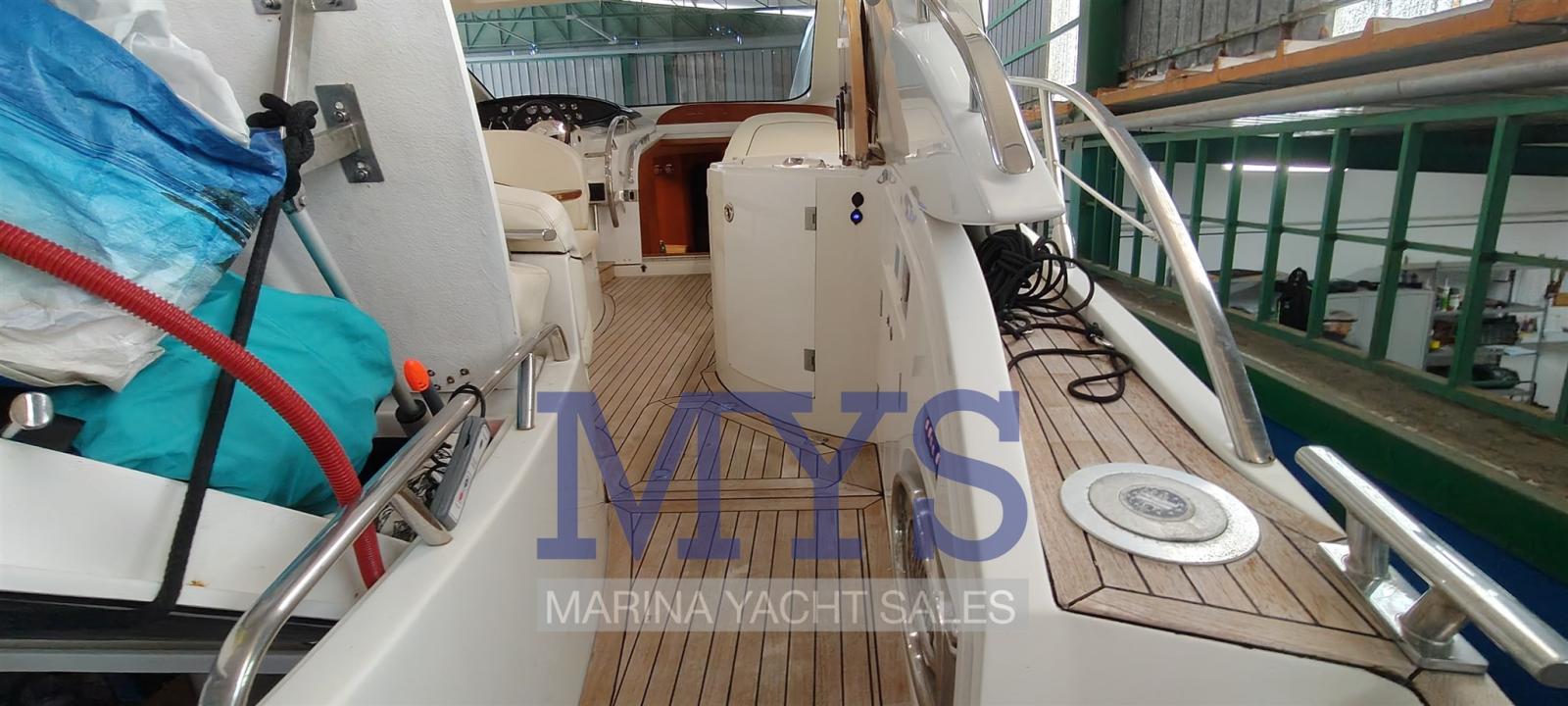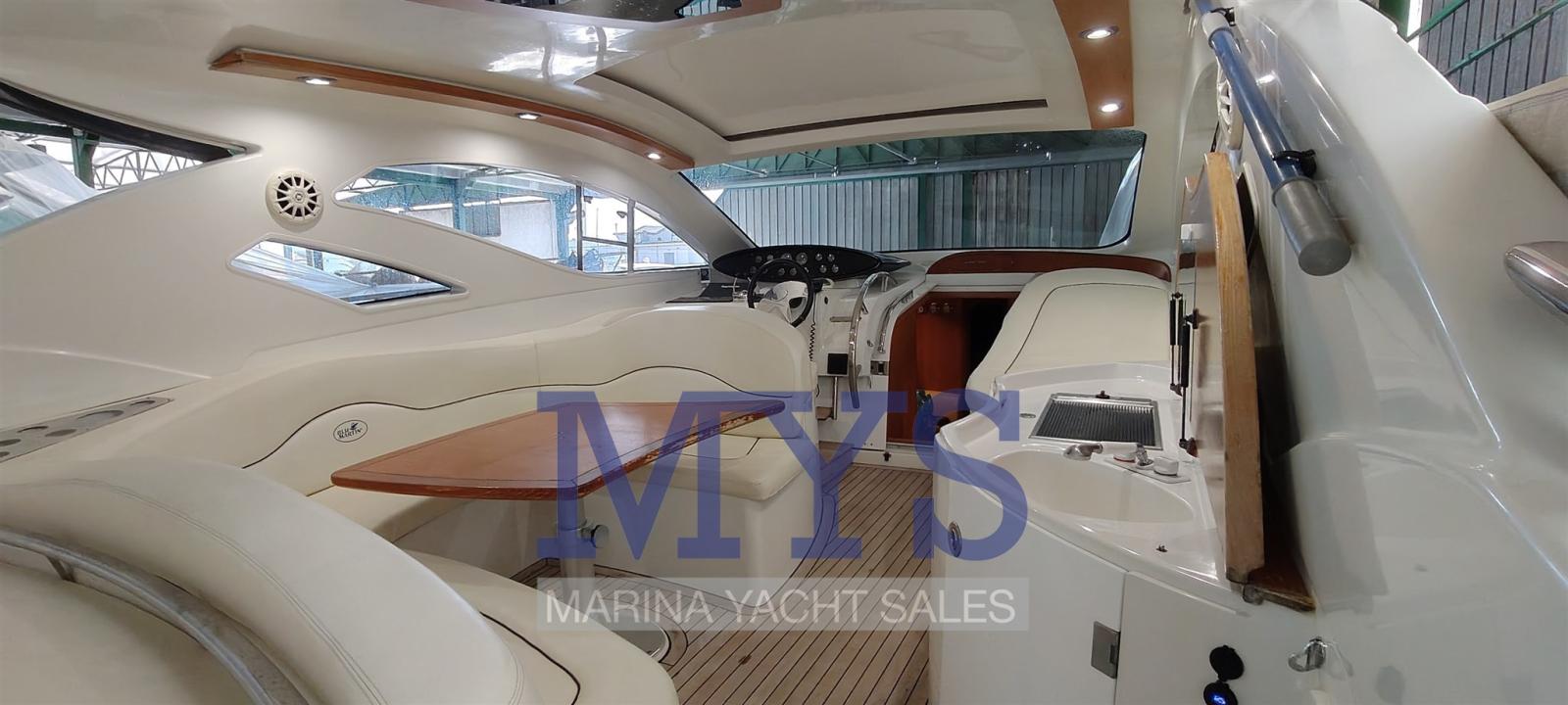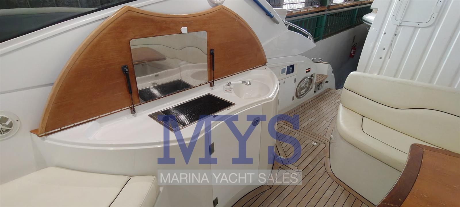 Alarme de pompe de cale, Ouverture du compartiment moteur électrique, Eau sous pression, Passavant en teck, Câble d’alimentation à quai, Filères, Douche de cockpit, Phare de poursuite, Flaps électriques, Garage à annexe, Hard top (apribile elettricamente), Indicateurs de flaps, Lavabo dans le cockpit, Éclairage de courtoisie (interne), Spots sous-marins, Passerelle (gandola), Plateforme arrière, Porte latérale, Cockpit en teck, Prise de quai, Connexion eau sous pression à quai, Guindeau électrique, Echelle de bain, table de cockpit, Table pliante de salon, Corne.