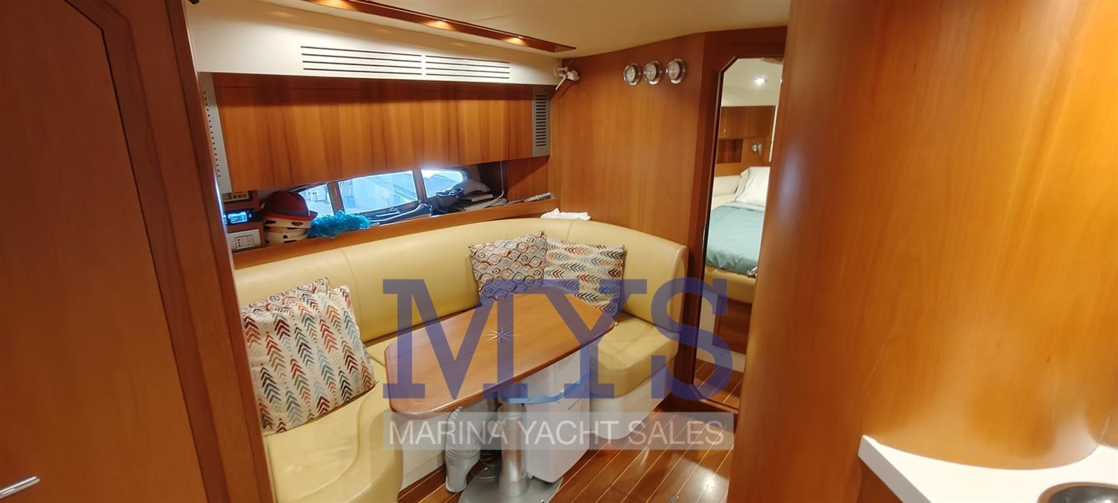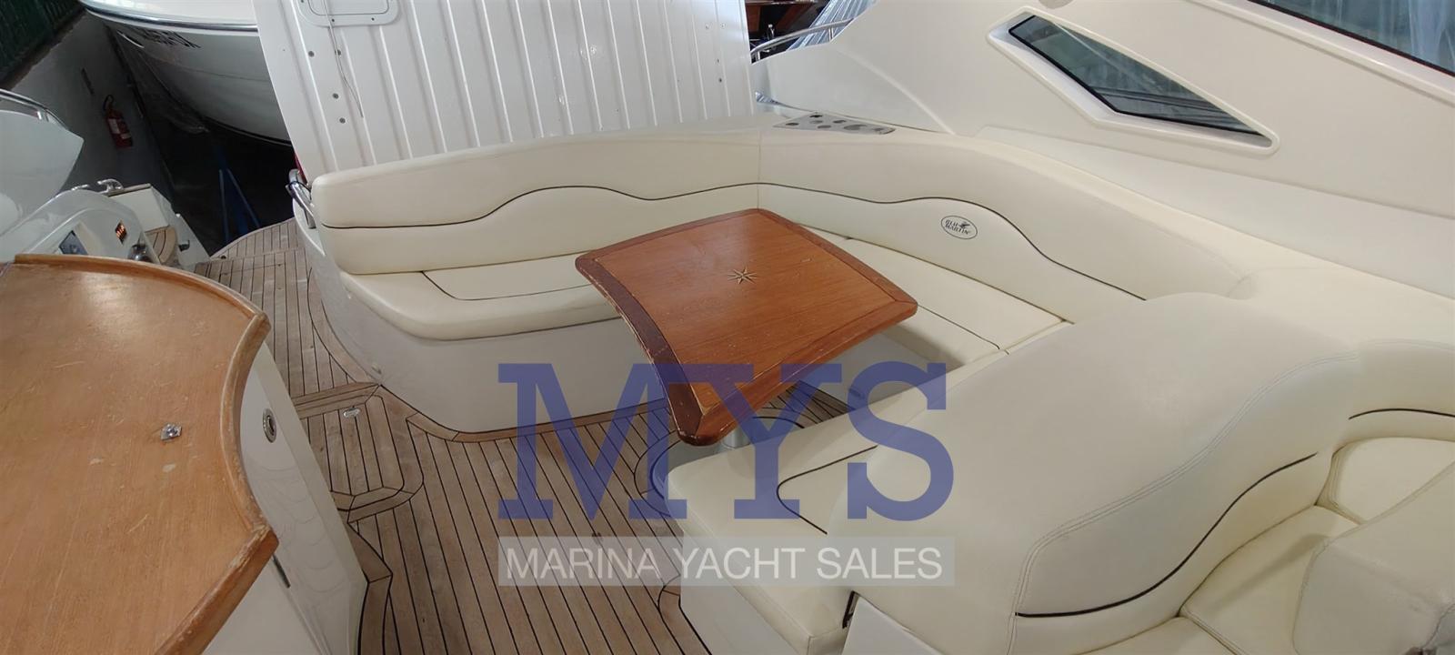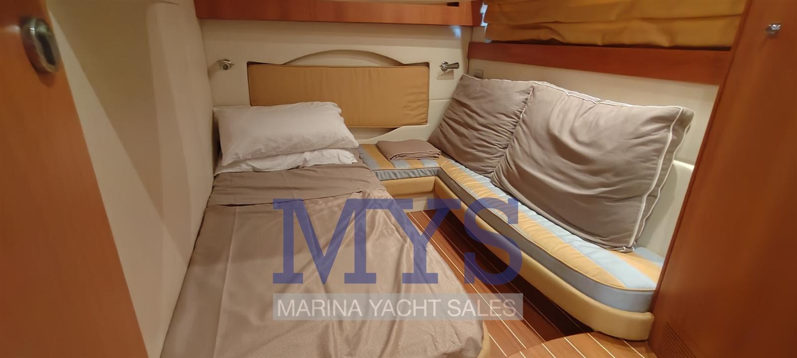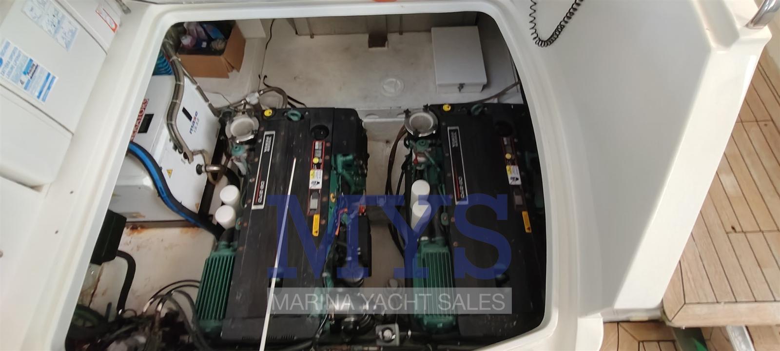 Alarme de pompe de cale, Ouverture du compartiment moteur électrique, Eau sous pression, Passavant en teck, Câble d’alimentation à quai, Filères, Douche de cockpit, Phare de poursuite, Flaps électriques, Garage à annexe, Hard top (apribile elettricamente), Indicateurs de flaps, Lavabo dans le cockpit, Éclairage de courtoisie (interne), Spots sous-marins, Passerelle (gandola), Plateforme arrière, Porte latérale, Cockpit en teck, Prise de quai, Connexion eau sous pression à quai, Guindeau électrique, Echelle de bain, table de cockpit, Table pliante de salon, Corne.