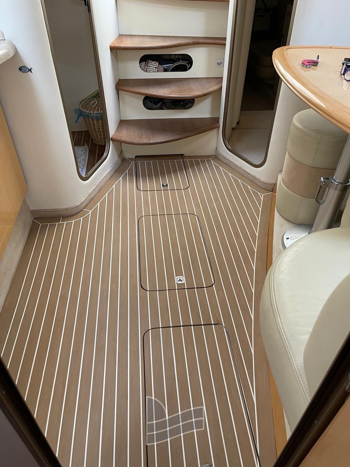 Alarme moteur, Eau sous pression, Douche de cockpit, 2 Flaps hydrauliques, Extincteur(s) fixe(s), Lavabo dans le cockpit, Passerelle (Idraulica), Plateforme arrière (di poppa in teak), Pompe de cale automatique, Porte latérale, Prise de quai, Rollbar, Guindeau électrique, Echelle de bain, table de cockpit, Corne.
