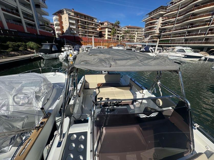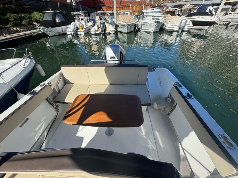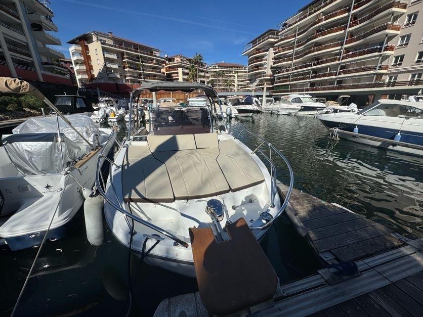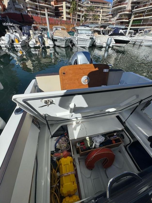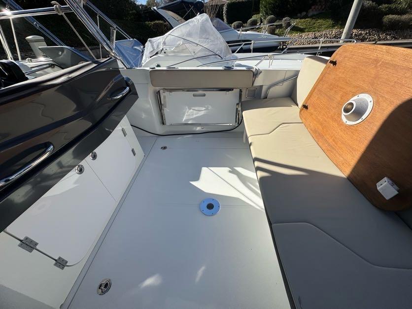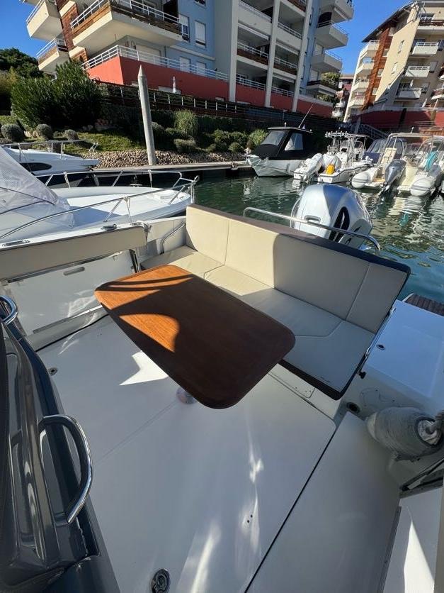 Le Beneteau Flyer 7.7 SUNdeck est un day-boat sportif et élégant qui combine parfaitement performance et confort. Son grand bain de soleil avant, son cockpit convivial et sa cabine bien aménagée en font un bateau idéal pour profiter pleinement de la mer, que ce soit pour une sortie dynamique ou une journée détente au mouillage. Motorisé en 250 CV Honda et équipé de flaps pour une navigation stable et maîtrisée, il offre puissance et sécurité en toutes conditions. Grâce à sa cabine avec couchage double et ses équipements de confort, il est tout à fait possible d’y passer un petit week-end embarqué, en profitant d’une escapade en toute autonomie.