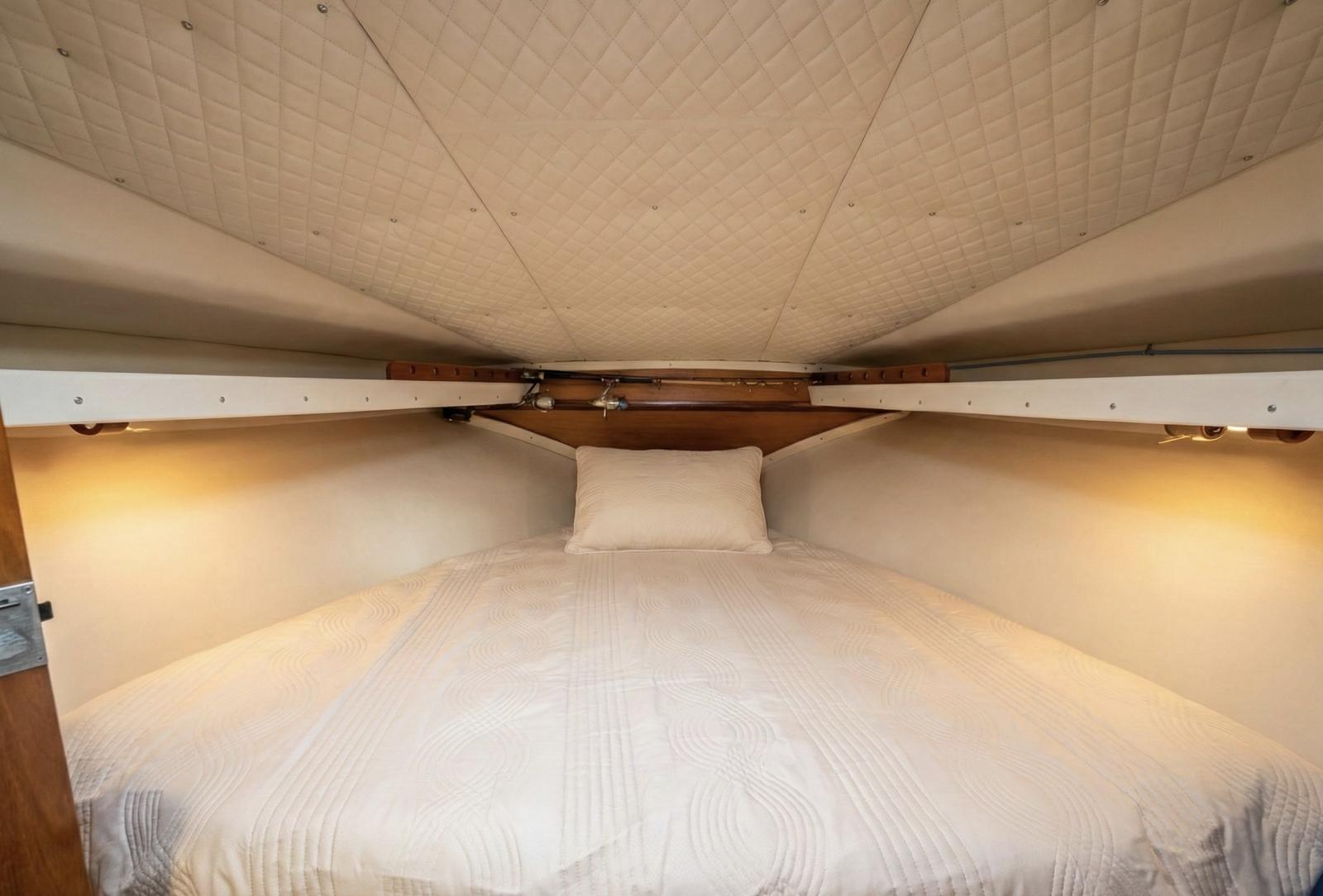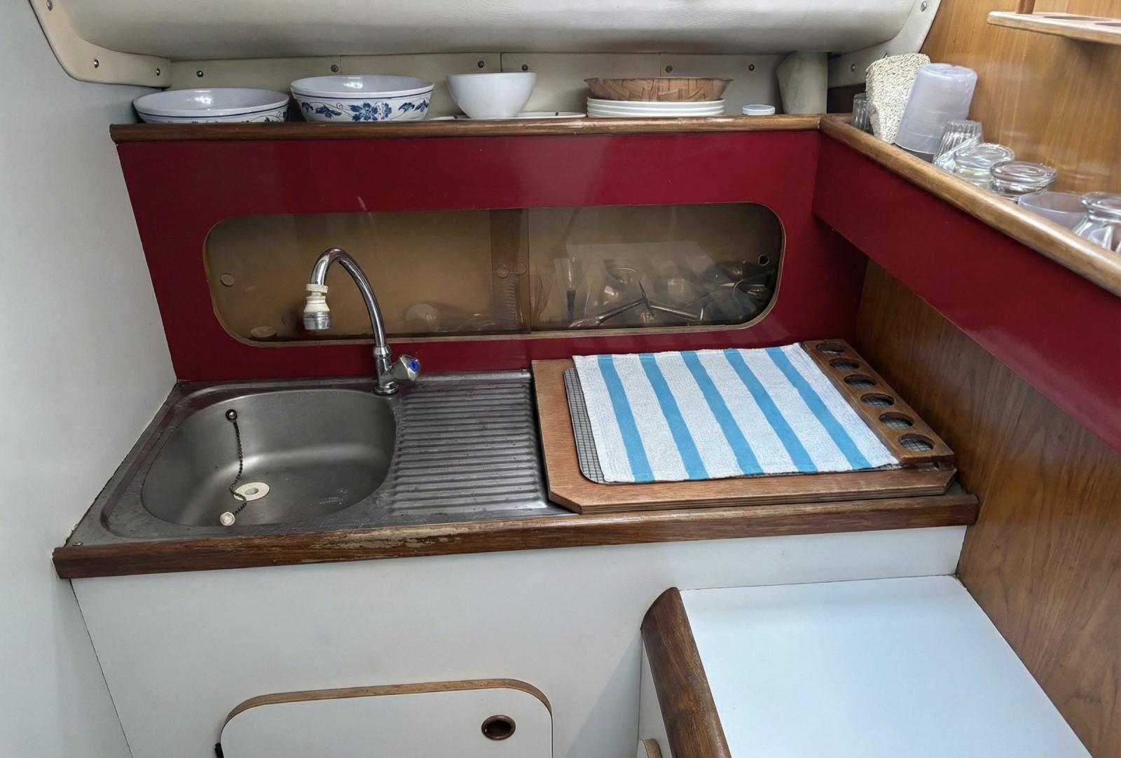 À bord, vous trouverez une cabine confortable, un WC électrique, une cuisinière, un sondeur, un propulseur d’étrave facilitant les manœuvres ainsi qu’un guindeau électrique.