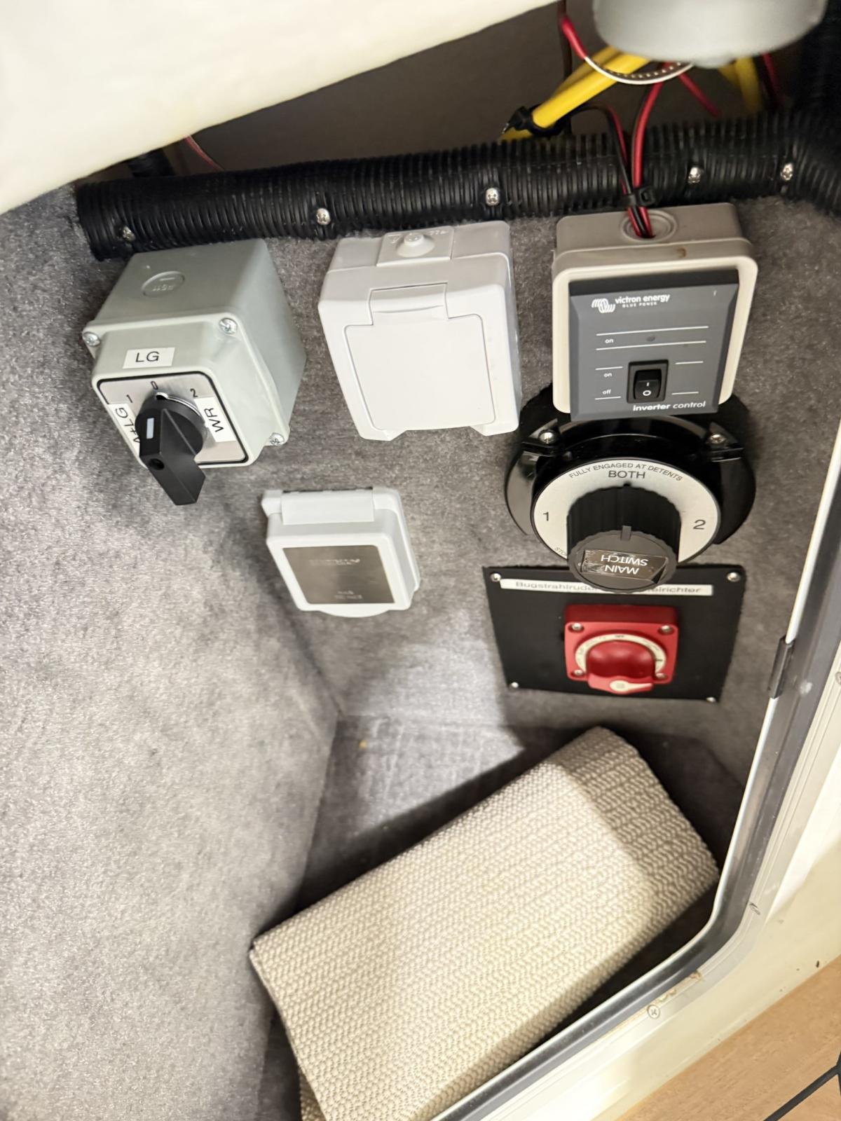 Cuve à eaux noires, Convertisseur (1000w), Prises interieures 12v, Prises interieures 220v, Réservoir d'eau noire, Toilettes manuelles.