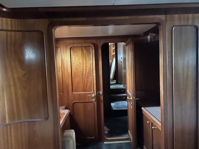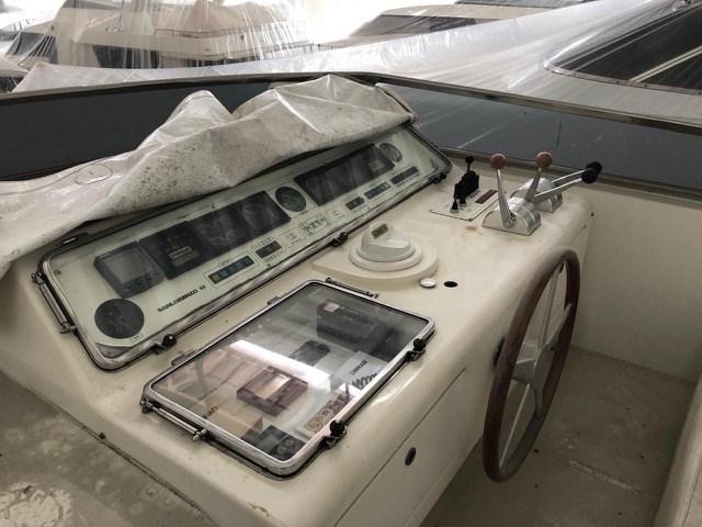 Alarme moteur, Alarme de pompe de cale, Eau sous pression, Passavant en teck, Douche de cockpit, Double barre à roue, Phare de poursuite, Flaps hydrauliques (N°2), Bossoirs, Extincteur(s) fixe(s), Lavage de chaine, Passerelle (IDRAULICA TELESCOPICA), Plateforme arrière, Pompe de cale manuelle, Porte latérale, Cockpit en teck, Prise de quai, Connexion eau sous pression à quai, Onduleur, Rollbar, Guindeau électrique, Echelle de bain, table de cockpit, Annexe, Corne, Winch électrique avant.