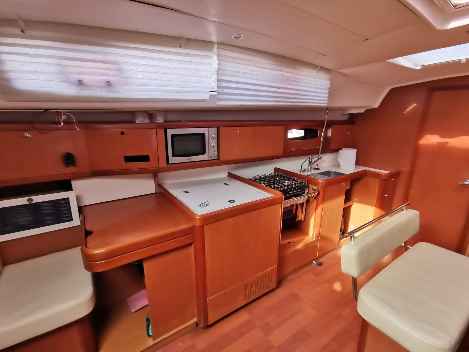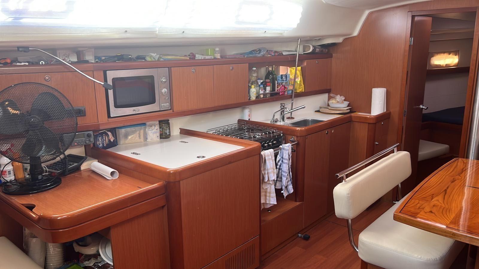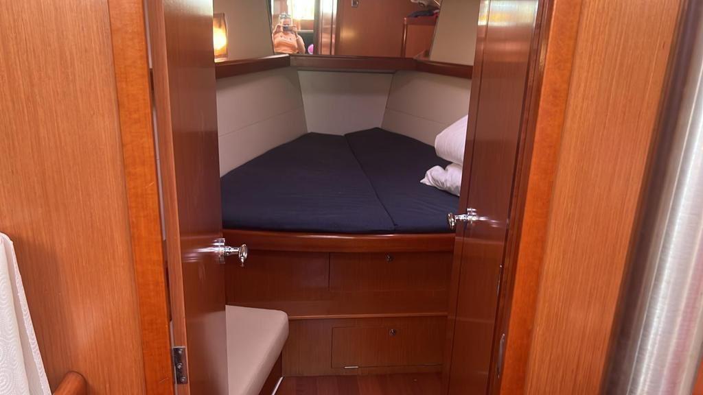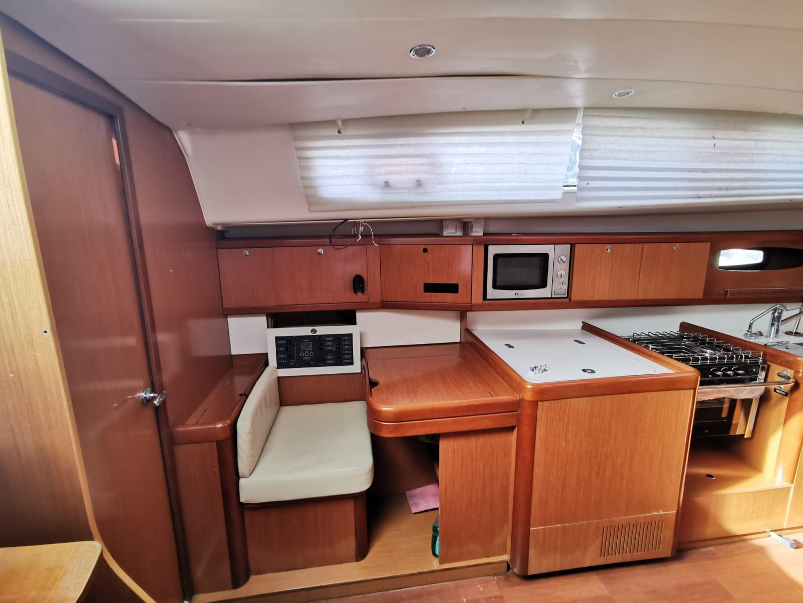 Alarme moteur, Alarme de pompe de cale, Alternateur, Eau sous pression, Douche de cockpit, Phare de poursuite, Extincteur(s) fixe(s), Éclairage de courtoisie, Défenses, Plateforme arrière, Pompe de cale automatique, Pompe à Eau de Mer, Cockpit en teck, Prise de quai, Connexion eau sous pression à quai, Guindeau électrique, Gréement Rod, Echelle de bain, table de cockpit, Table pliante de salon, Corne, Winch.