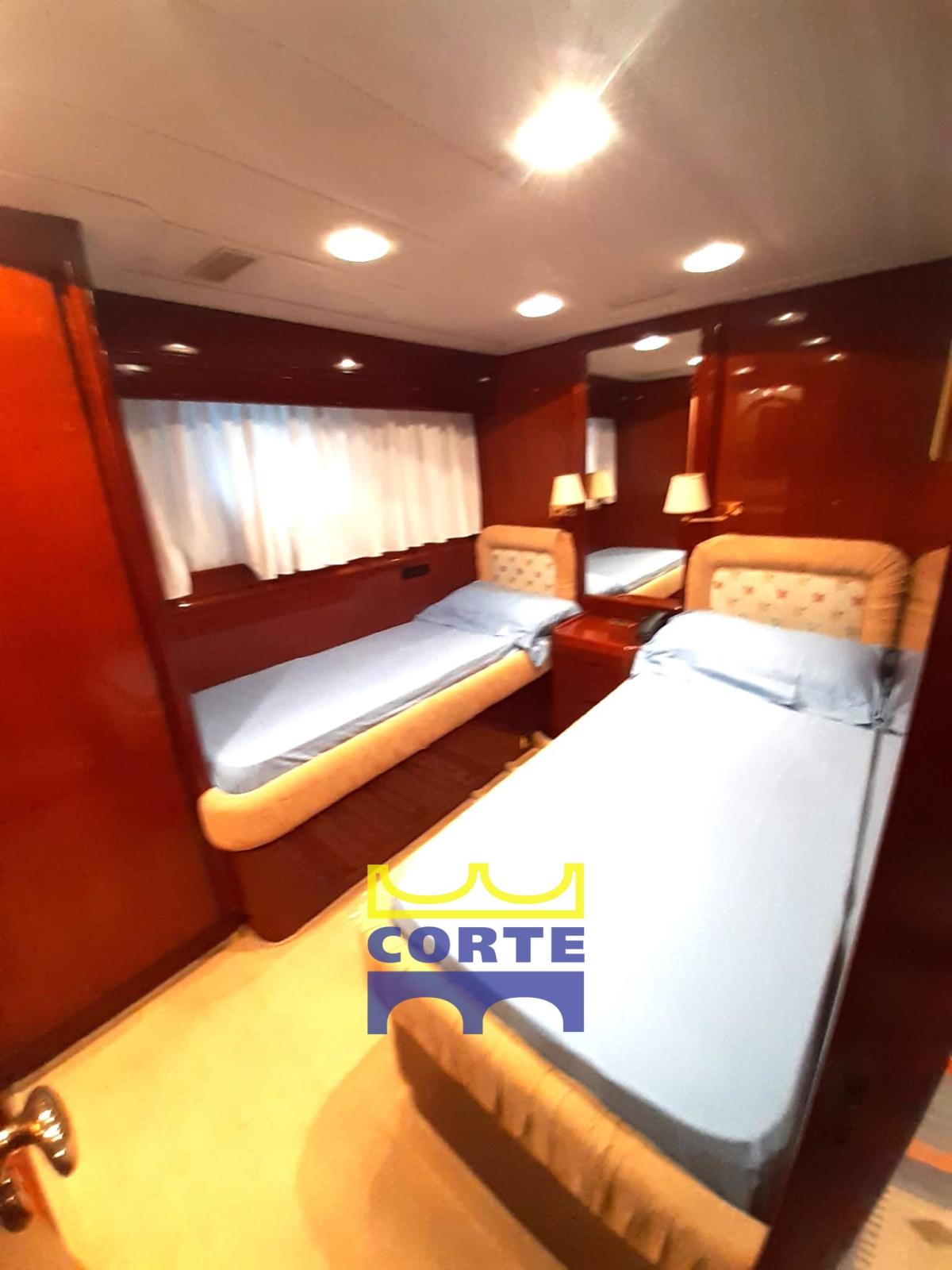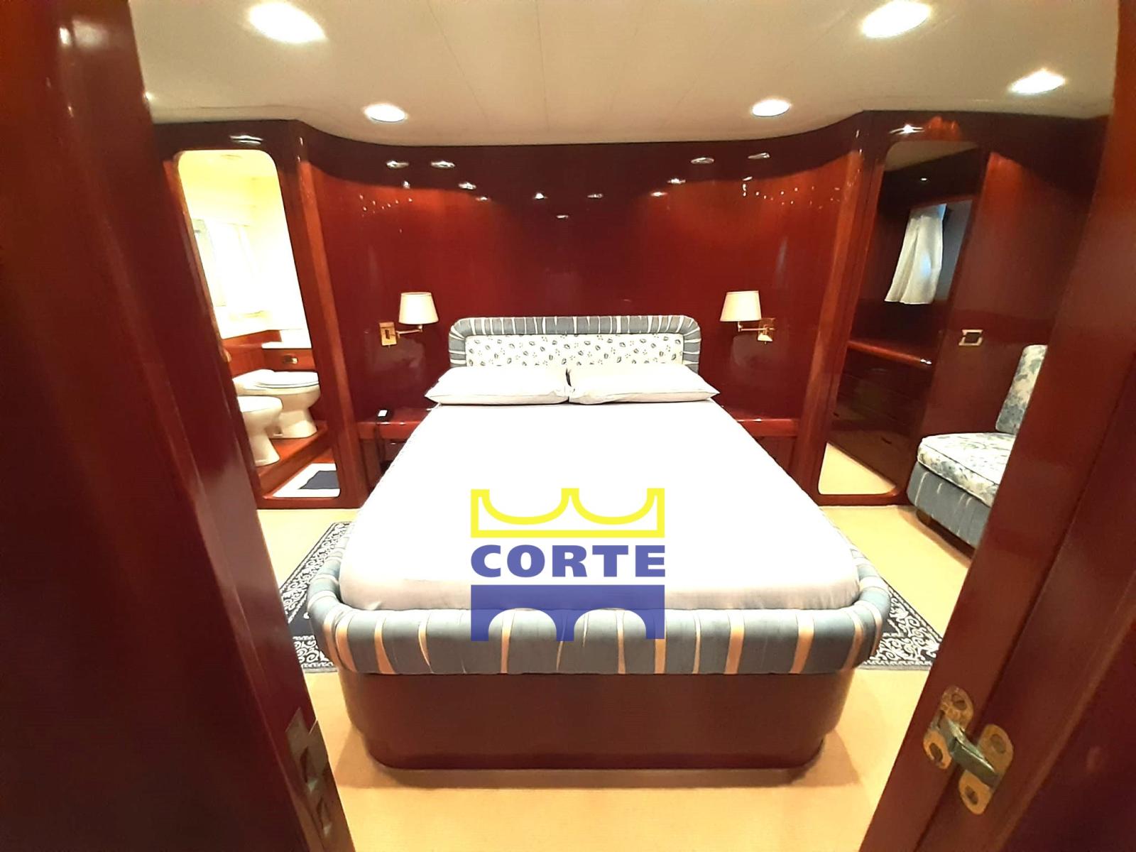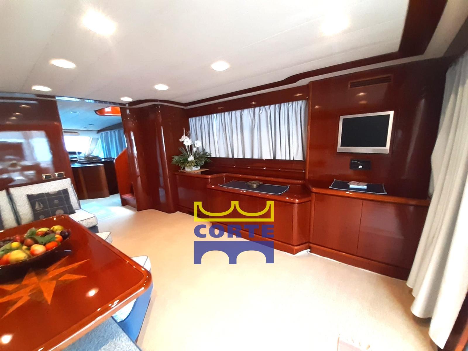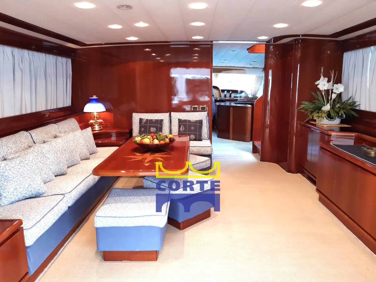 Alarme moteur, Alarme de pompe de cale, Eau sous pression (doppia), Batteries (motori 2021), Passavant en teck, Douche de cockpit, Double barre à roue, Flaps hydrauliques, Grue de flybridge, Extincteur(s) fixe(s), Éclairage de courtoisie, Passerelle (idraulica), Plateforme arrière (poppa a movimentazione up down), Pompe de cale automatique, Porte latérale, 2 Porte latérale, Cockpit en teck, Prise de quai, Connexion eau sous pression à quai, Répétiteur électronique, Rollbar, Guindeau électrique, Echelle de bain, table de cockpit, Corne, 2 Winch électrique arrière.